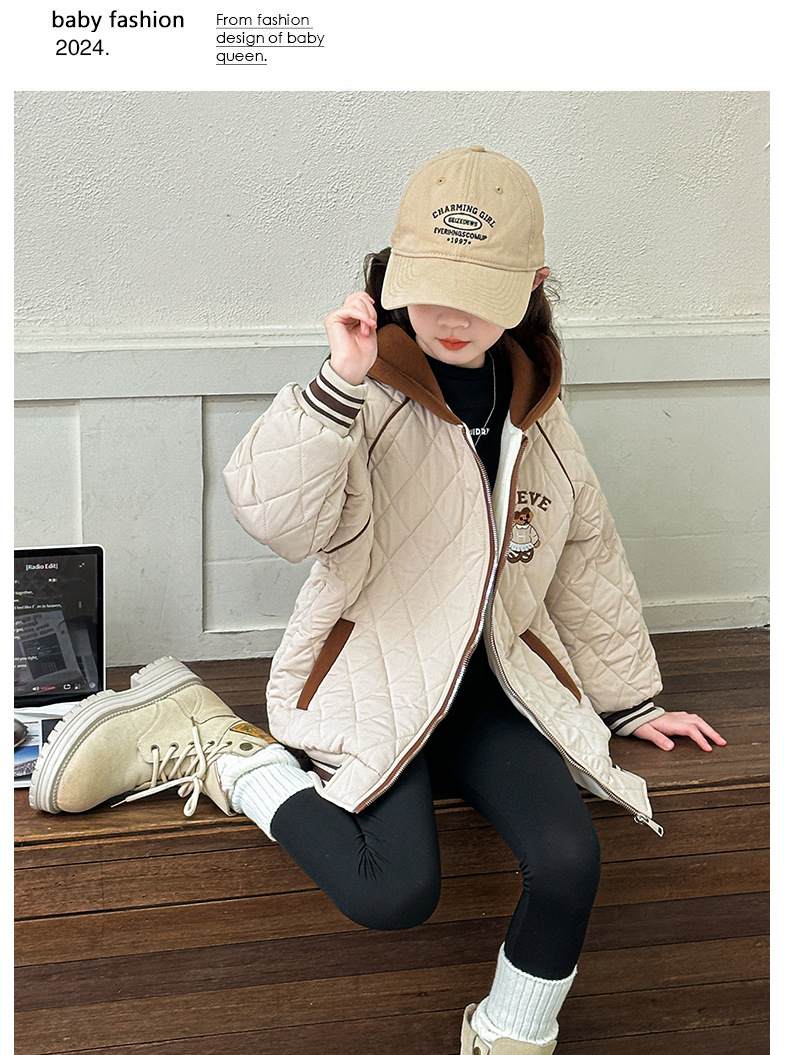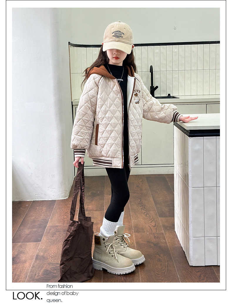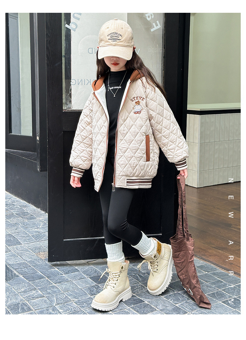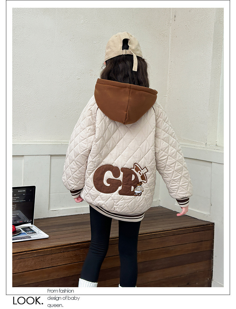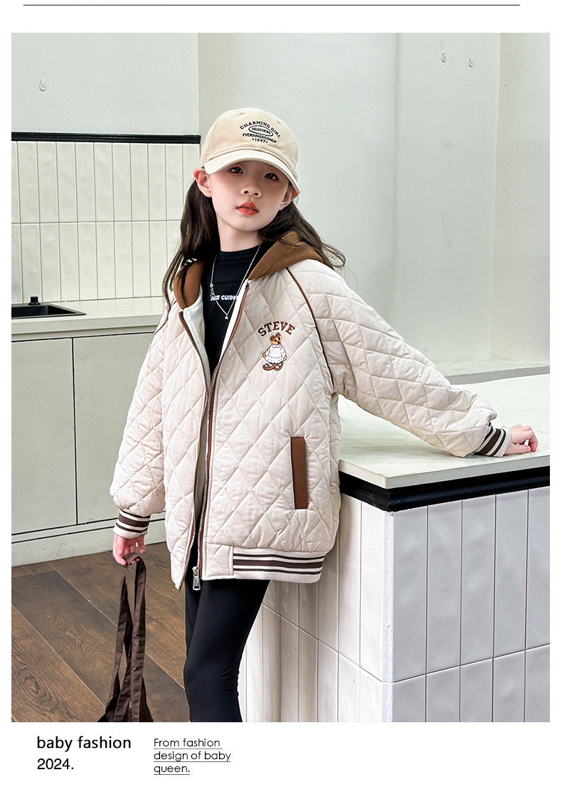 소녀 플러스 벨벳 코트 가을과 겨울 어린이 야구 재킷면 패딩 코트 2024 새로운 서양식 중대형 아동면 패딩 재킷 겨울스토어 가기