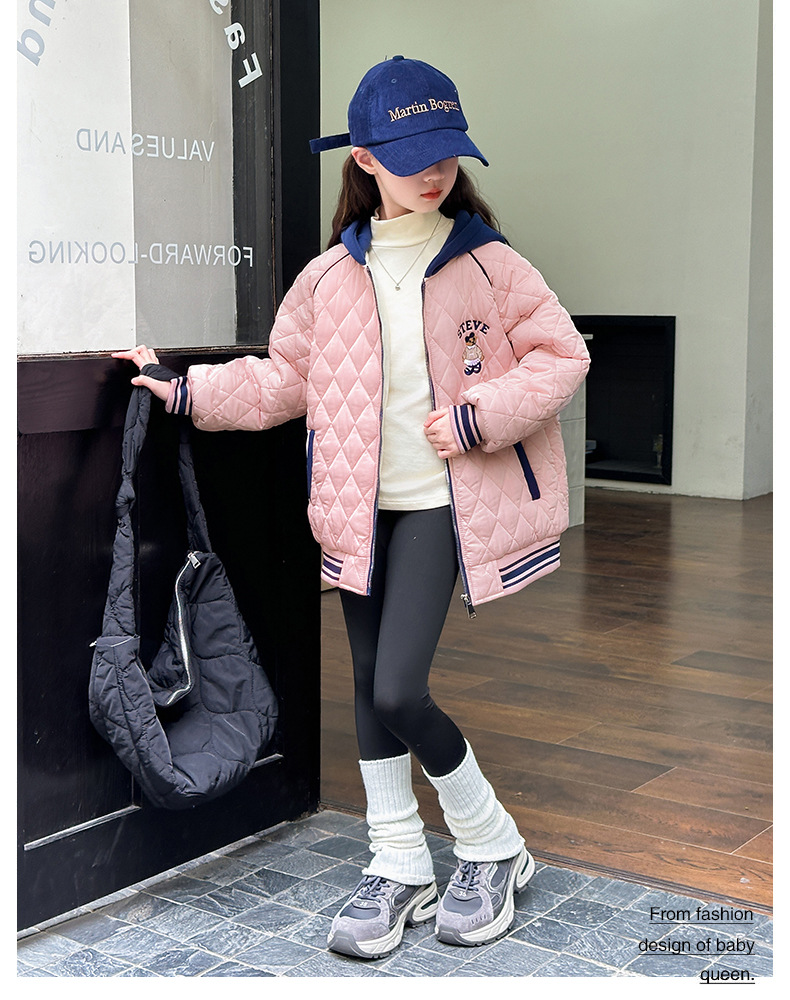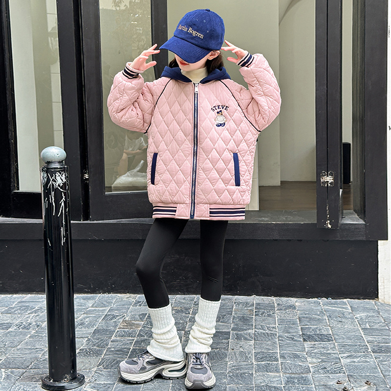 소녀 플러스 벨벳 코트 가을과 겨울 어린이 야구 재킷면 패딩 코트 2024 새로운 서양식 중대형 아동면 패딩 재킷 겨울