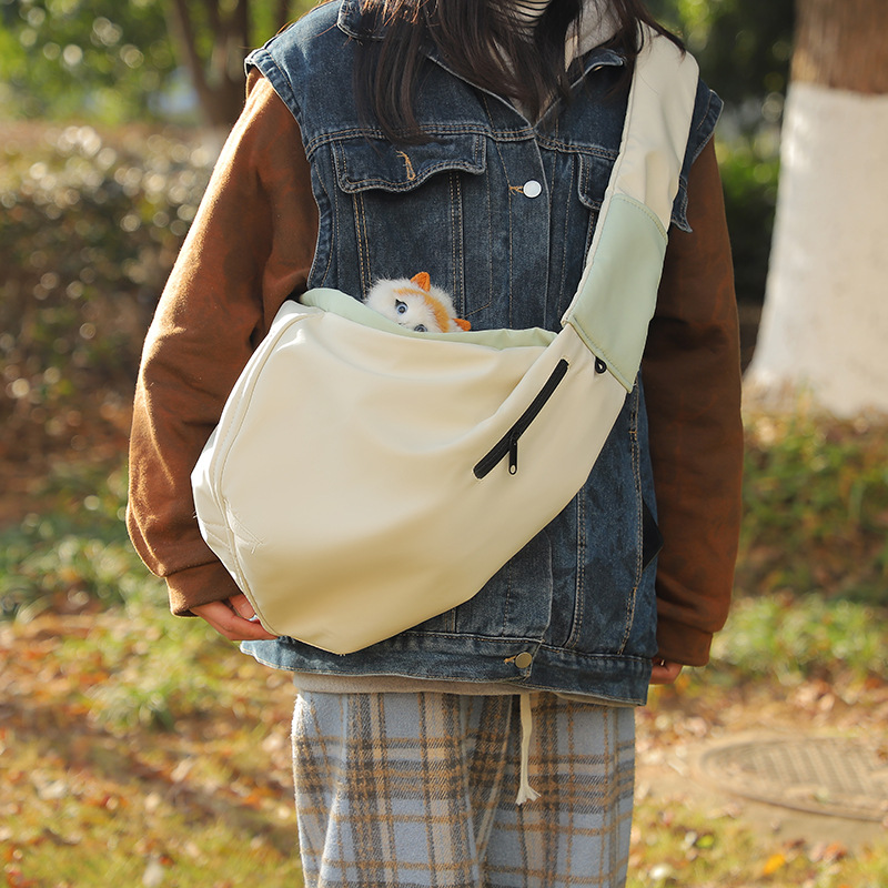 국경 간 애완 동물 토트 백 접이식 휴대용 통기성 고양이 가방 간단한 단색 고양이 개 어깨 가방