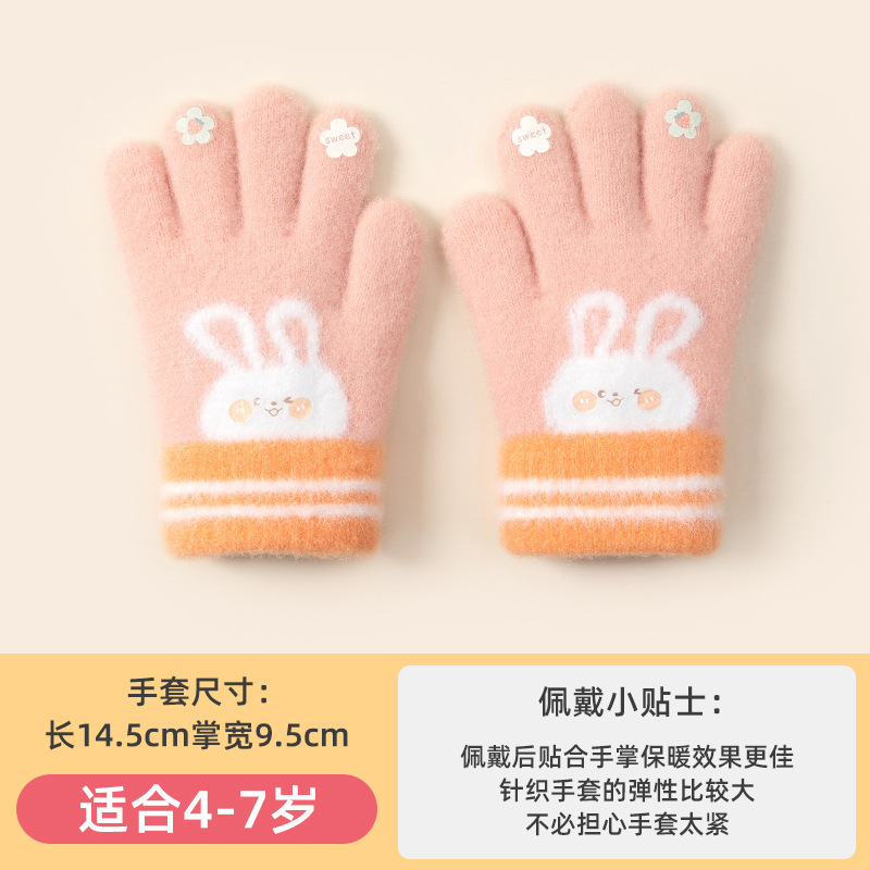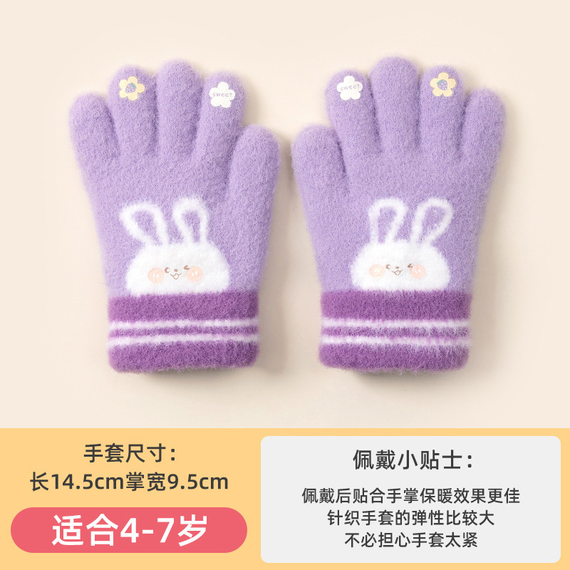 어린이 장갑 가을과 겨울 소녀 유치원 다섯 손가락 귀여운 만화 니트 양모 감기 방지 따뜻한 장갑