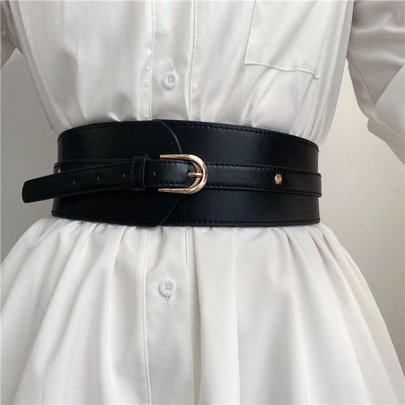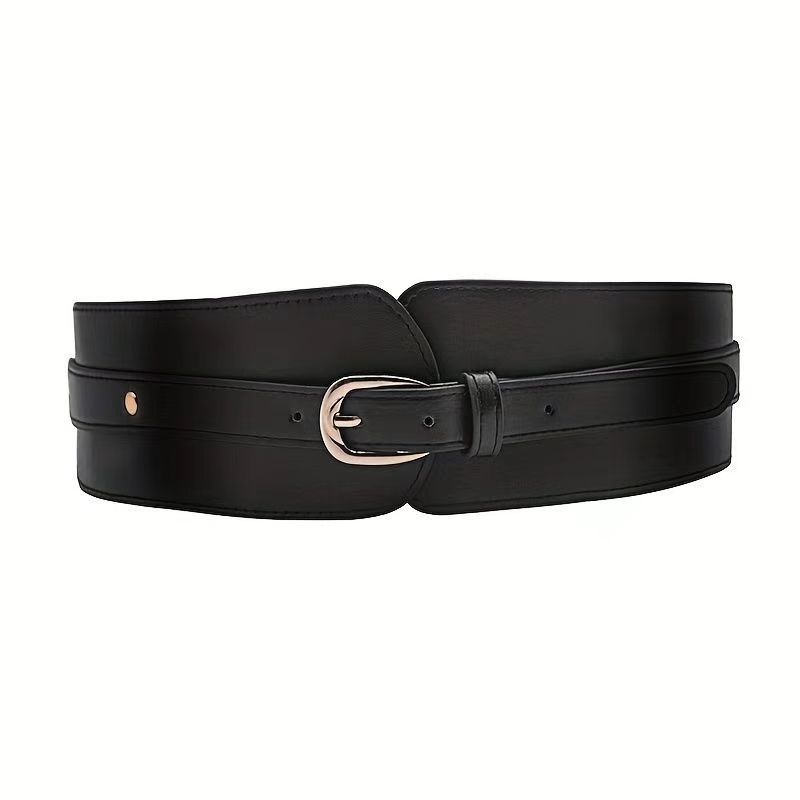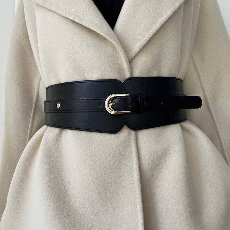 패셔너블한 슬리밍 여성용 벨트, 넓은 장식 허리띠, 다용도 블랙 신축성 벨트, 코트와 수트 재킷에 어울리는 허리 가죽 벨트