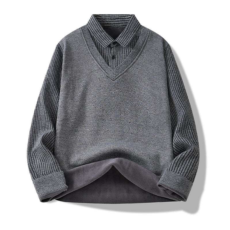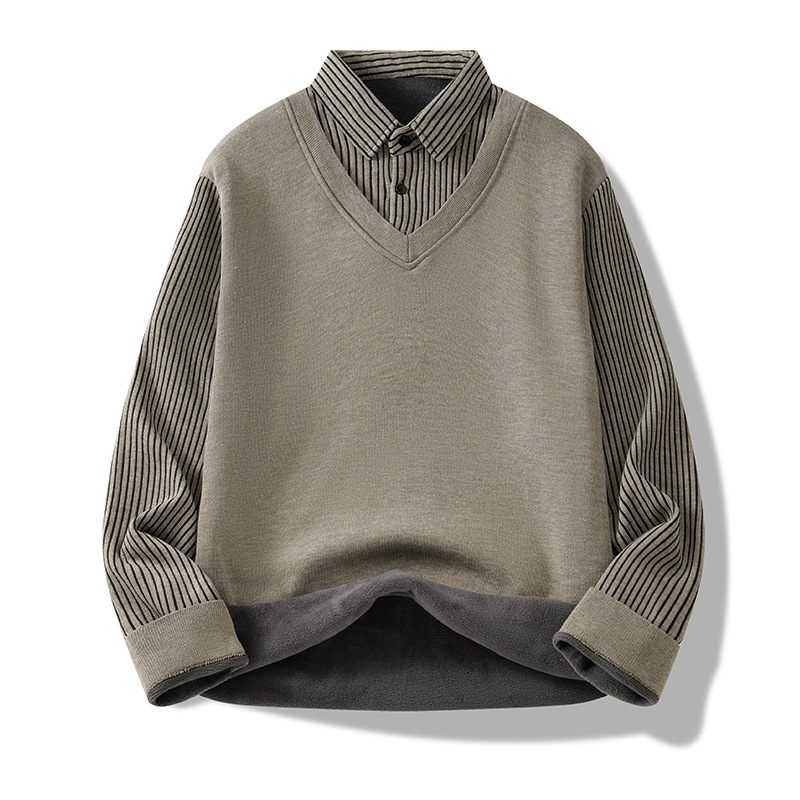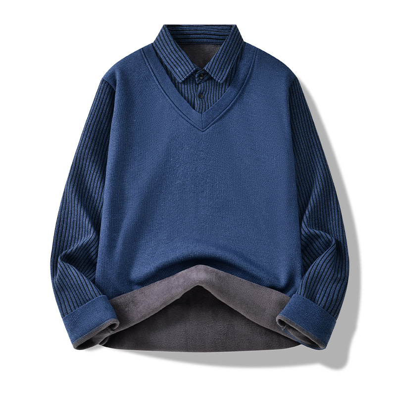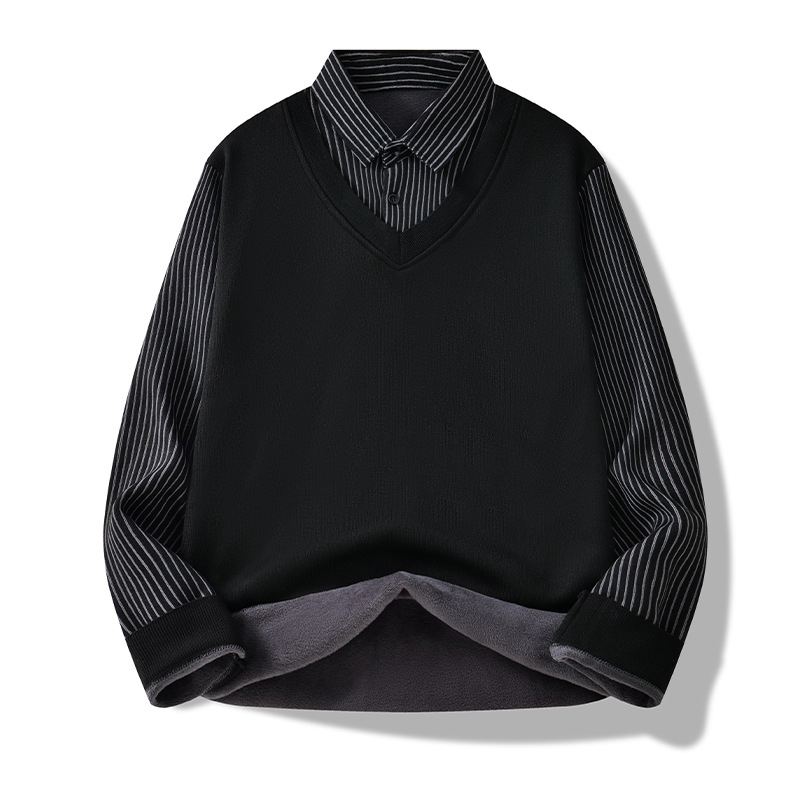 알리 타이거 남자의 겨울 새 옷깃 T 가짜 2 긴 소매 기모 스웨터 남자의 따뜻한 셔츠 톱 비즈니스스토어 가기