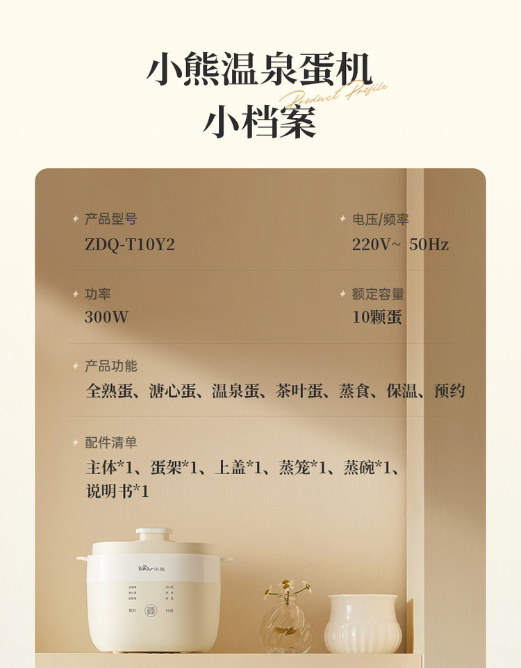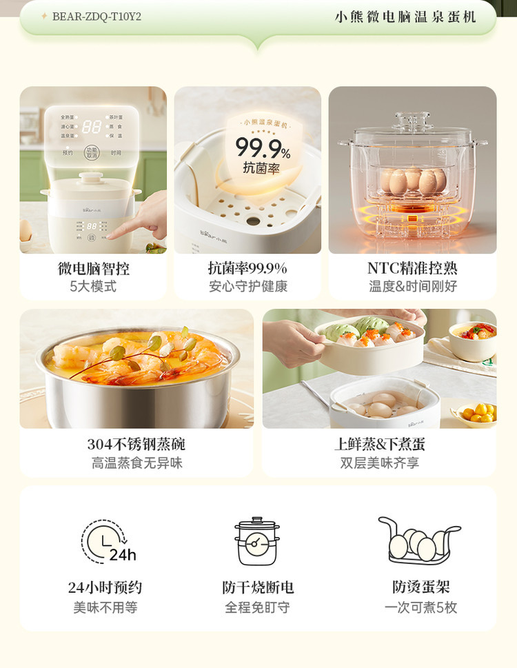 곰 ZDQ-T10Y2 미니 계란 보일러 다기능 마이크로 컴퓨터 지능형 제어 24 시간 예약 타이밍 예방