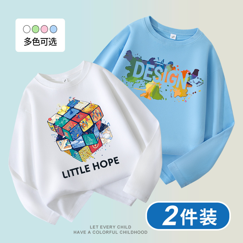 도매 트렌디 브랜드 남아용 긴팔 티셔츠 봄 가을 2025 신상 중대형 아동용 세련된 순면 얇은 이너웨어 가을옷스토어 가기