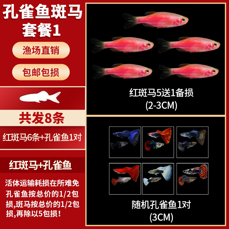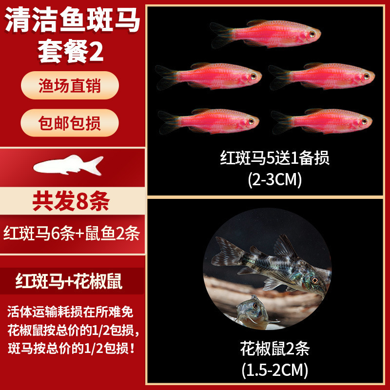 • 깨끗한 물고기 얼룩말 패키지 2 붉은 얼룩말 6마리 + 고추 쥐 2마리