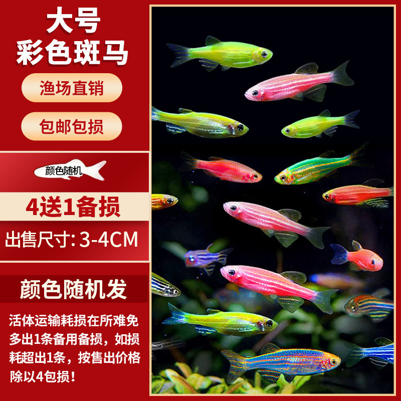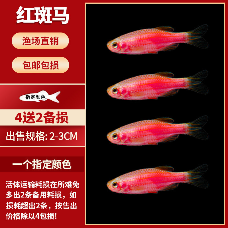 • 큰 빨간 얼룩말 물고기 6마리, 4마리 + 무료 2마리 예비
