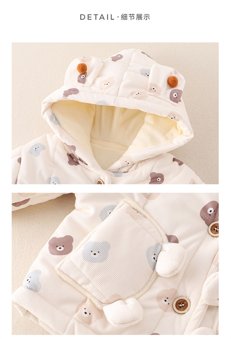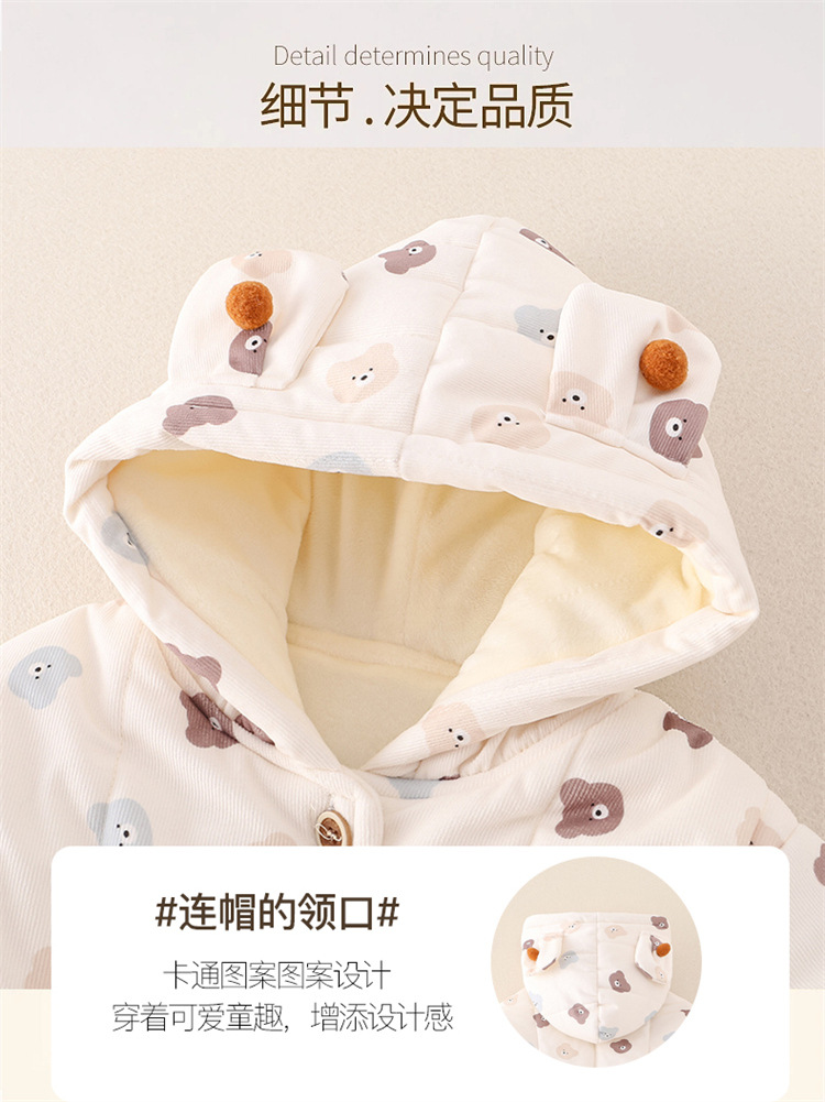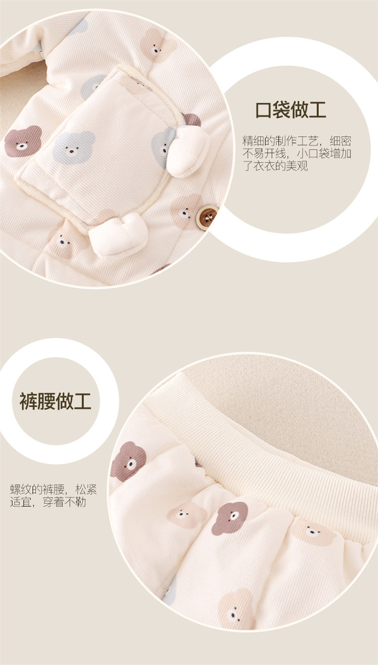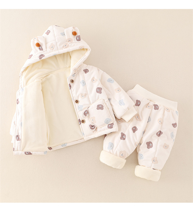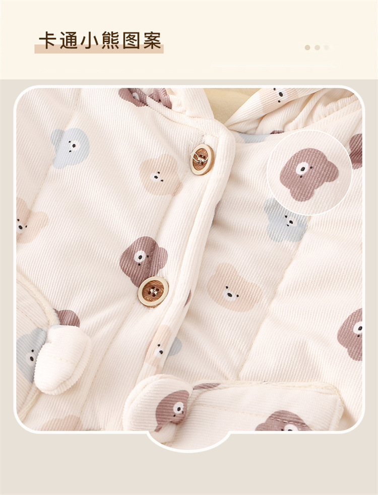 어린이 의류 겨울 아기 긴팔 후드 코튼 패딩 의류 면 패딩 바지 한 살짜리 아기 따뜻한 옷 작은 한 달 된 만화 투피스 세트스토어 가기
