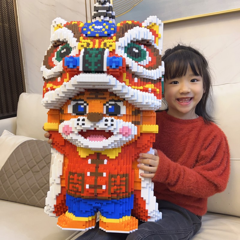 • 거대한 64CM 사자춤과 호랑이 + 무료 빌딩 블록 망치
