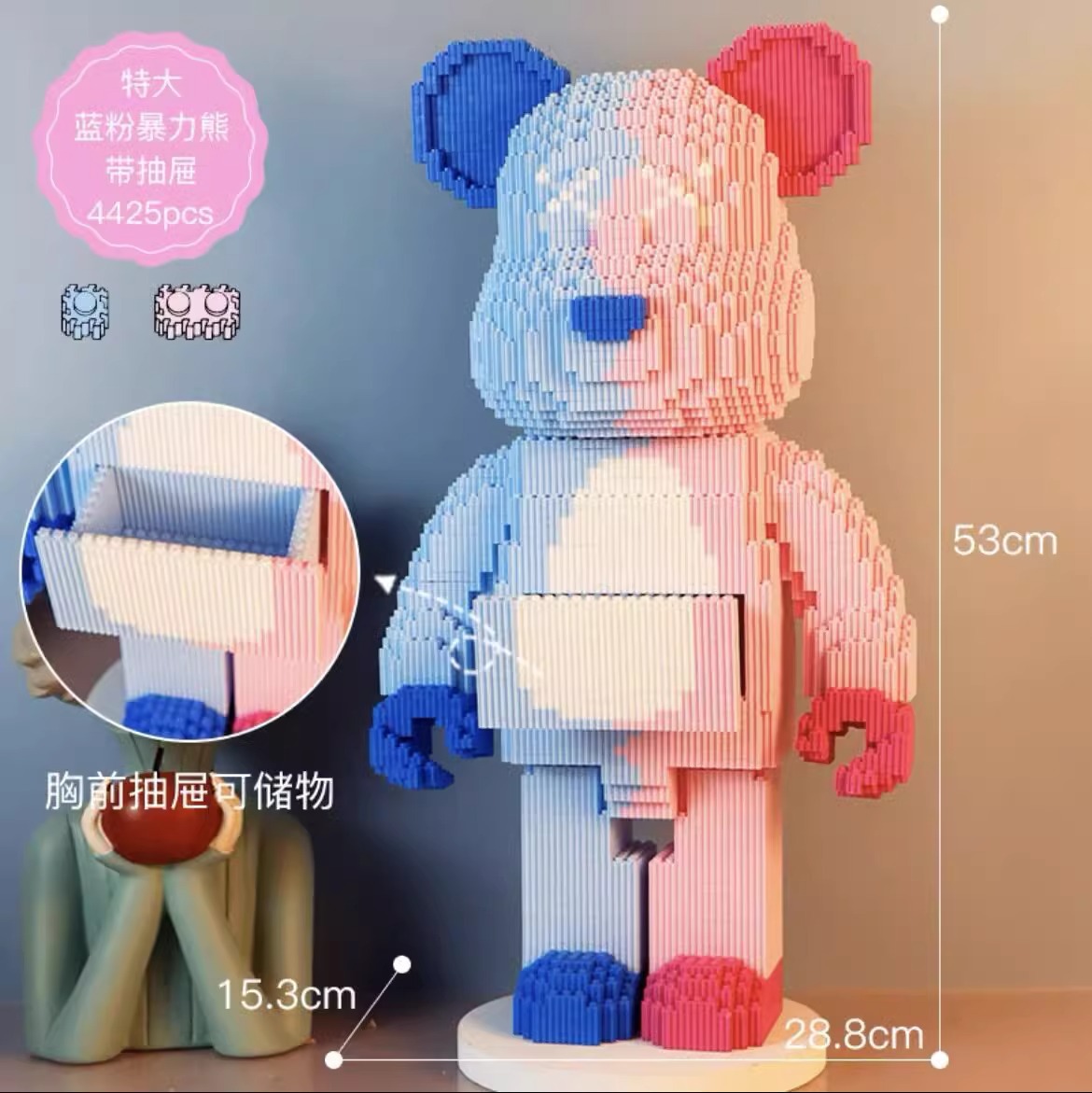 • 52CM 파란색과 분홍색 폭력적인 곰 + 무료 빌딩 블록 망치