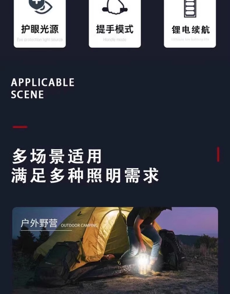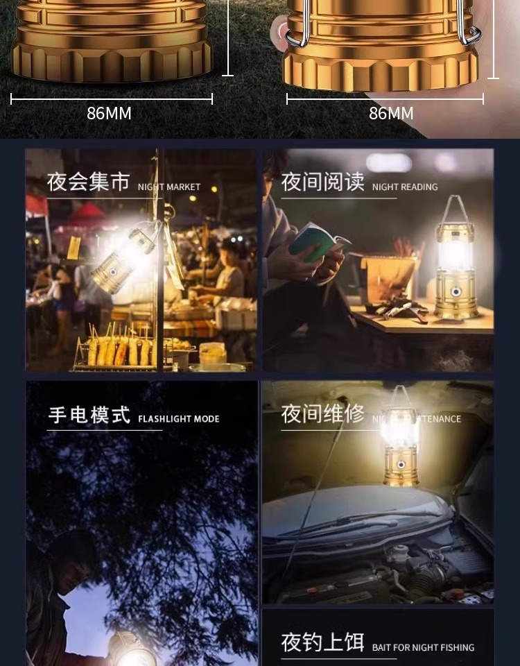 캠핑 램프 야외 비상 조명 말 램프 긴 내구성 충전 대기 램프 텐트 램프 태양 다기능스토어 가기
