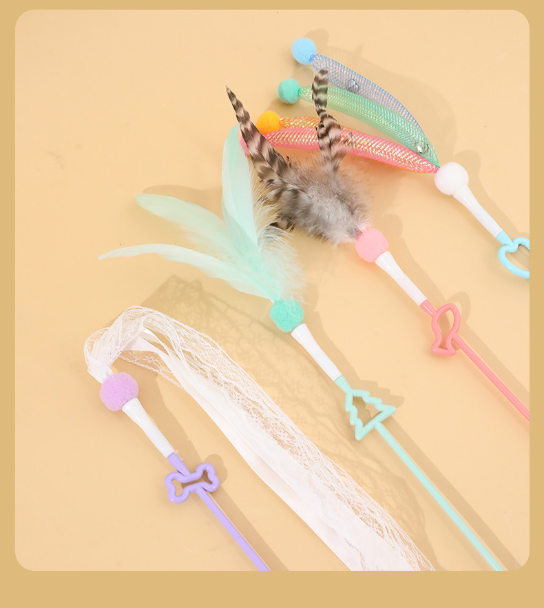 고양이 웃긴 스틱 플라스틱 막대 고양이 재미 장난감 시뮬레이션 깃털 요정 스틱 리본 고양이 재미 스틱 벨 소리 대화 형 장난감스토어 가기