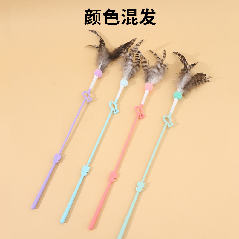 고양이 웃긴 스틱 플라스틱 막대 고양이 재미 장난감 시뮬레이션 깃털 요정 스틱 리본 고양이 재미 스틱 벨 소리 대화 형 장난감