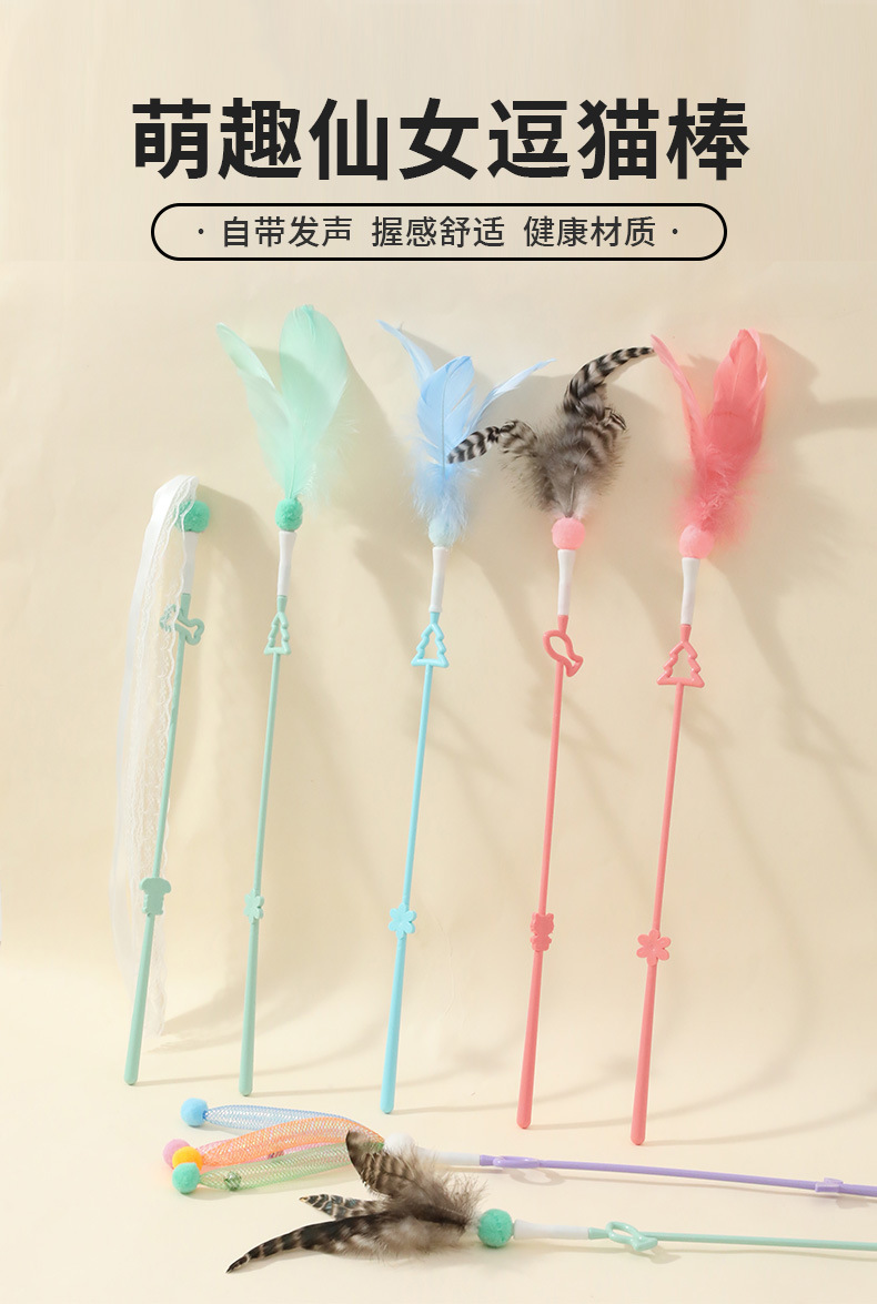 • 작은 나무 요정 깃털 고양이 유혹 스틱