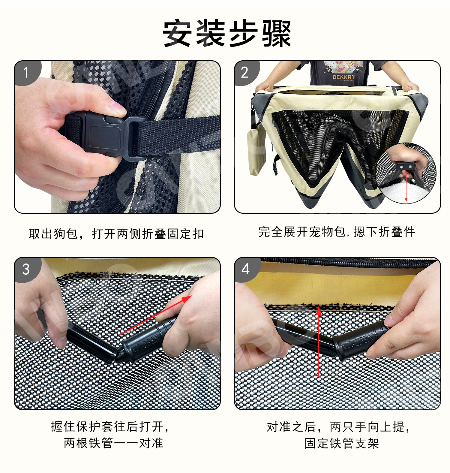 产品材质:喷塑铁管+600D PVC牛津布+网眼布+仿羊羔绒+珍珠棉