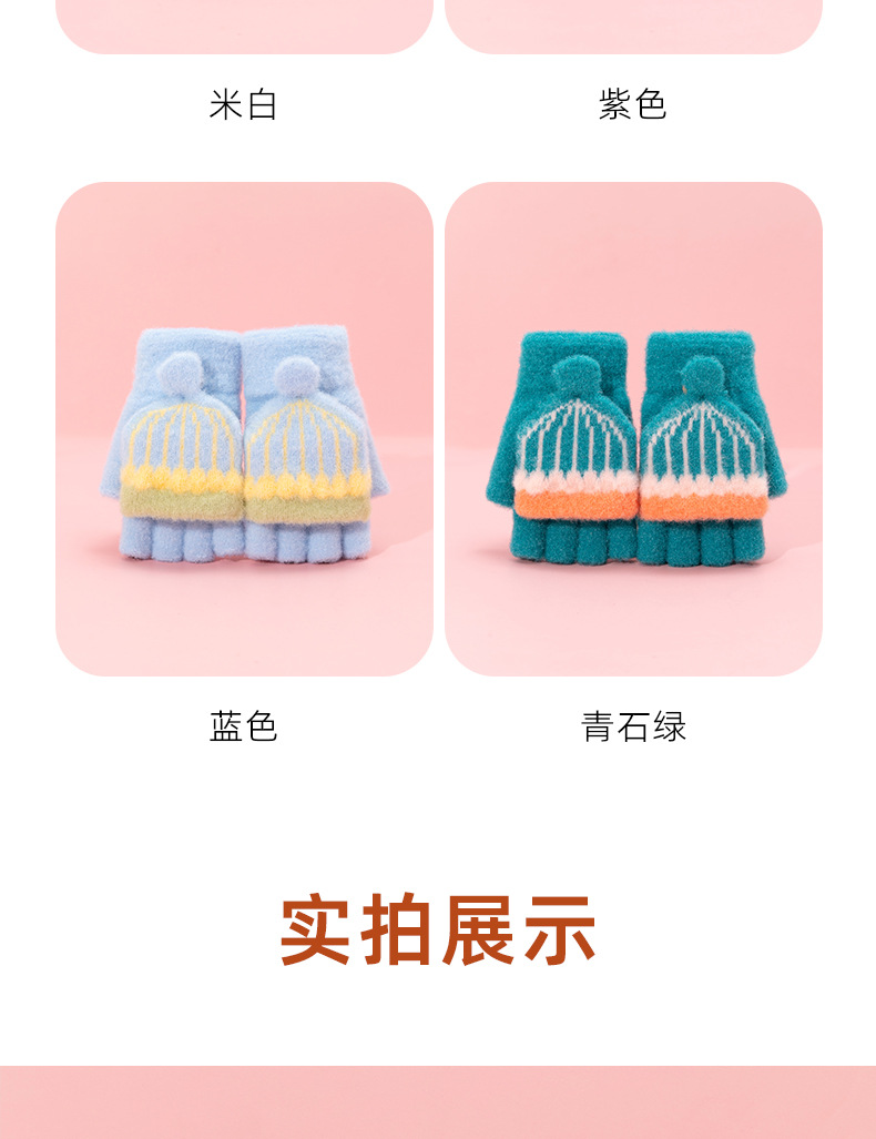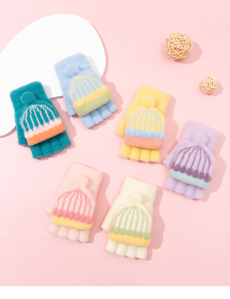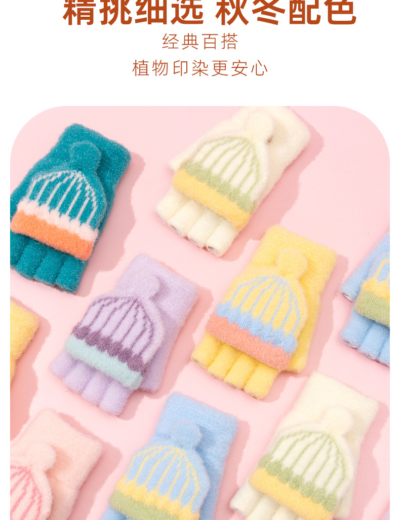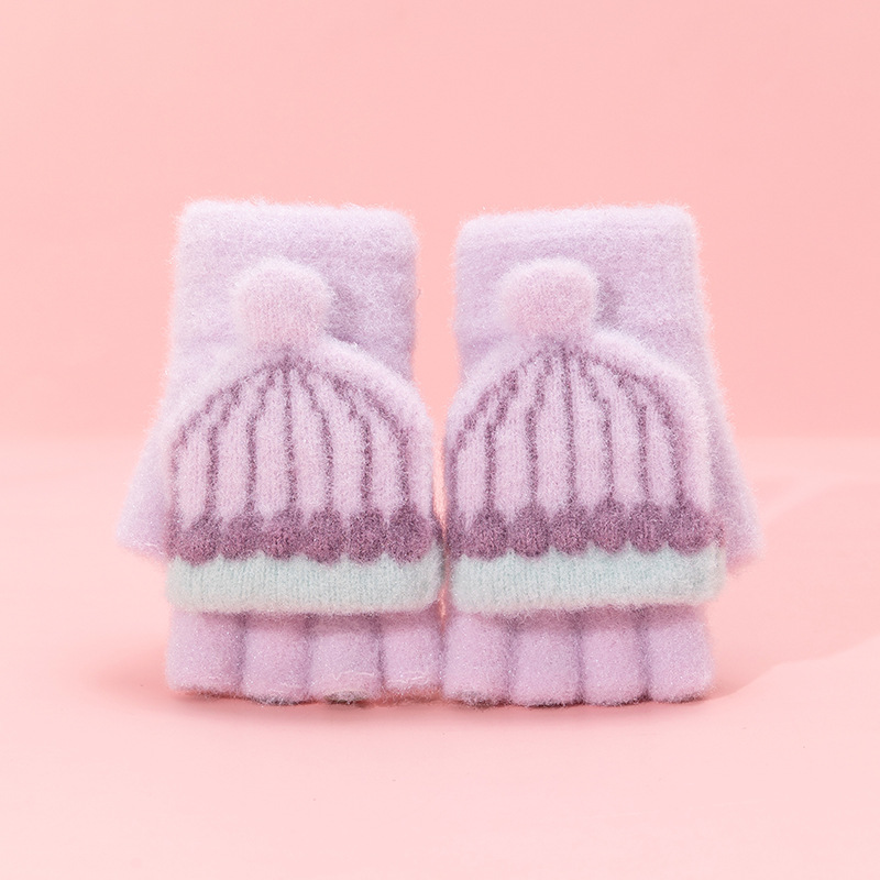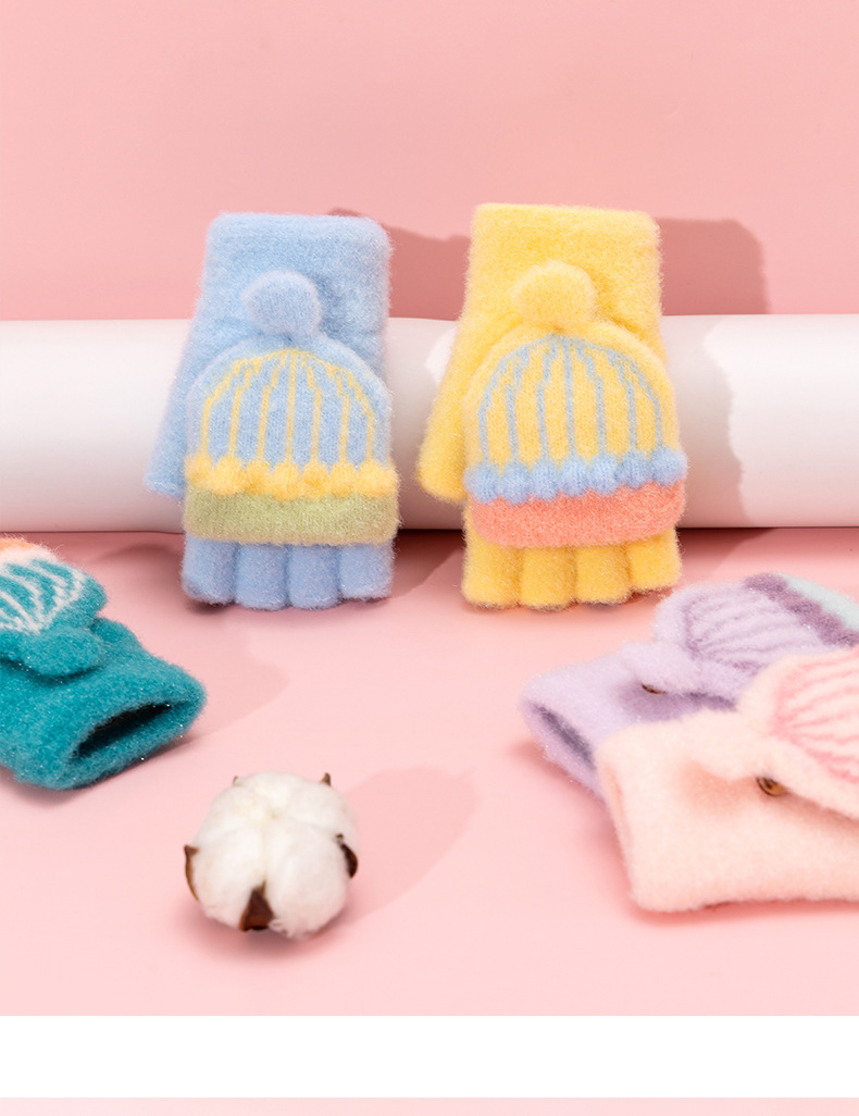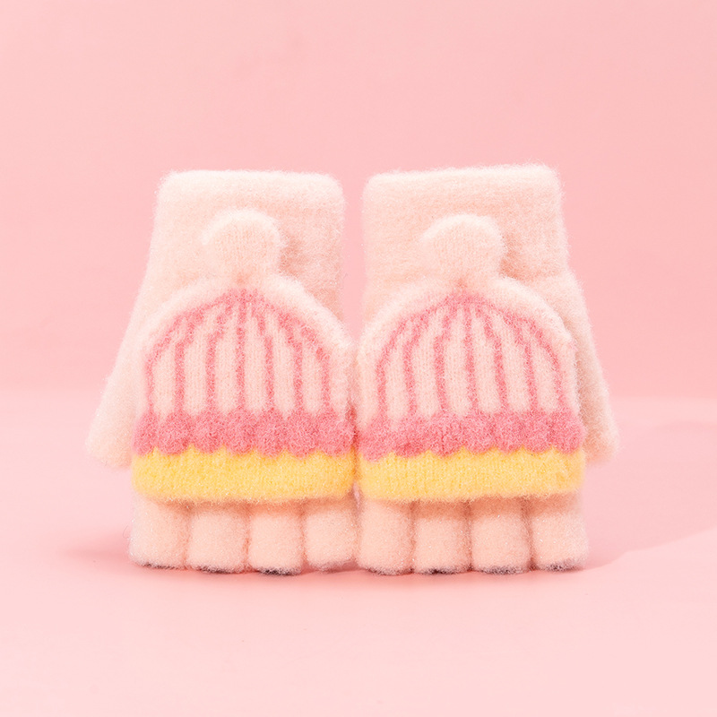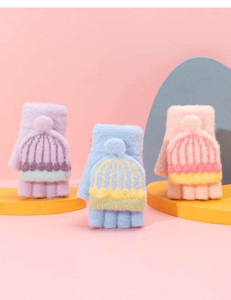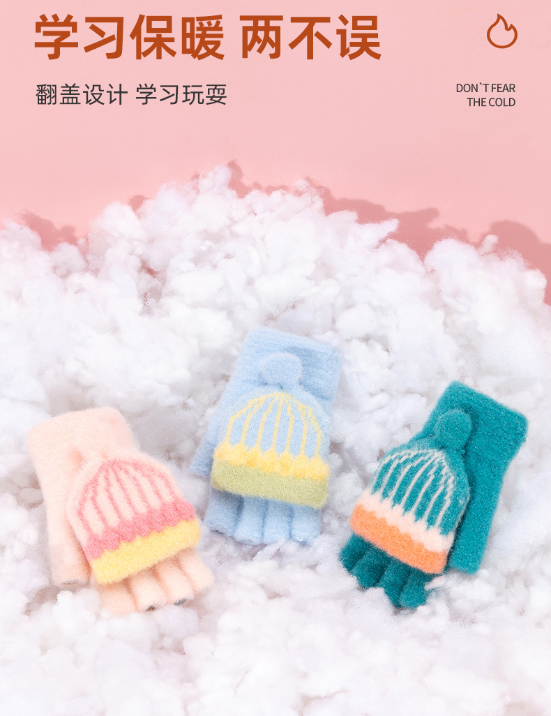 어린이 장갑 겨울 따뜻한 반 손가락 플립 커버 두꺼운 따뜻한 니트 양모 여자 초등학교 어린이 아기