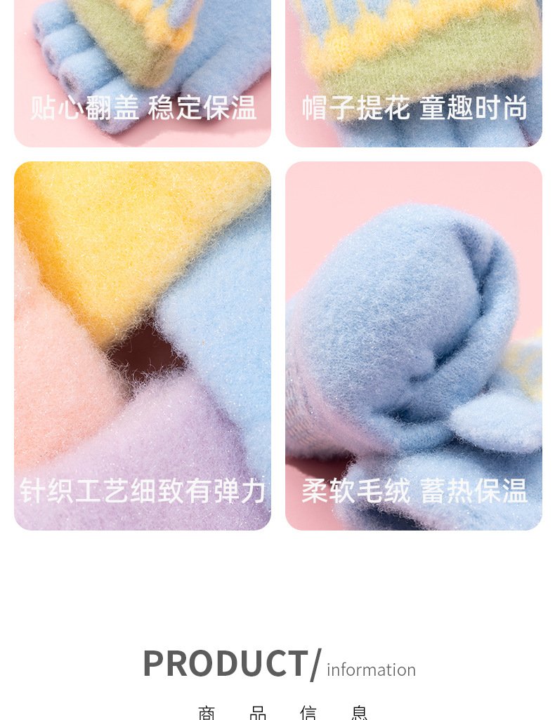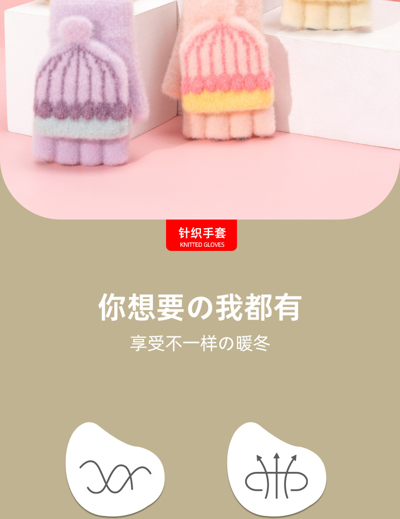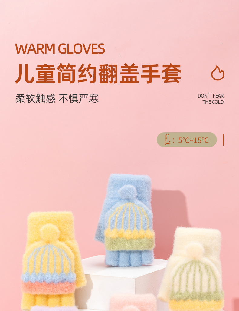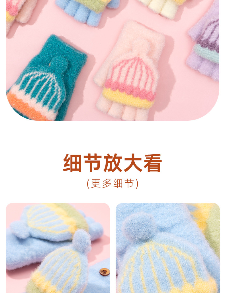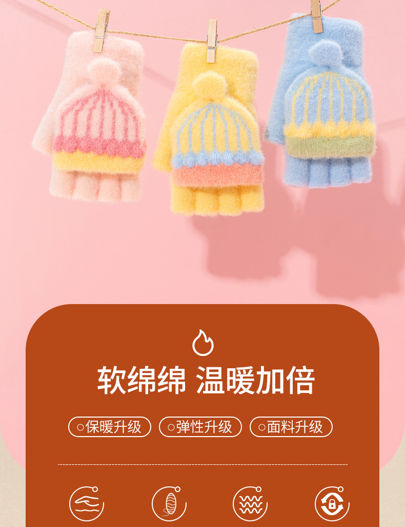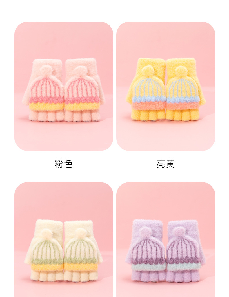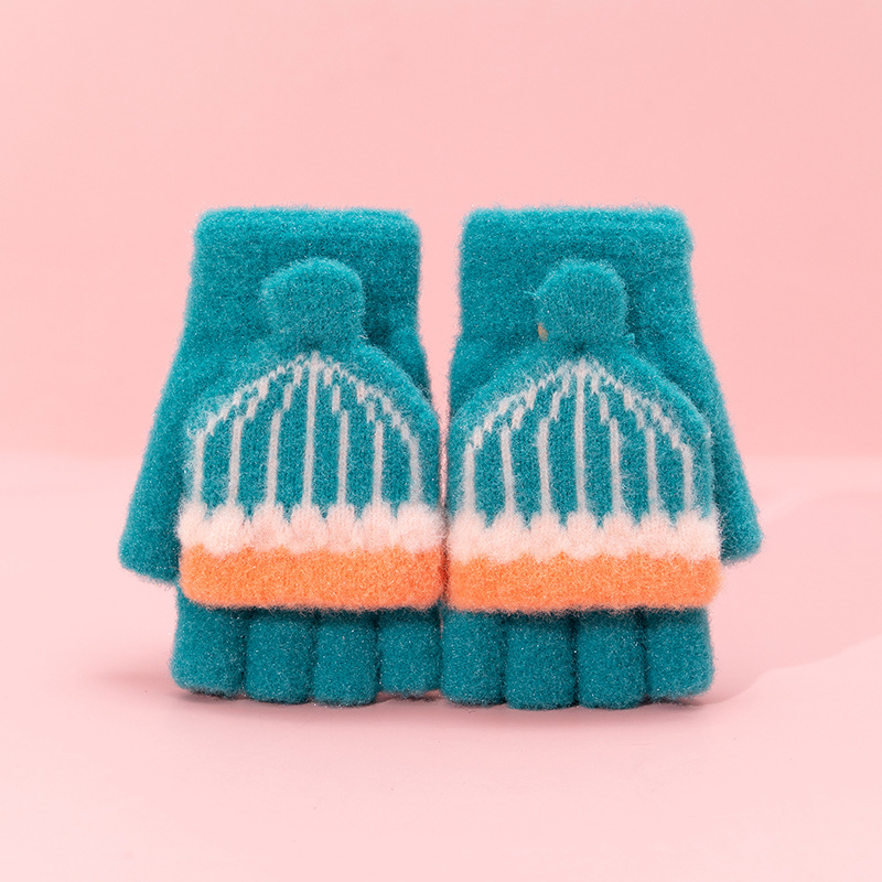 어린이 장갑 겨울 따뜻한 반 손가락 플립 커버 두꺼운 따뜻한 니트 양모 여자 초등학교 어린이 아기