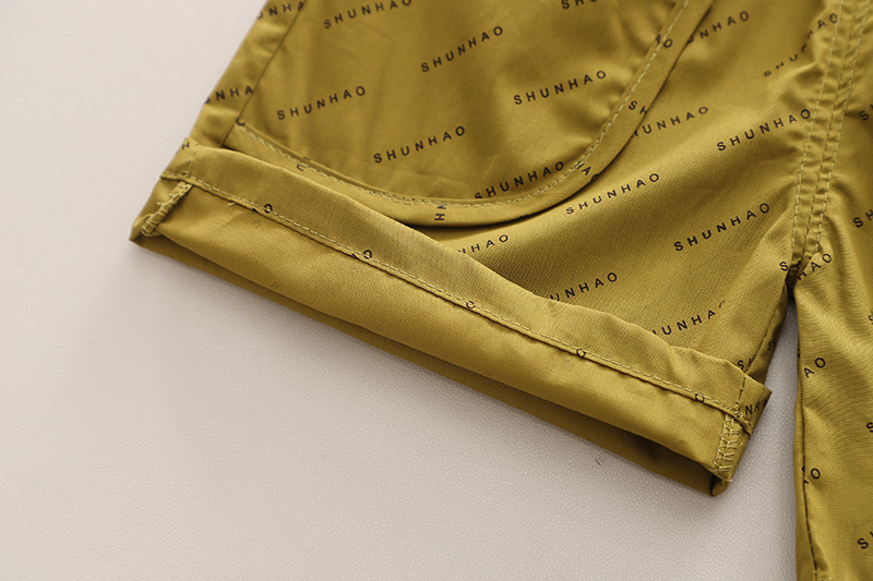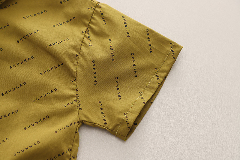 • 반팔 올오버 소문자 셔츠 투피스 세트 그린