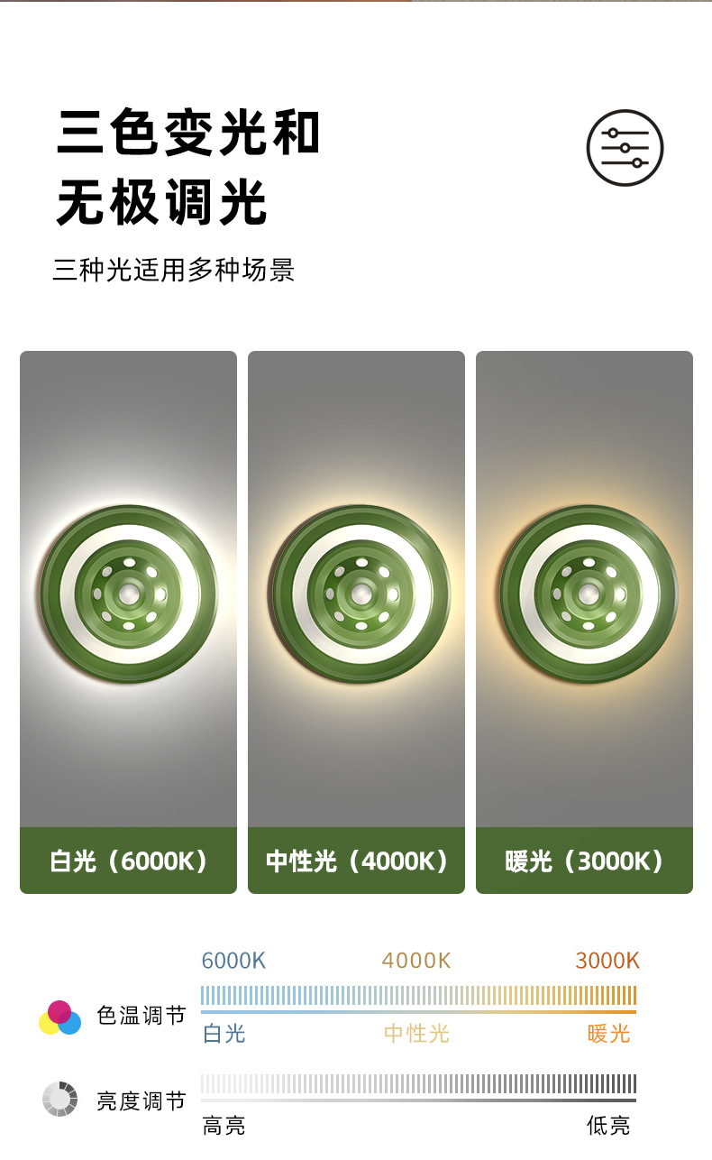 • 녹색 [3가지 색상 + 무단계 디밍] 프리 슬링