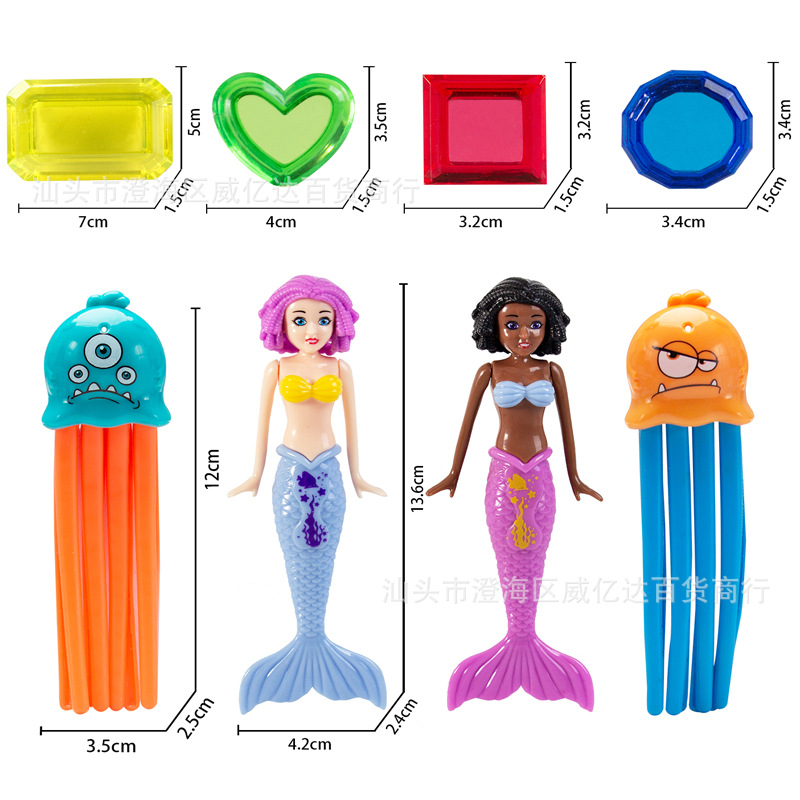 국경 새 다이빙 장난감 세트 어린이 수영장 물을 찾는 보석 짧은 머리 인어 해파리 악마 물고기스토어 가기