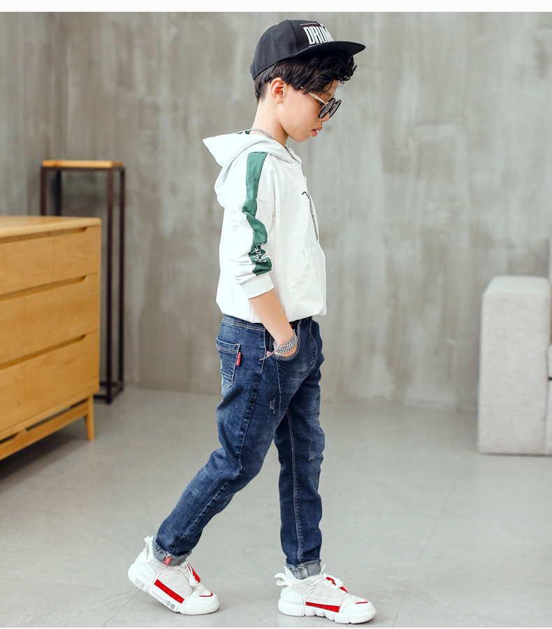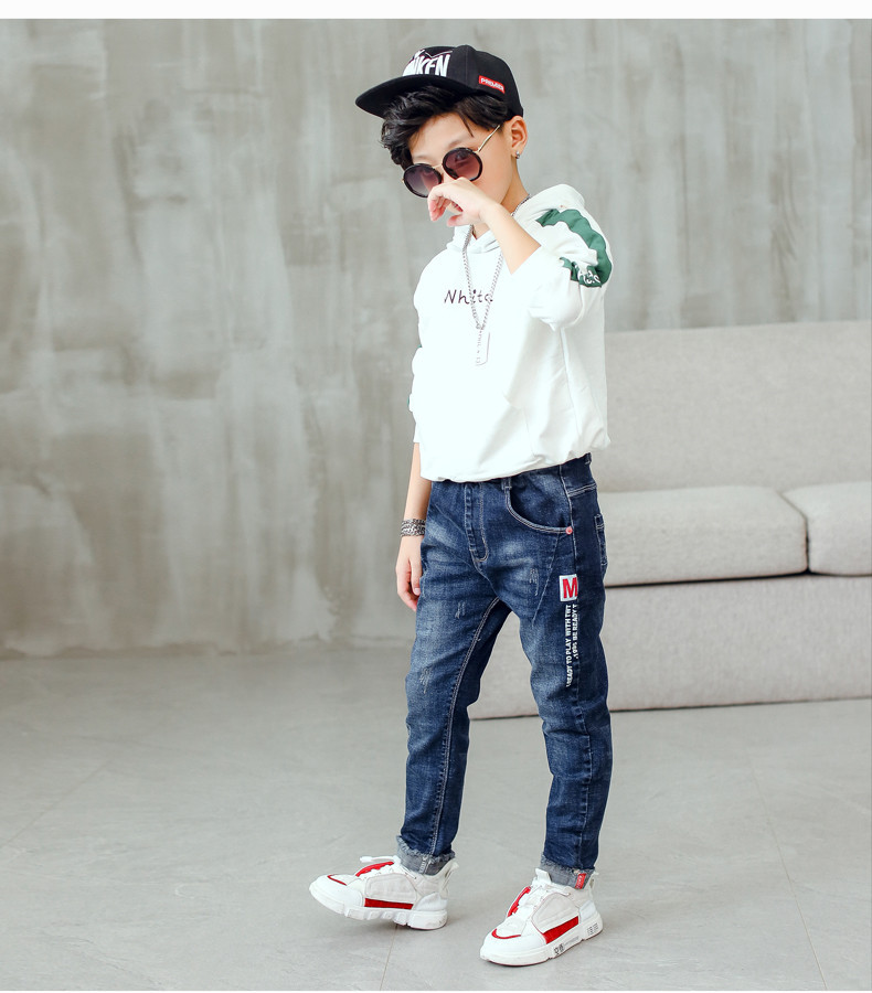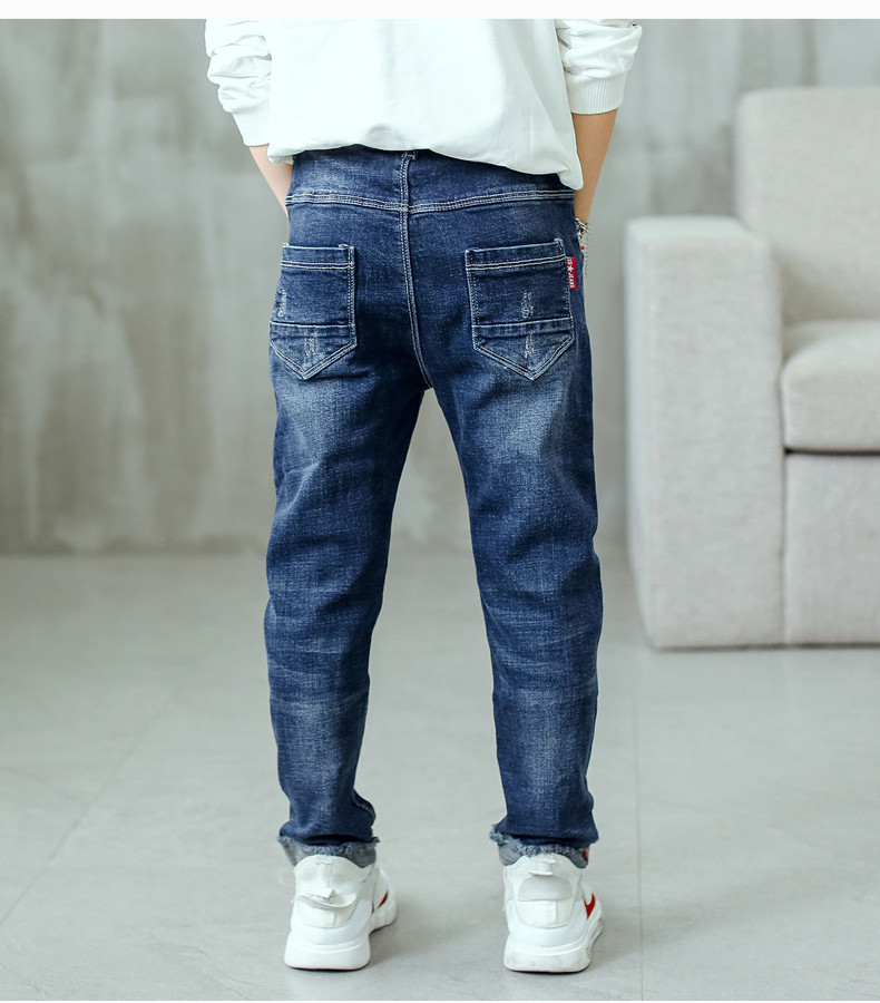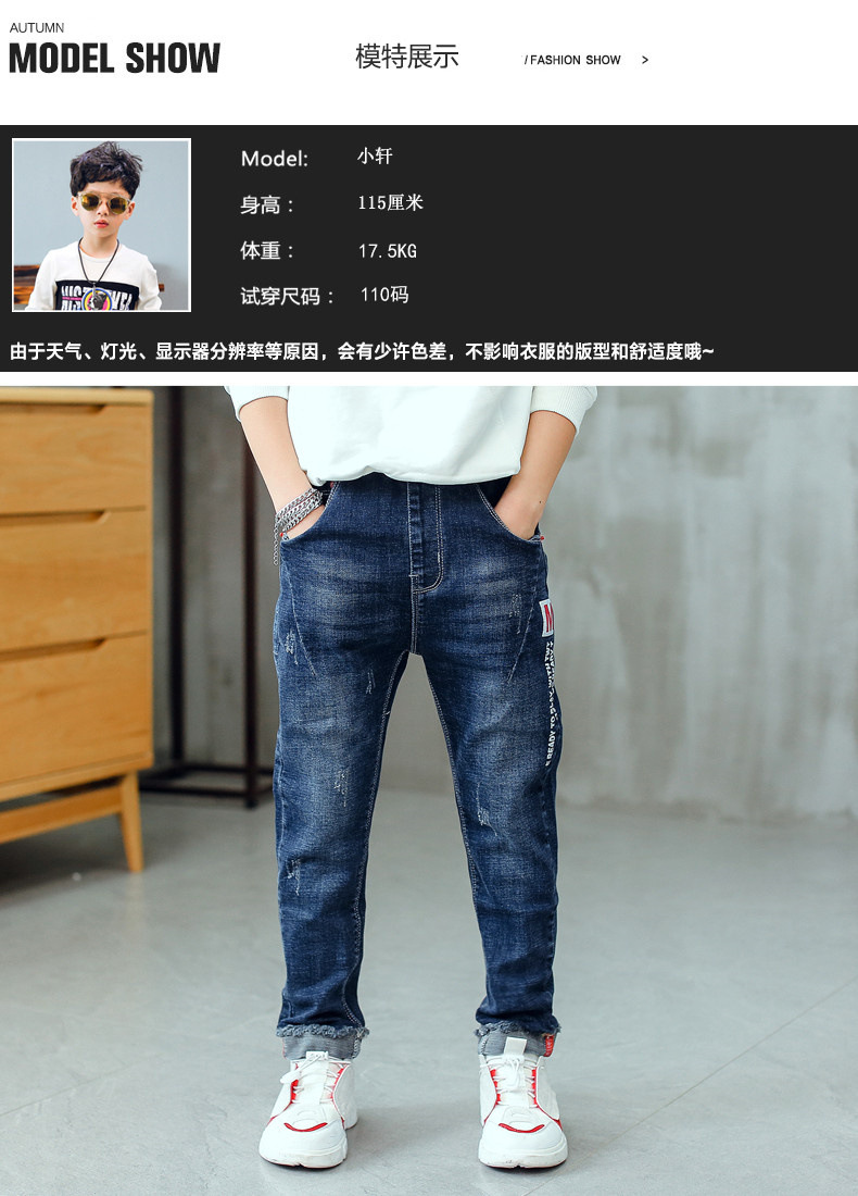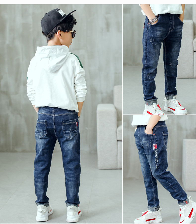 남아용 바지 봄 가을 아동용 청바지 중대형 아동 캐주얼 긴바지 외출용 초중학생용 하이웨이스트 디자인 트렌디 스타일