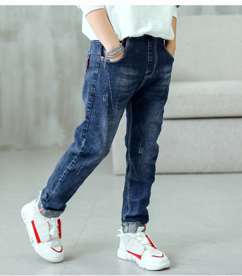 남아용 바지 봄 가을 아동용 청바지 중대형 아동 캐주얼 긴바지 외출용 초중학생용 하이웨이스트 디자인 트렌디 스타일스토어 가기
