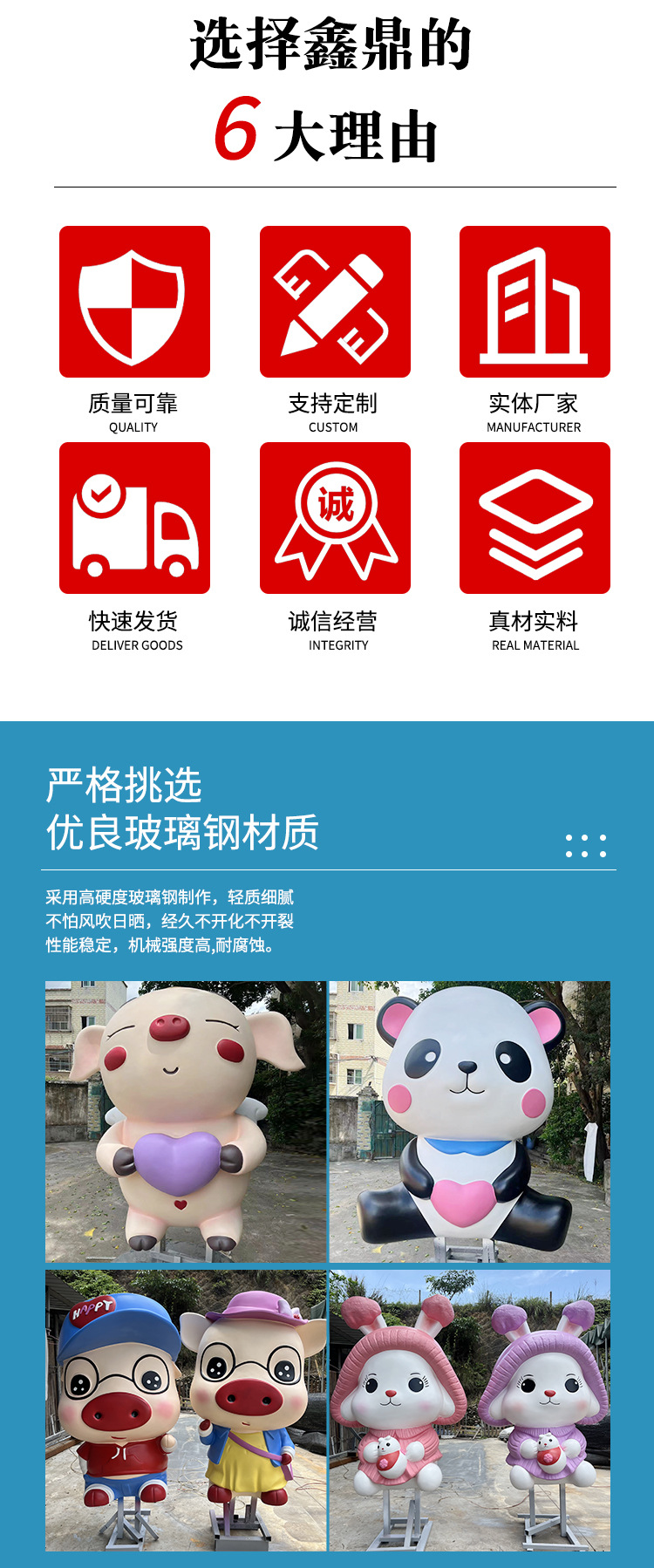 공장 맞춤형 야외 대규모 그물 레드 펀치 카드 IP 인형 조수 브랜드 만화 유리 섬유 강화 플라스틱 조각 장식품