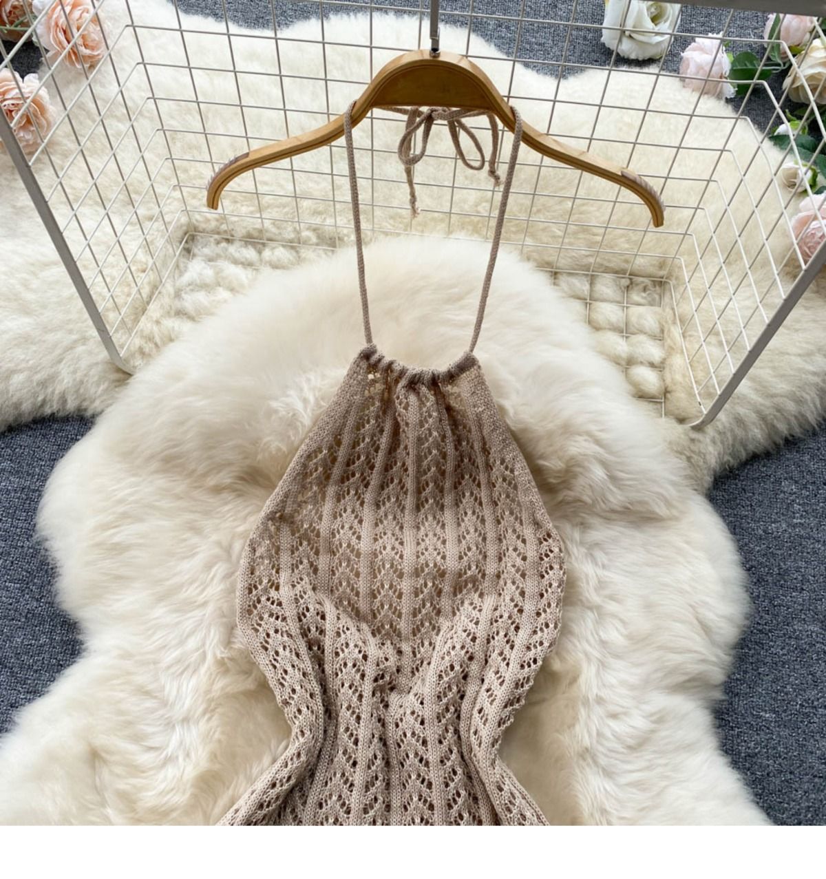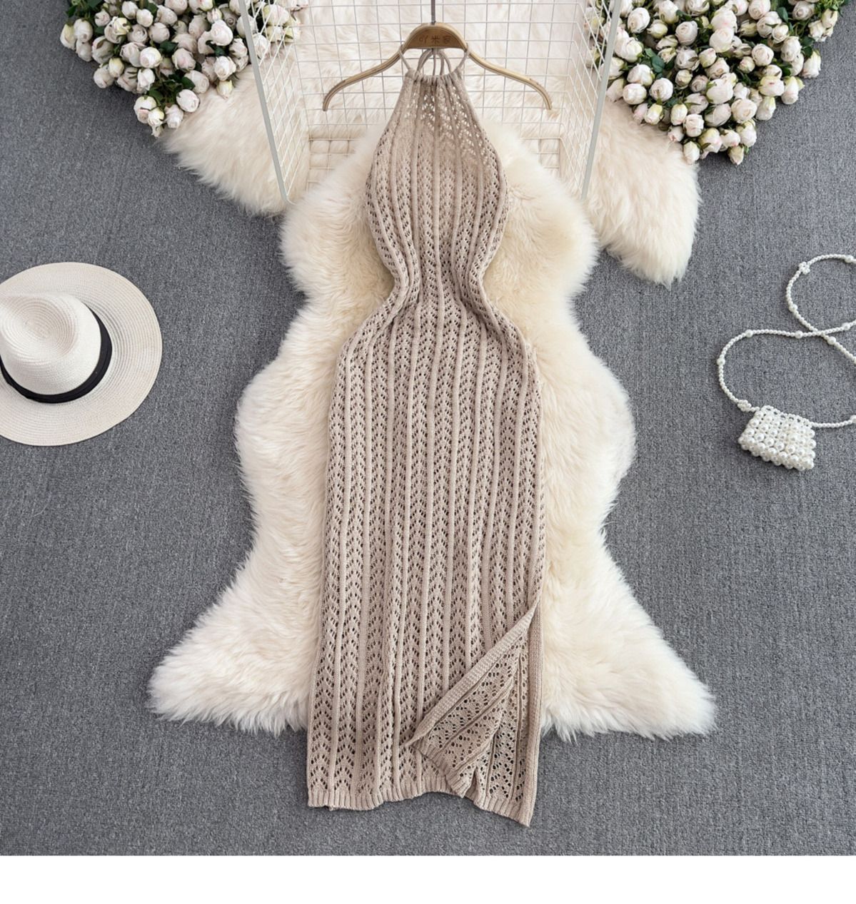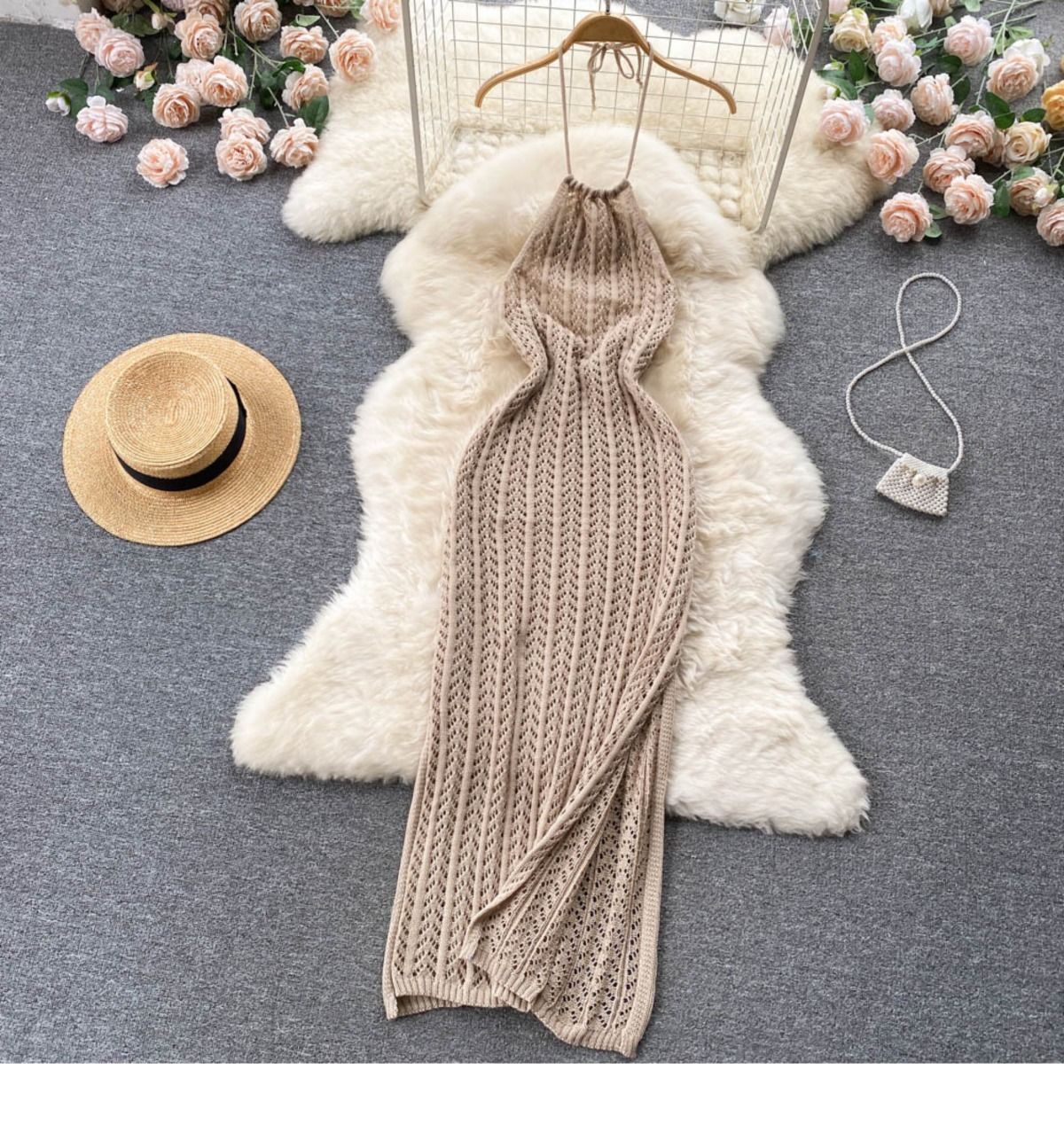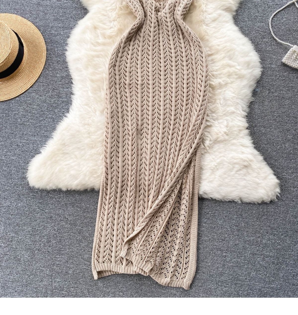 • 베이지색 비키니 + 브라운 니트 스커트