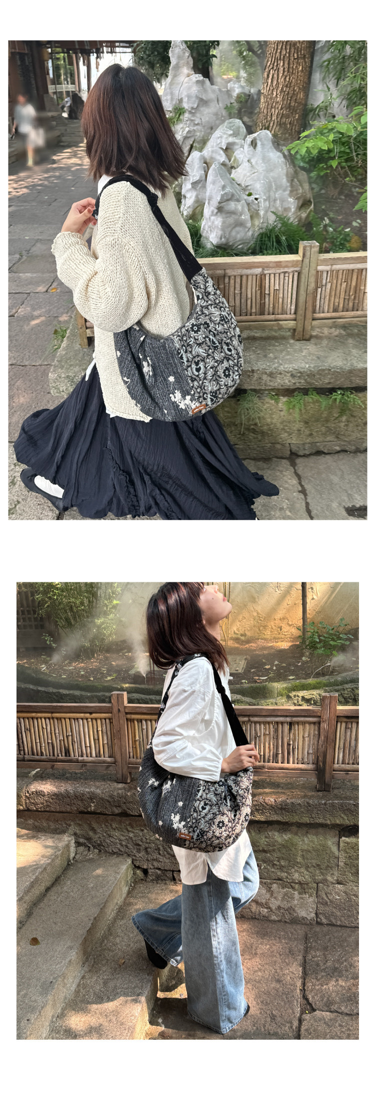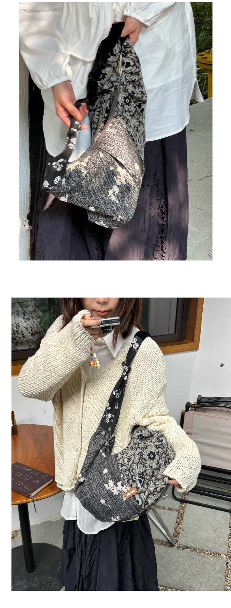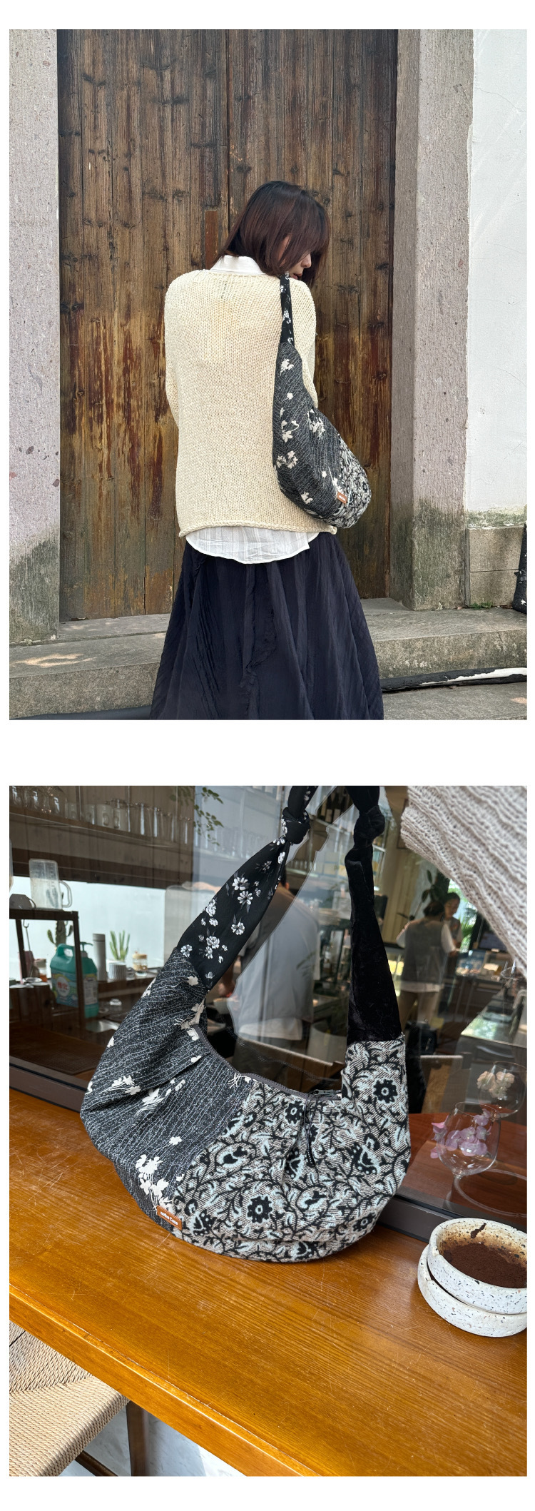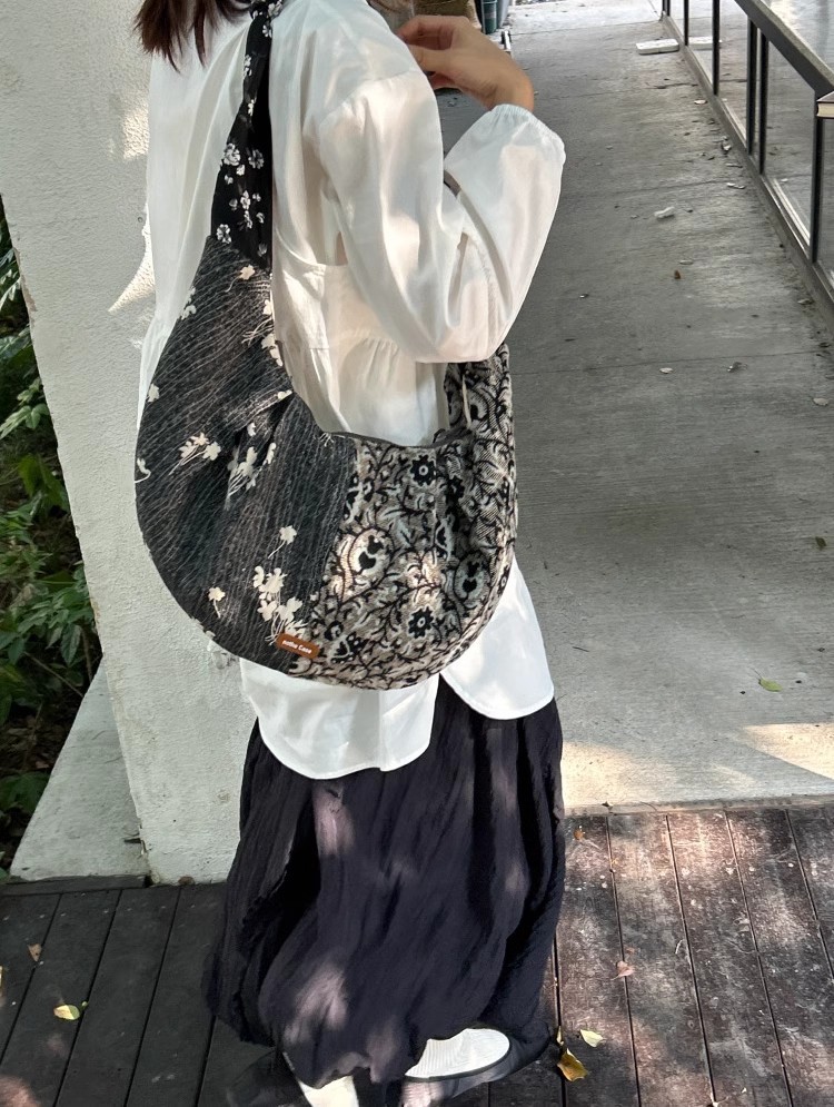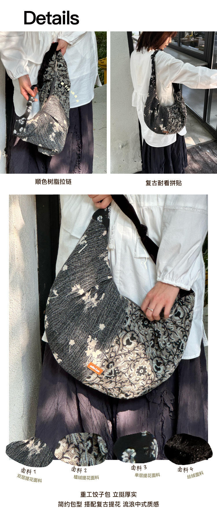 가을과 겨울 신제품 틈새 디자인 새로운 중국 스타일 스티칭 기질 어깨 가방 천 표면 질감 느낌 소 뿔 만두 큰 가방