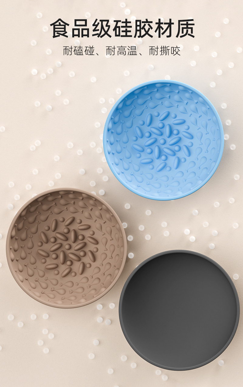 새로운 애완동물 슬로우 푸드 그릇, 넘어짐 방지 흡착판 디자인, 질식 방지 및 구토 방지, 고양이와 강아지를 위한 실리콘 슬로우 푸드 그릇