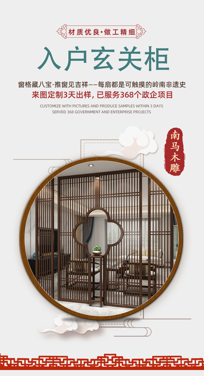 새로운 중국 스타일 스크린 파티션 캐비닛 거실 입구 캐비닛 솔리드 우드 그릴 사무실 꽃 랙 입구 문 차폐 빈티지스토어 가기