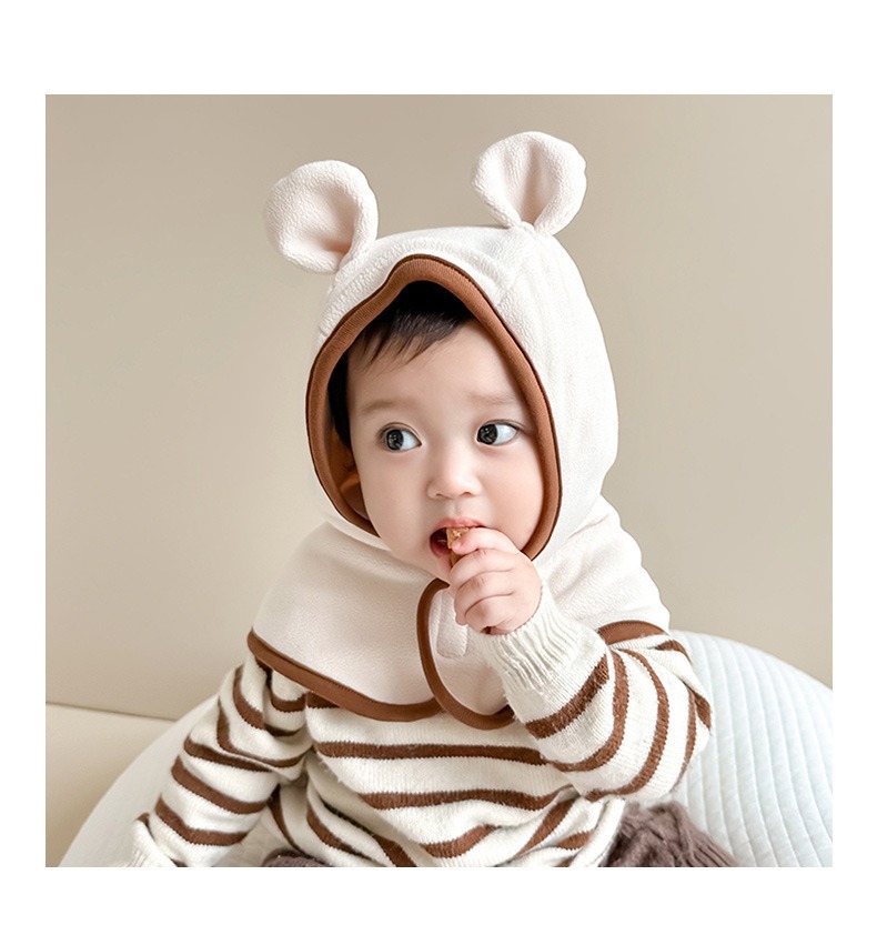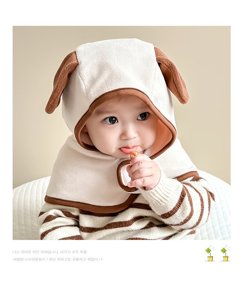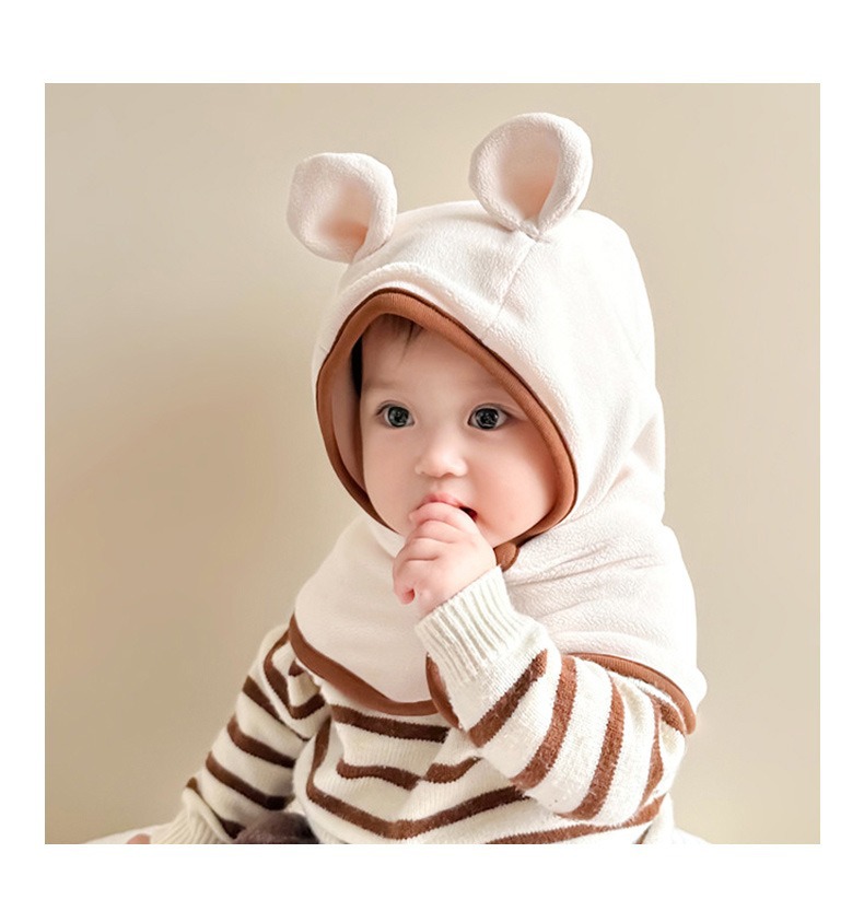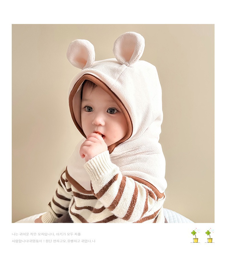 기모 두꺼운 아기 모자 가을과 겨울 아기 스카프 결합 된 어린이 따뜻한 귀 모자 소년 소녀 칼라