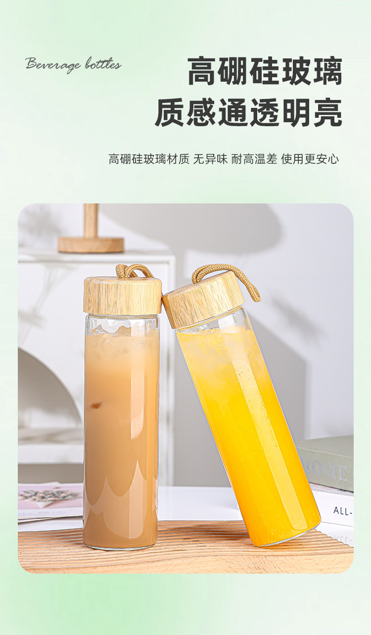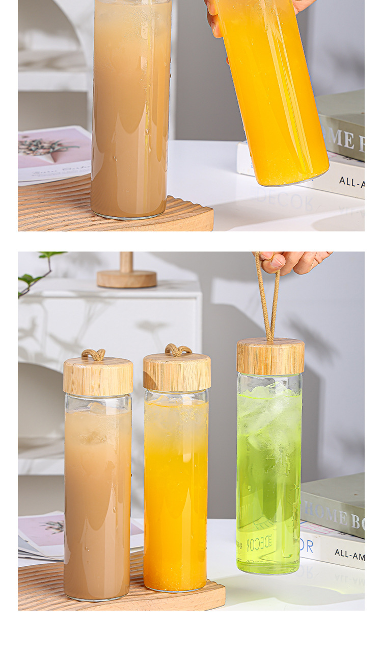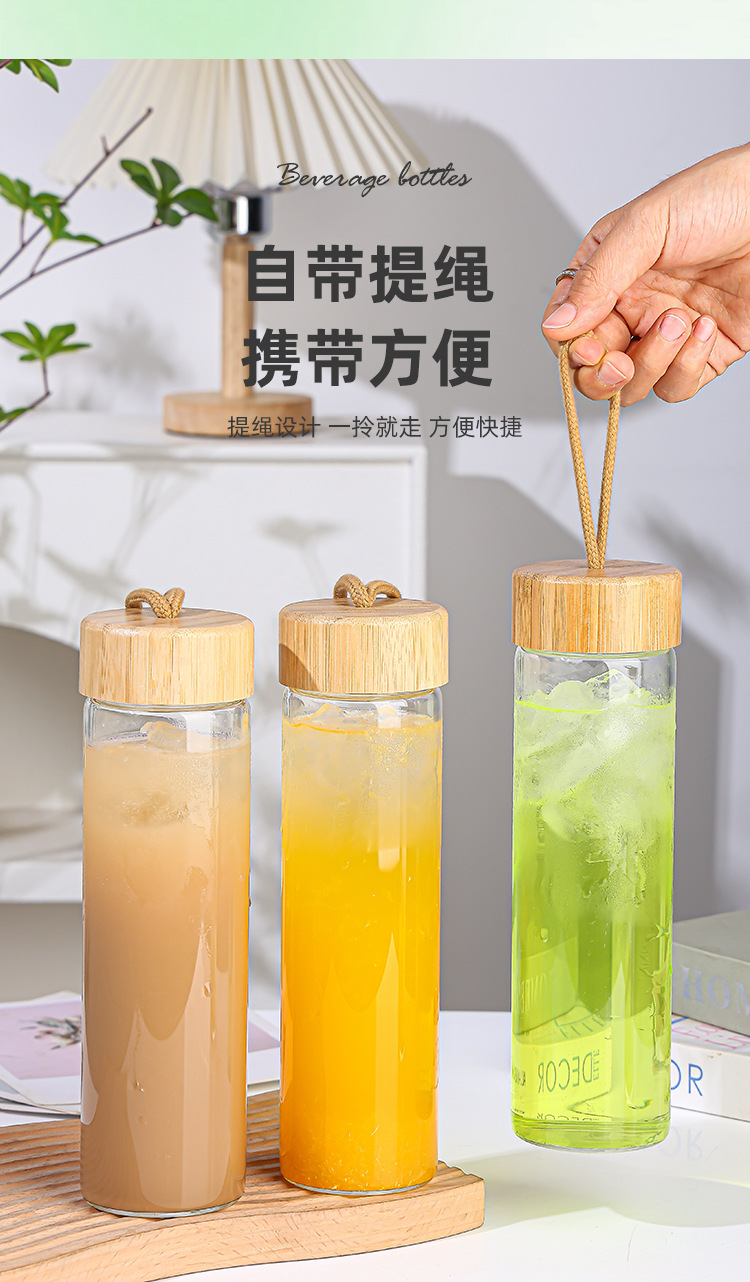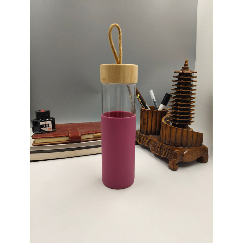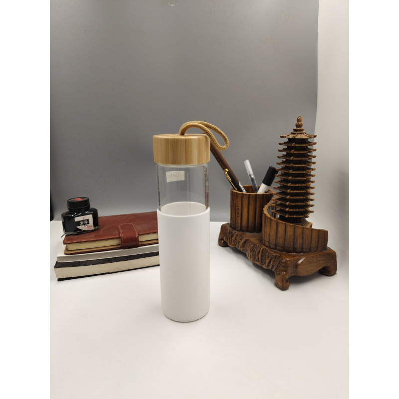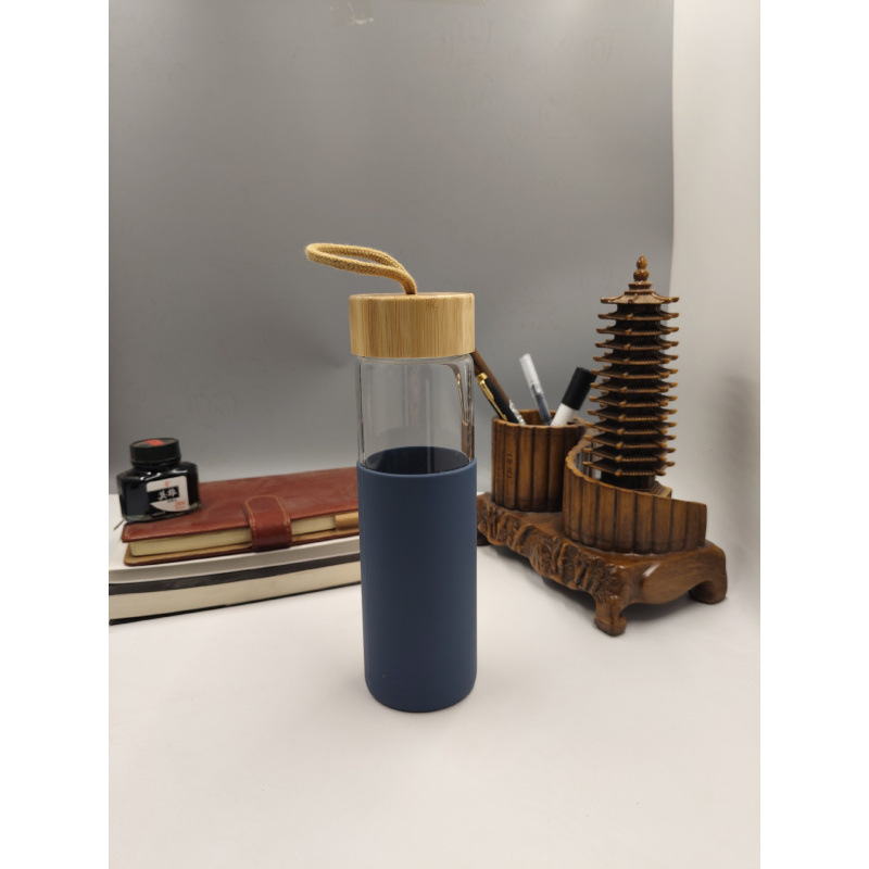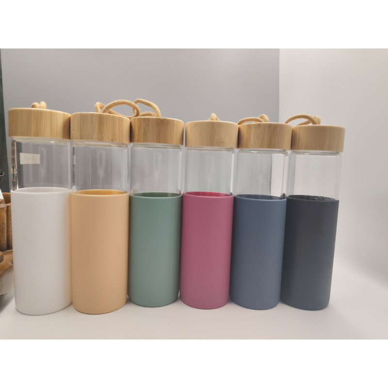 새로운 높은 붕규산 유리 컵 실리콘 커버 창조적 인 대나무 뚜껑 단일 층 물 컵 휴대용 직선 컵 핸드 컵 도매