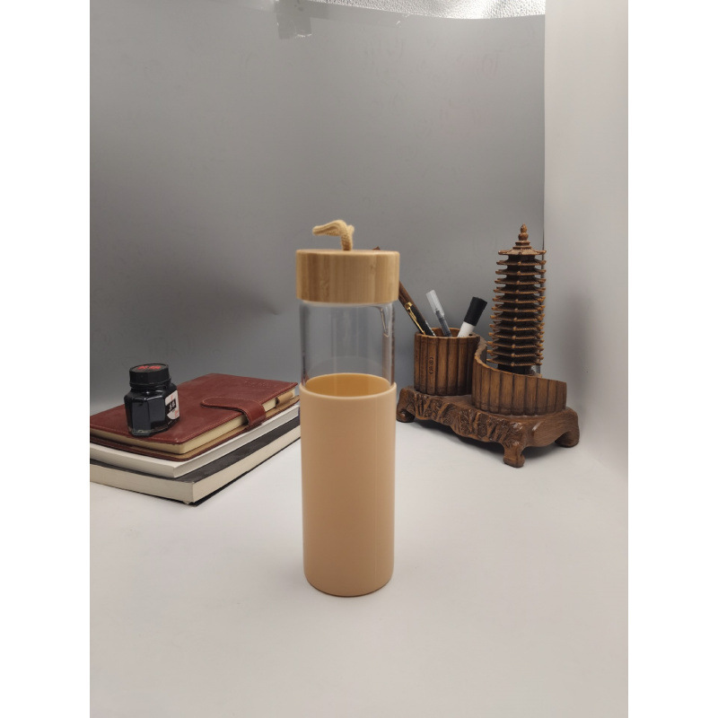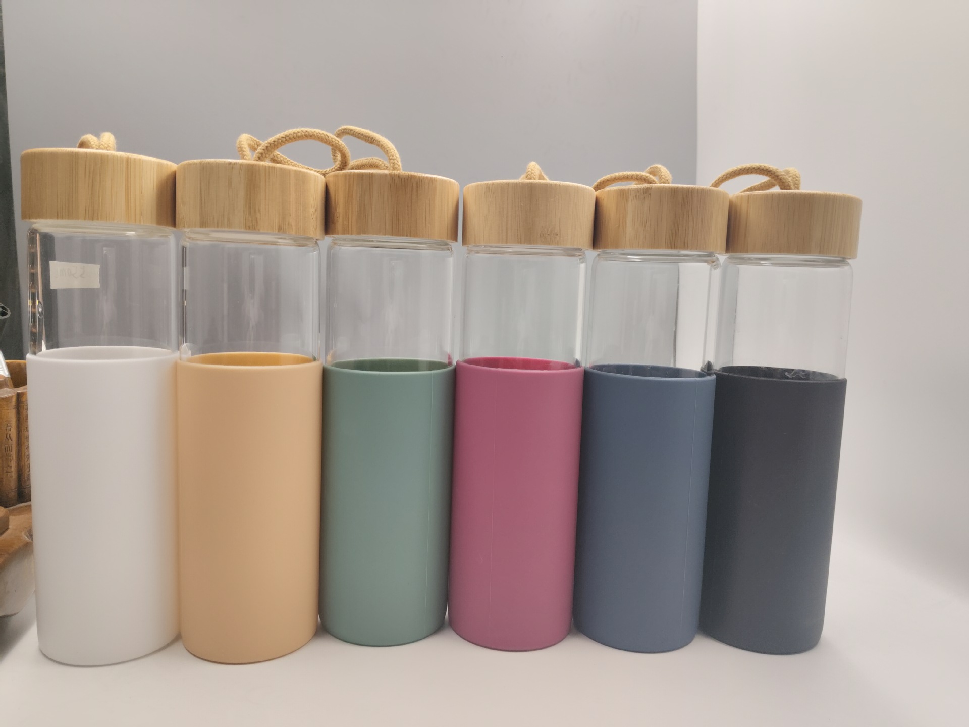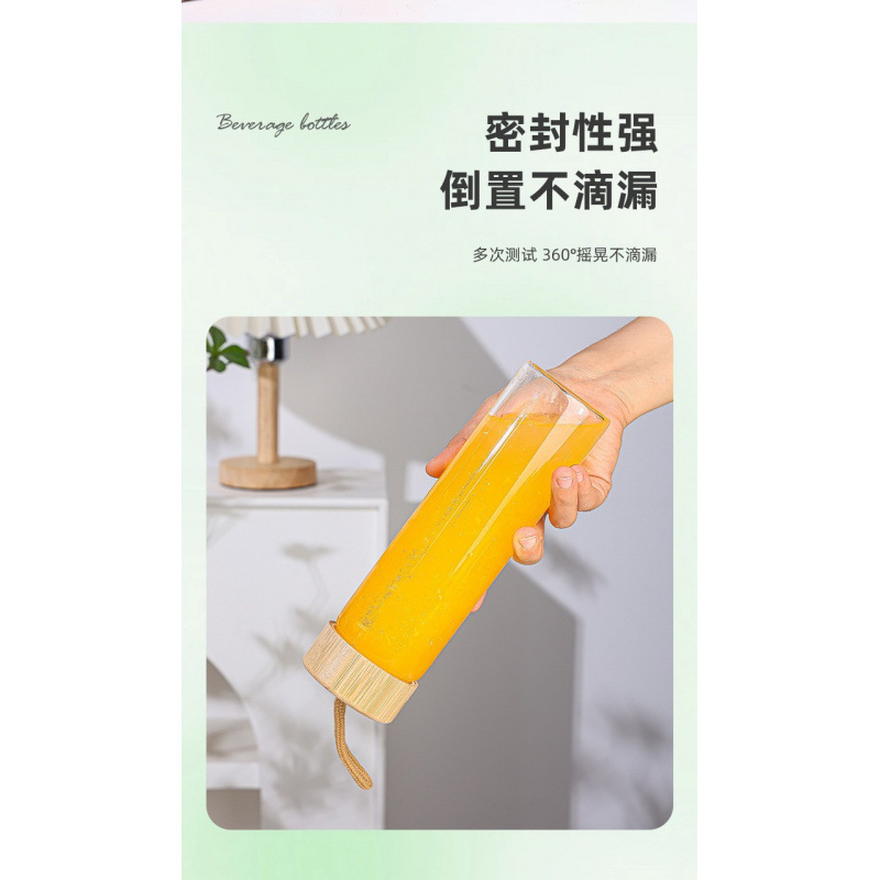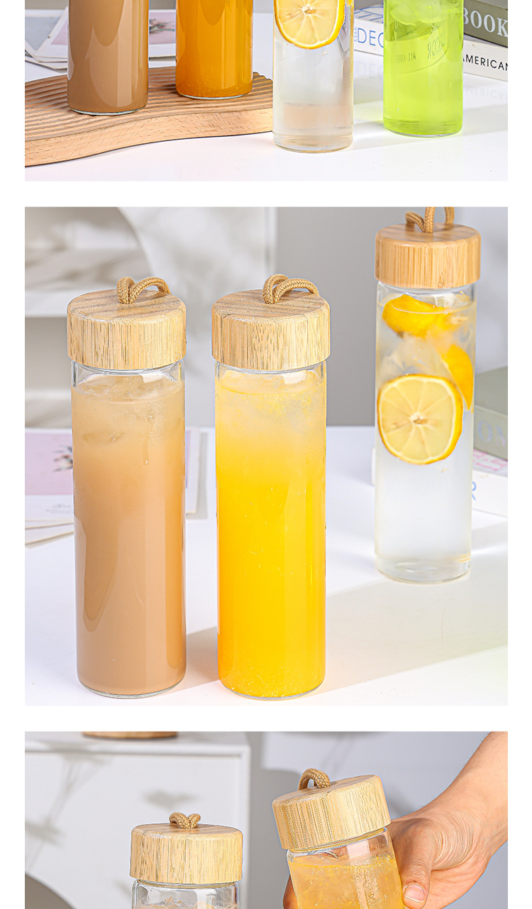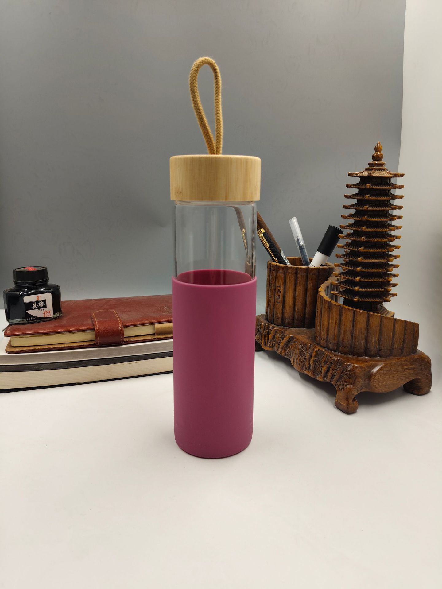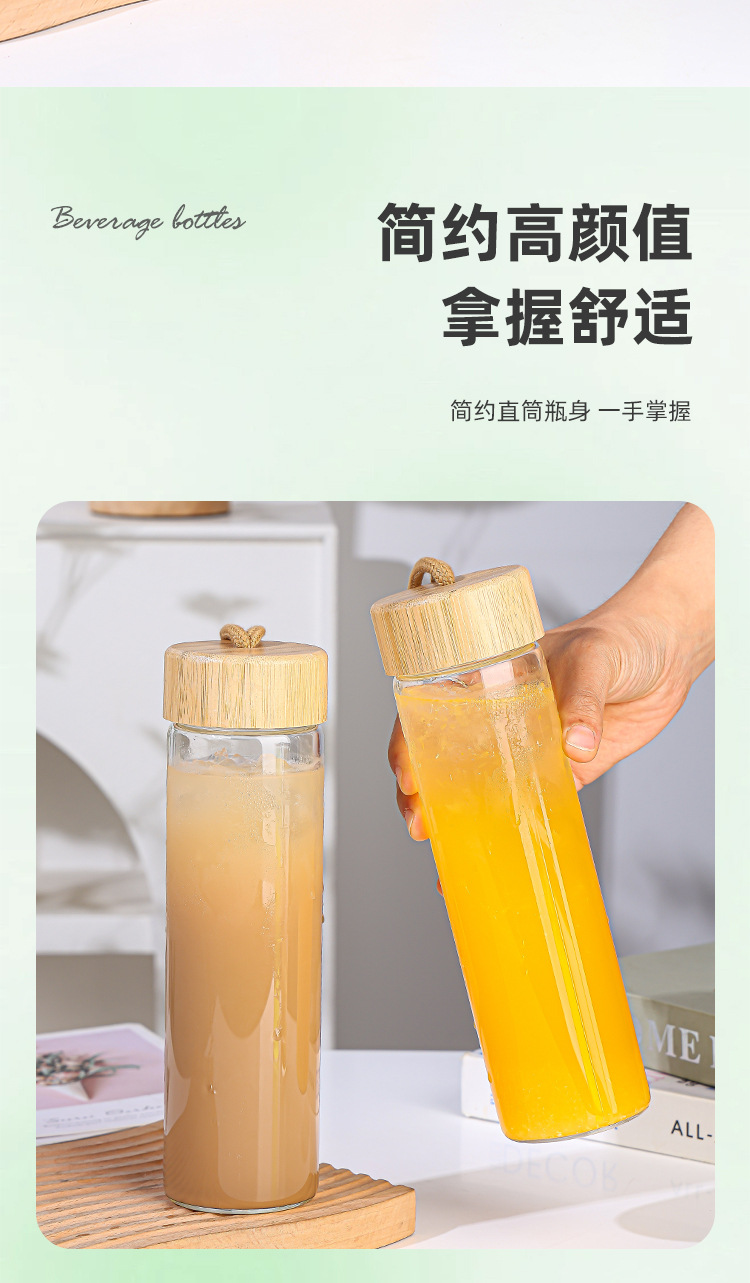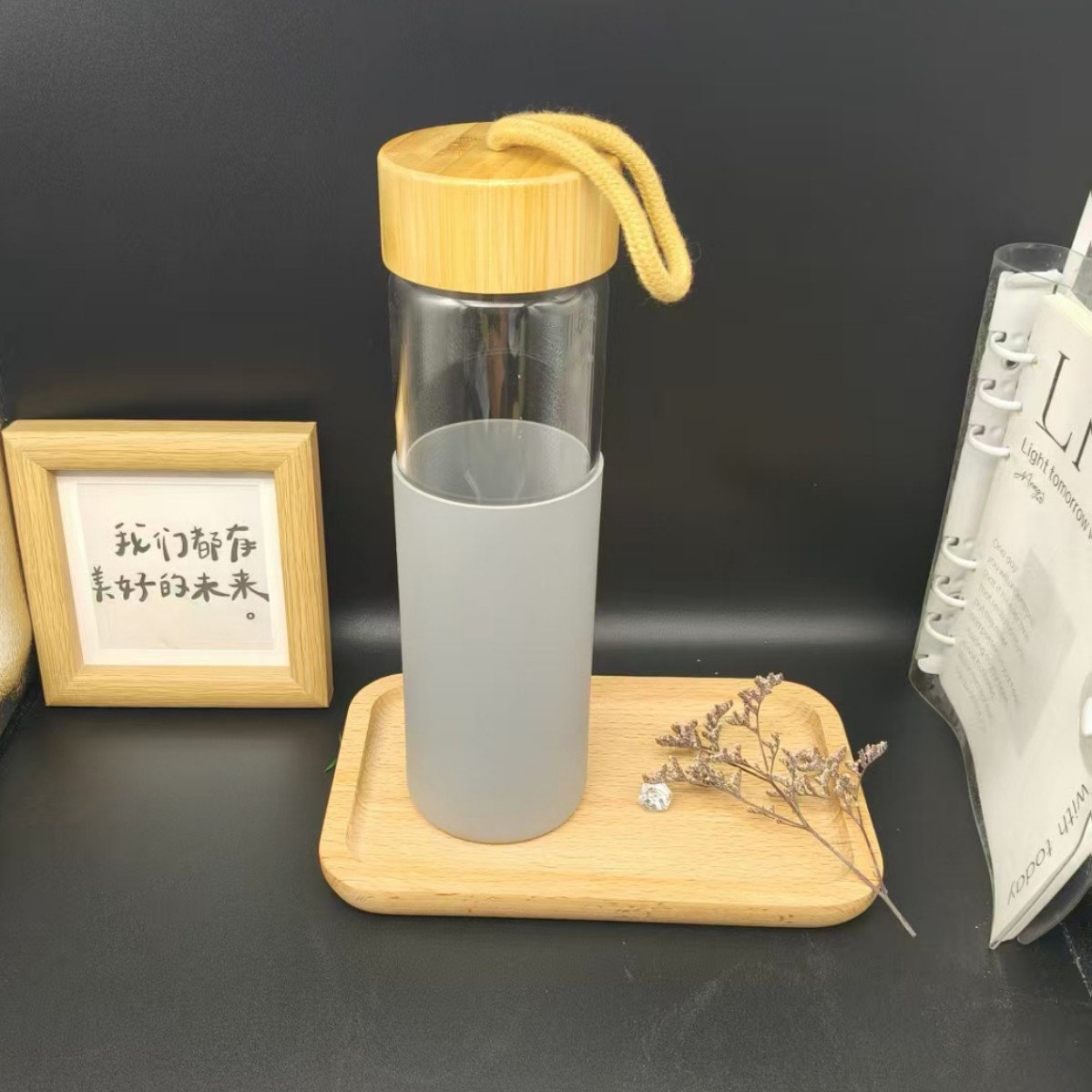 새로운 높은 붕규산 유리 컵 실리콘 커버 창조적 인 대나무 뚜껑 단일 층 물 컵 휴대용 직선 컵 핸드 컵 도매
