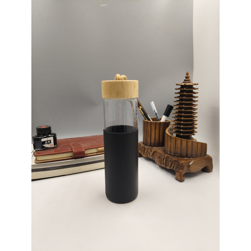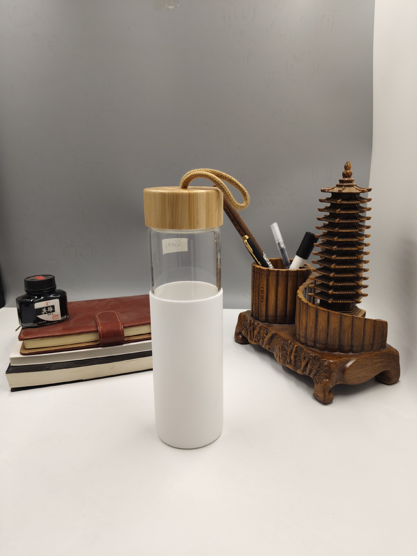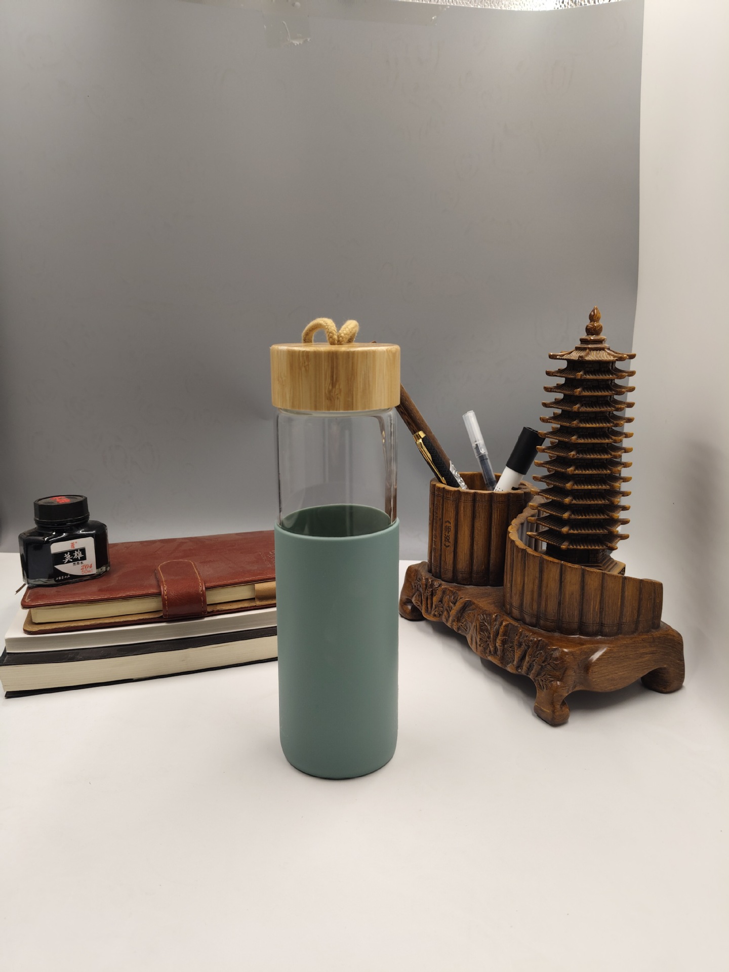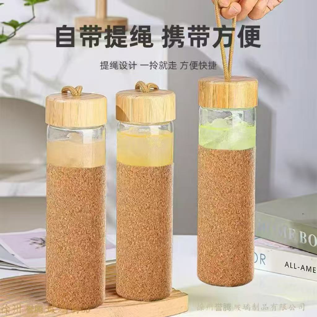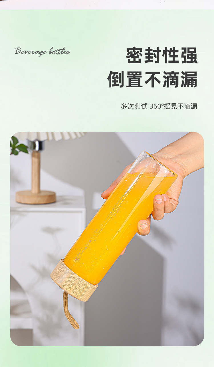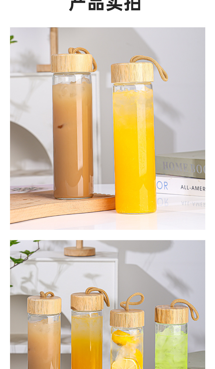 새로운 높은 붕규산 유리 컵 실리콘 커버 창조적 인 대나무 뚜껑 단일 층 물 컵 휴대용 직선 컵 핸드 컵 도매