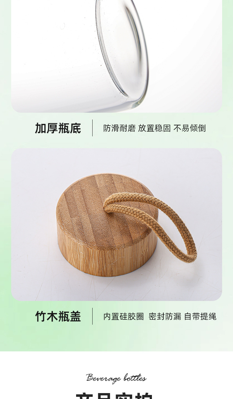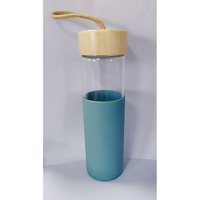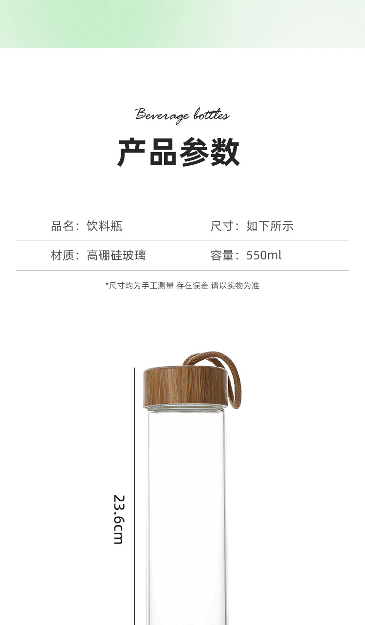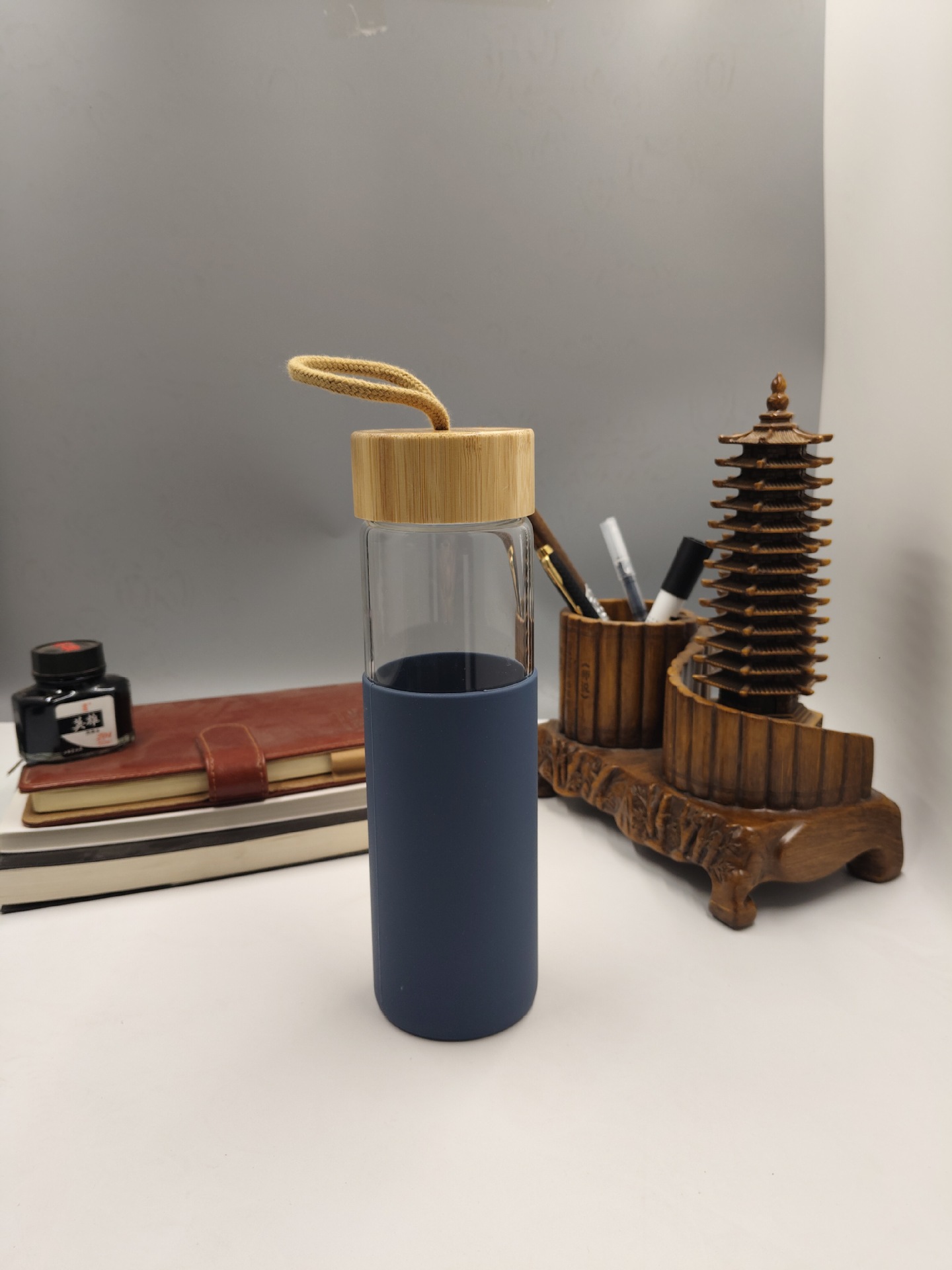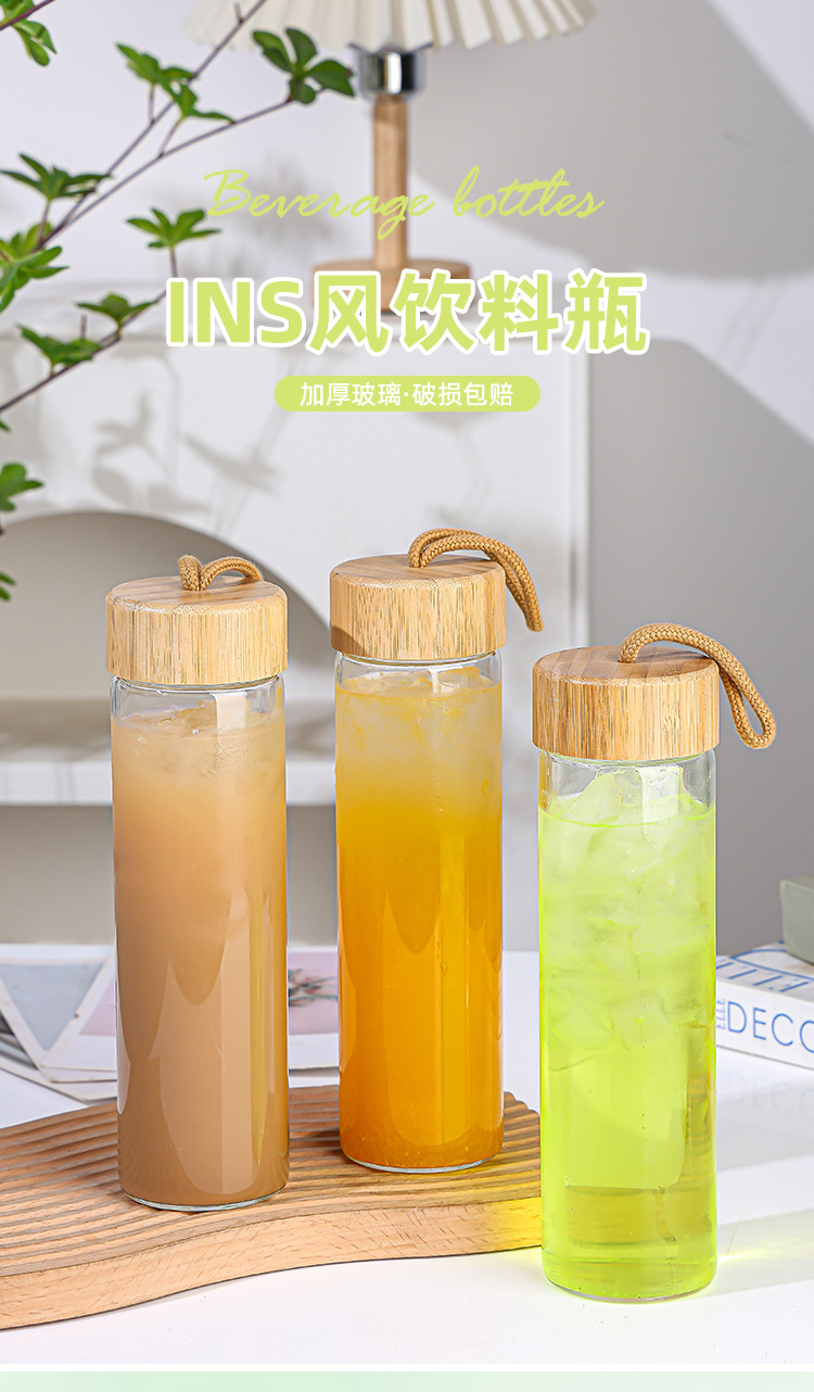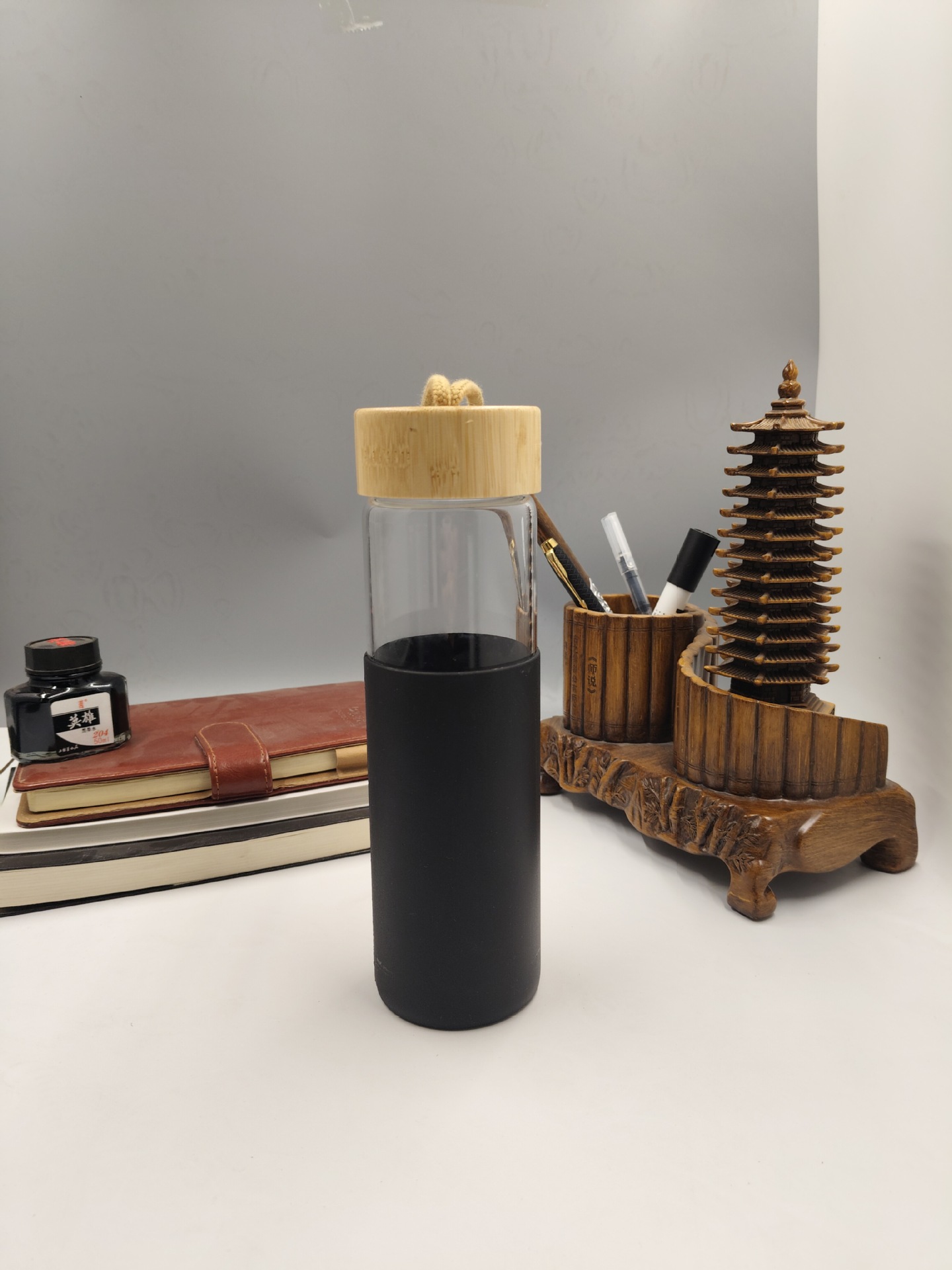 새로운 높은 붕규산 유리 컵 실리콘 커버 창조적 인 대나무 뚜껑 단일 층 물 컵 휴대용 직선 컵 핸드 컵 도매
