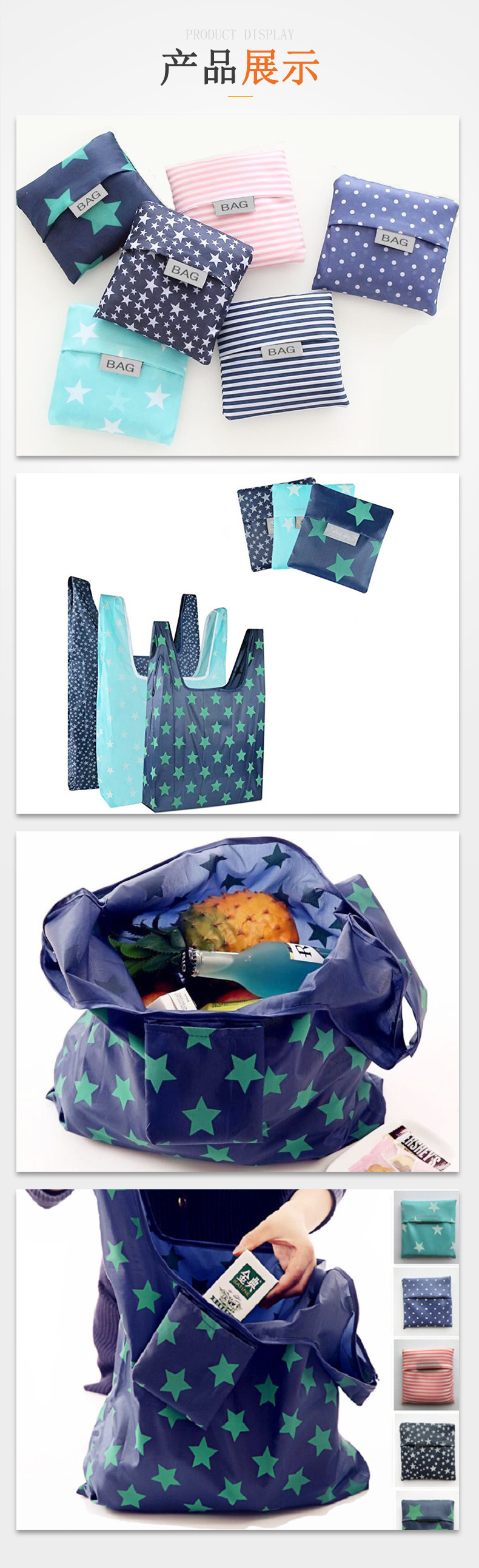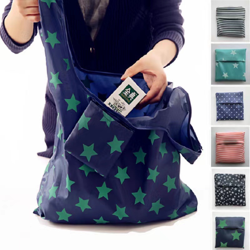 국경을 넘는 새로운 접이식 쇼핑백, 휴대용 친환경 가방, 발수 핸드백, 옥스포드 천 수납 쇼핑백 배치