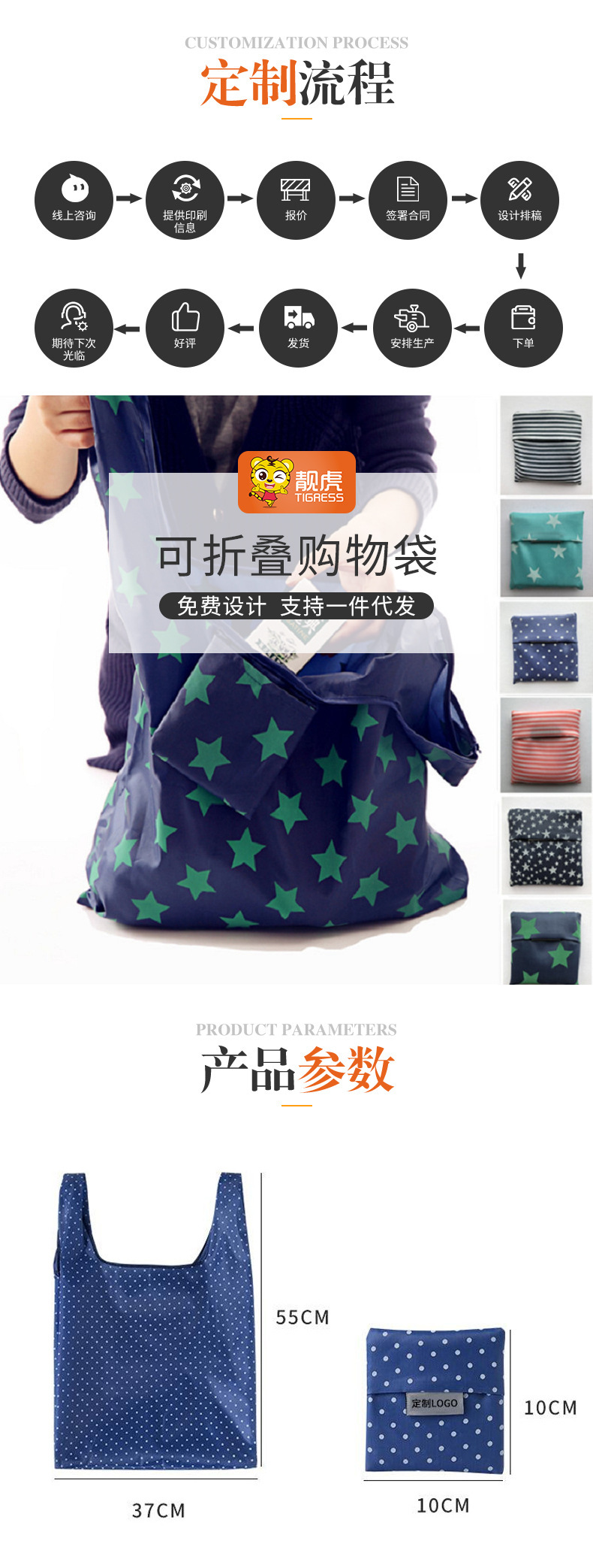 국경을 넘는 새로운 접이식 쇼핑백, 휴대용 친환경 가방, 발수 핸드백, 옥스포드 천 수납 쇼핑백 배치스토어 가기