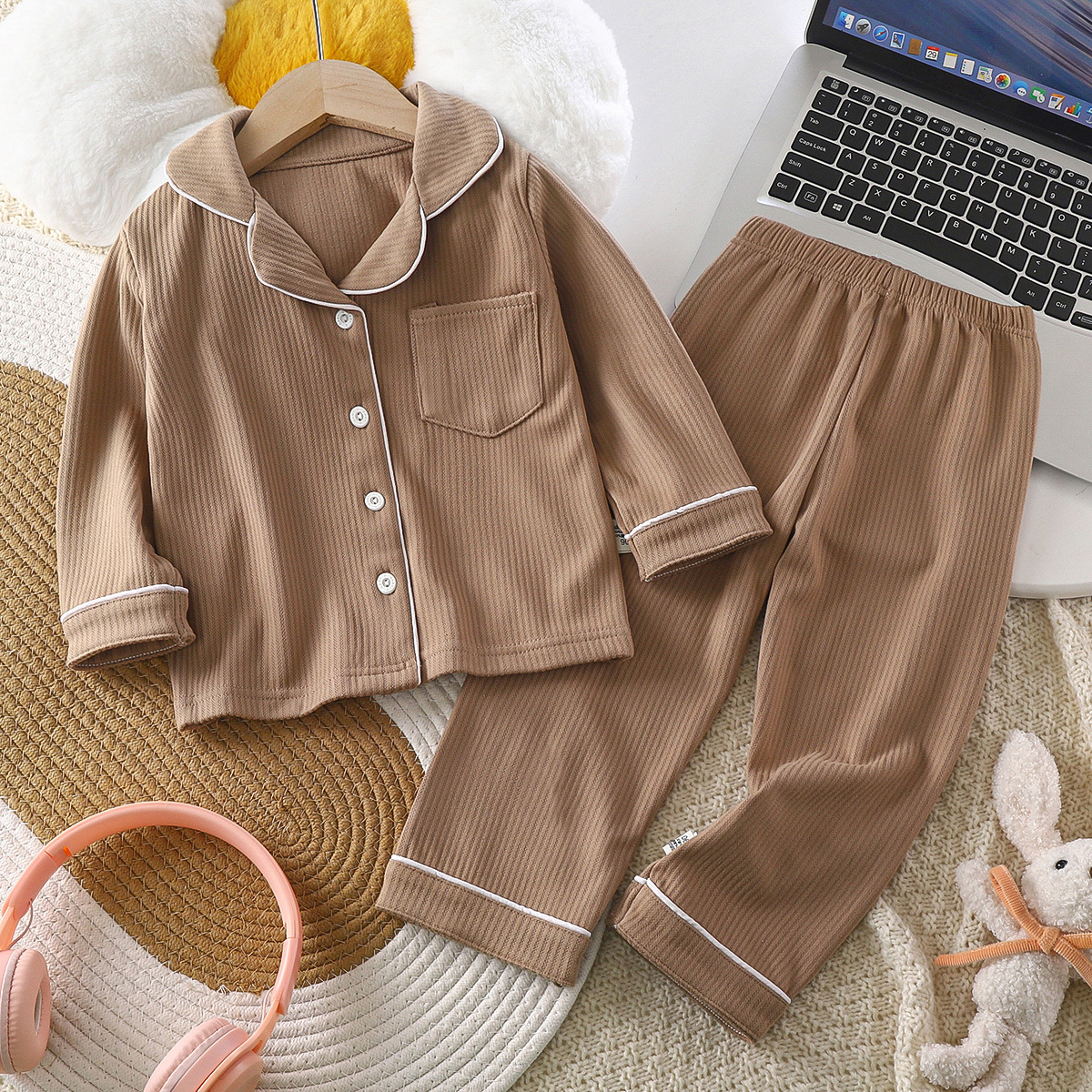 새로운 어린이 가을 옷 가을 바지 소년 열 속옷 소녀 옷깃 파자마 큰 어린이 가을과 겨울 집 옷 도매스토어 가기