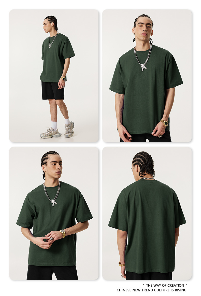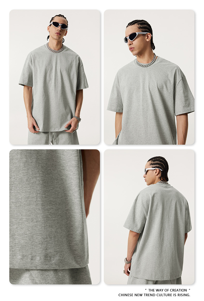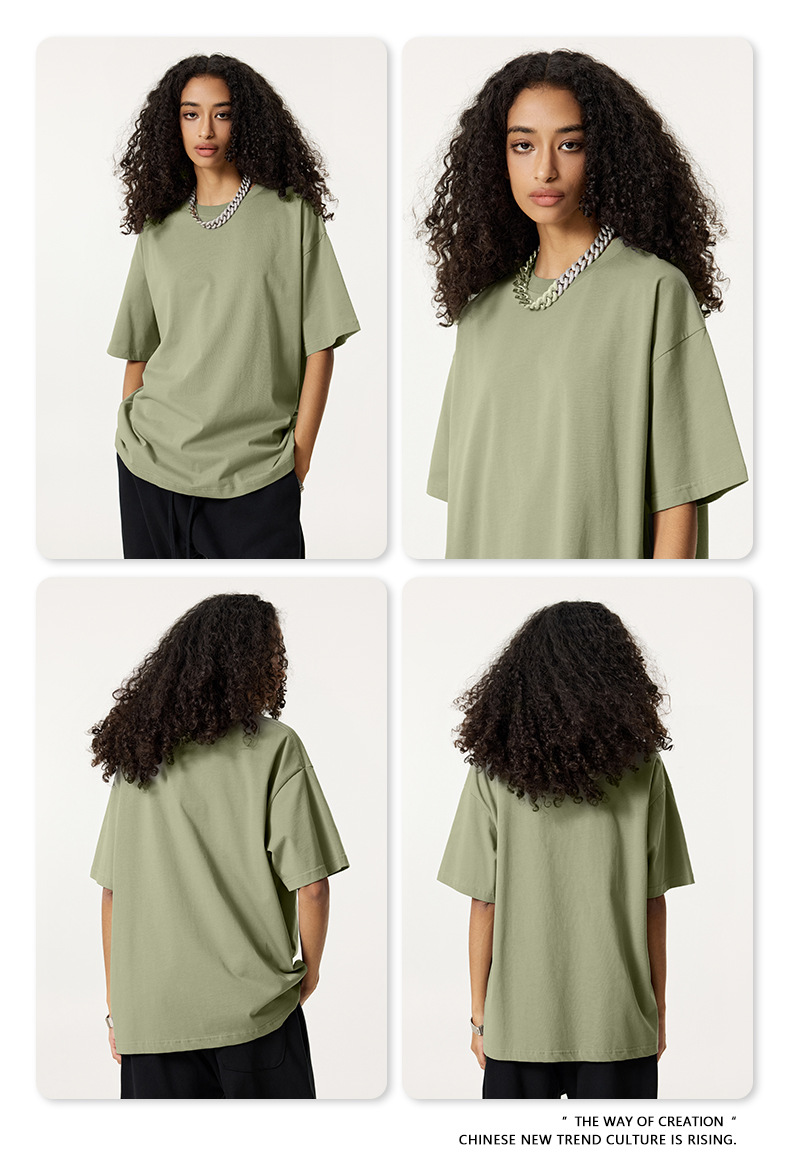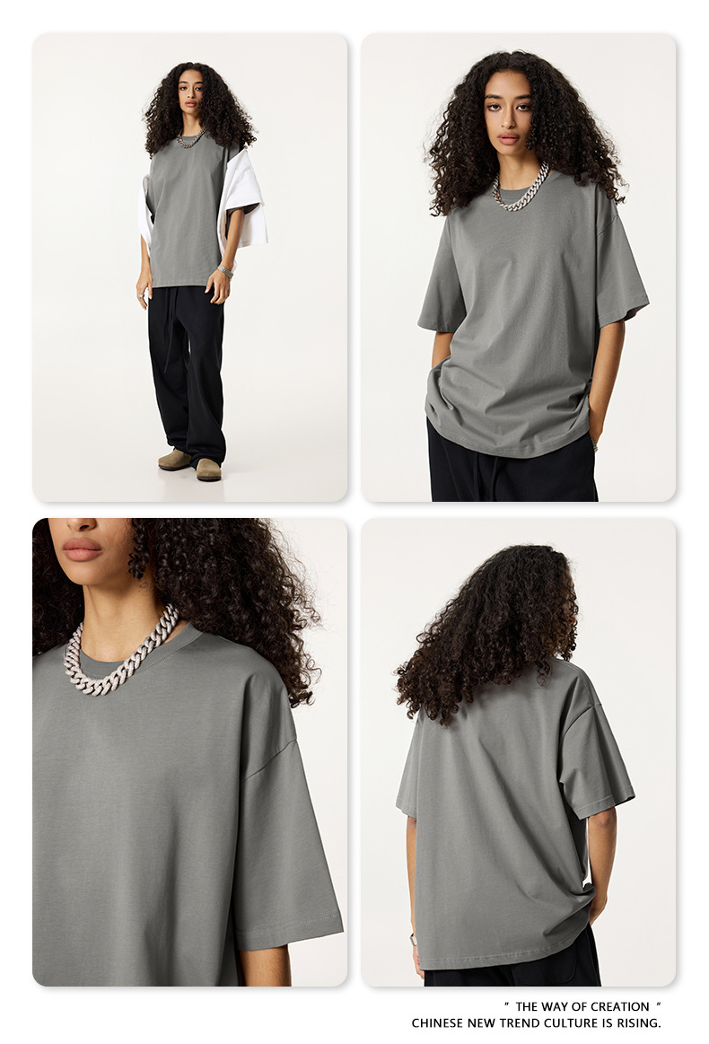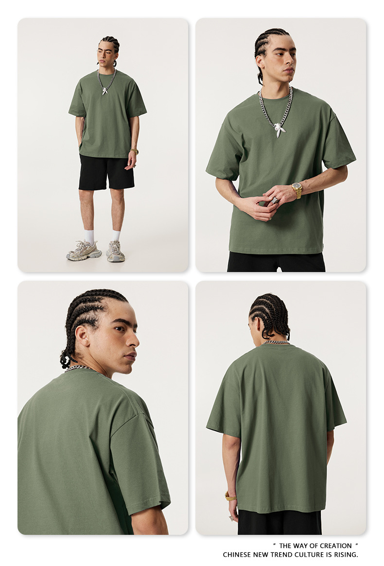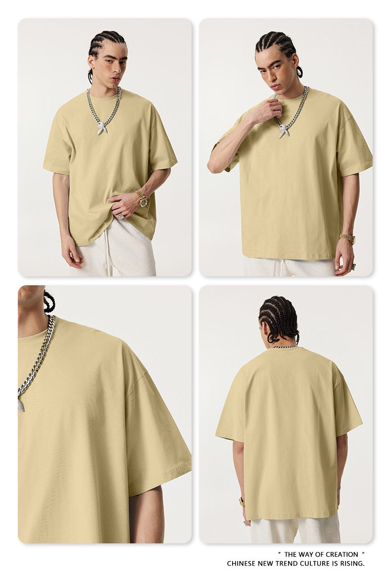 2025 봄 여름 심플 트렌디 브랜드 더블 원사 순면 반팔 남성 티셔츠 대형 루즈 도파민 티셔츠 스포츠 탑스토어 가기