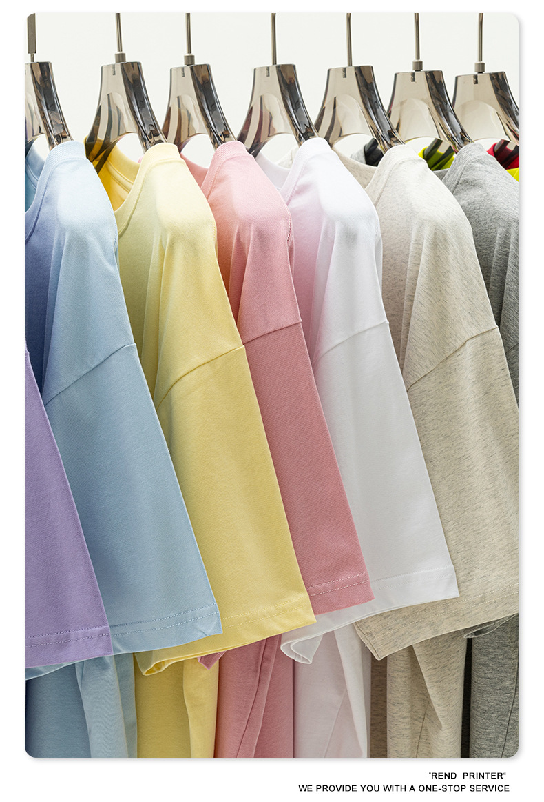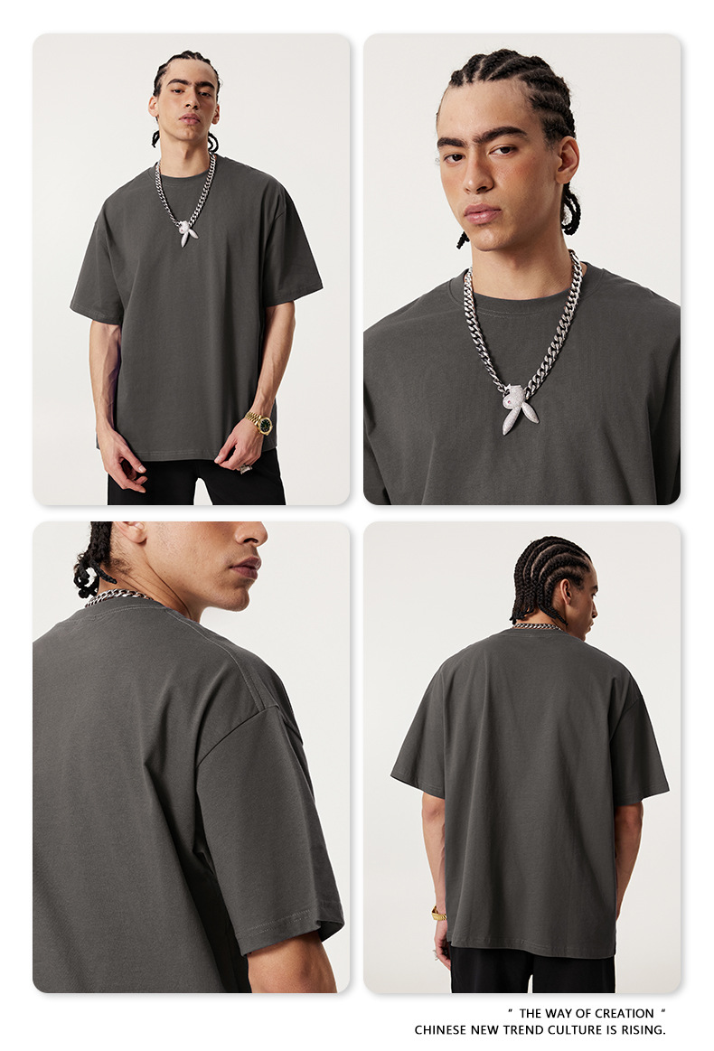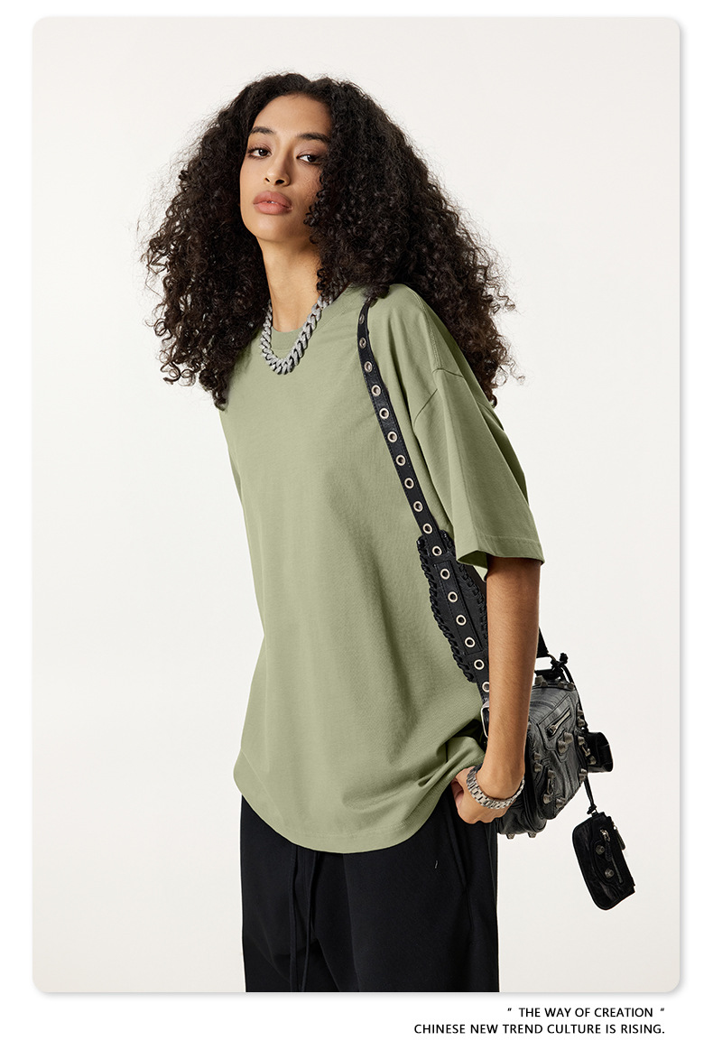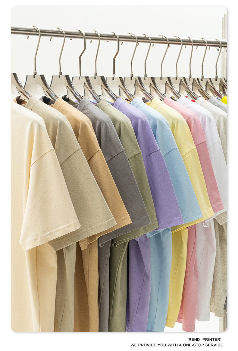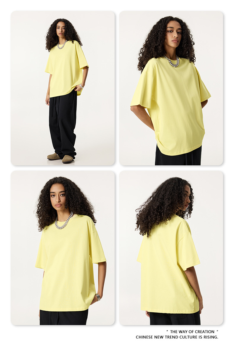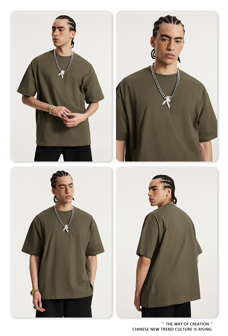 2025 봄 여름 심플 트렌디 브랜드 더블 원사 순면 반팔 남성 티셔츠 대형 루즈 도파민 티셔츠 스포츠 탑스토어 가기