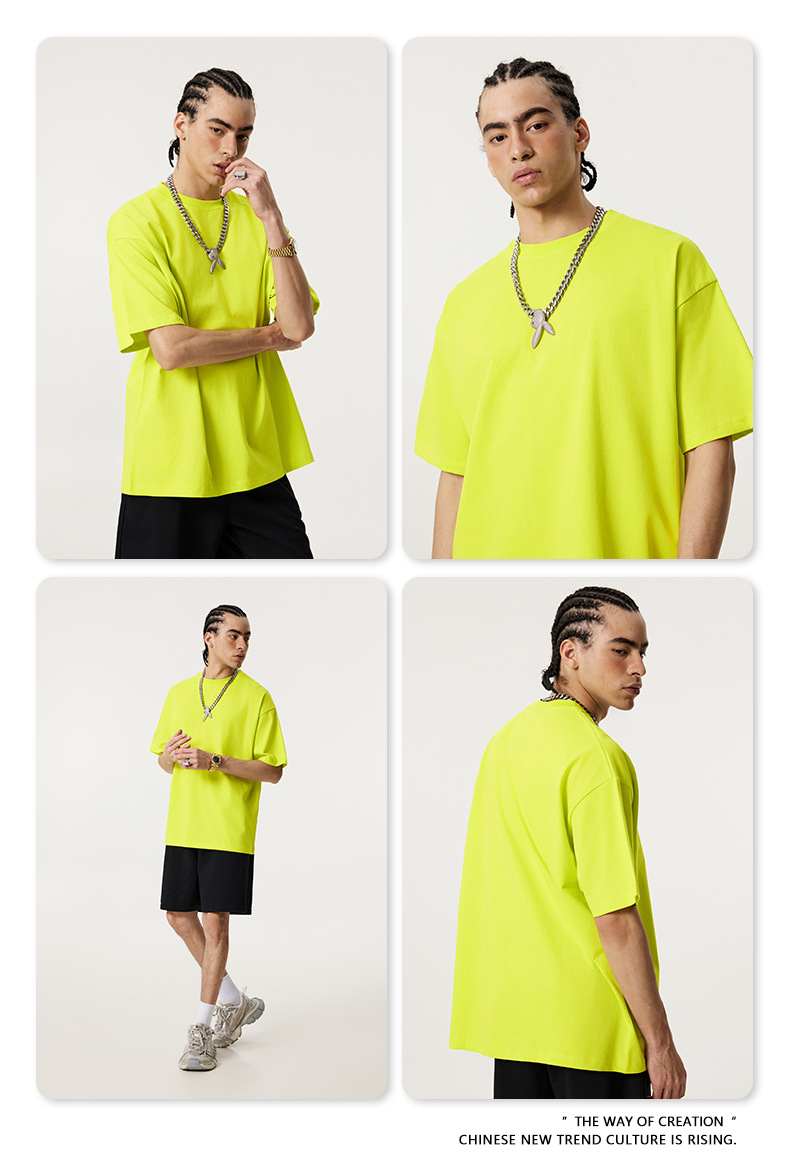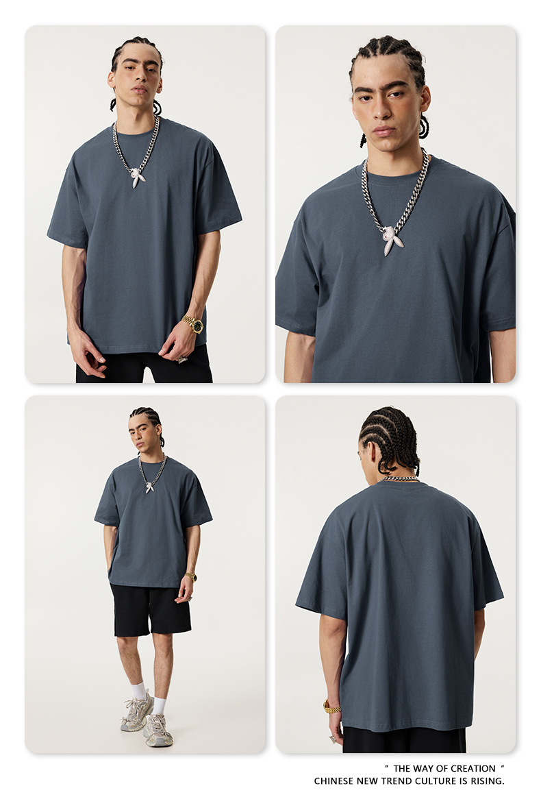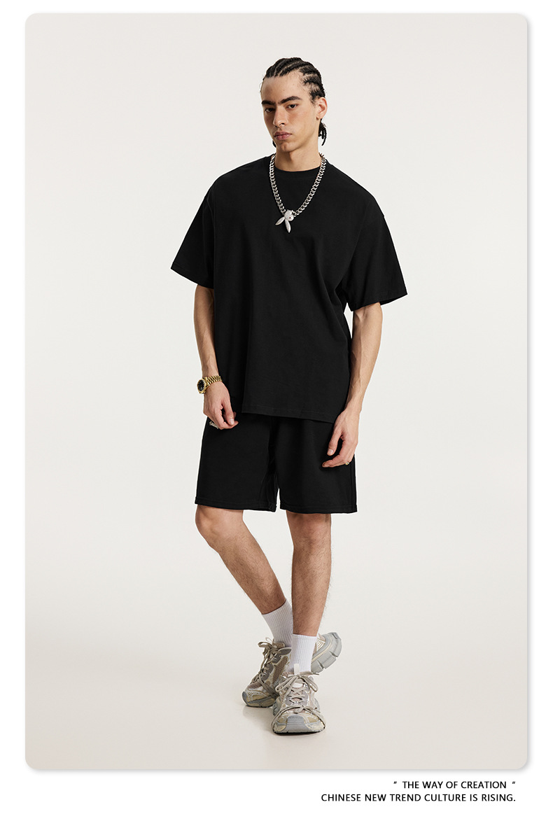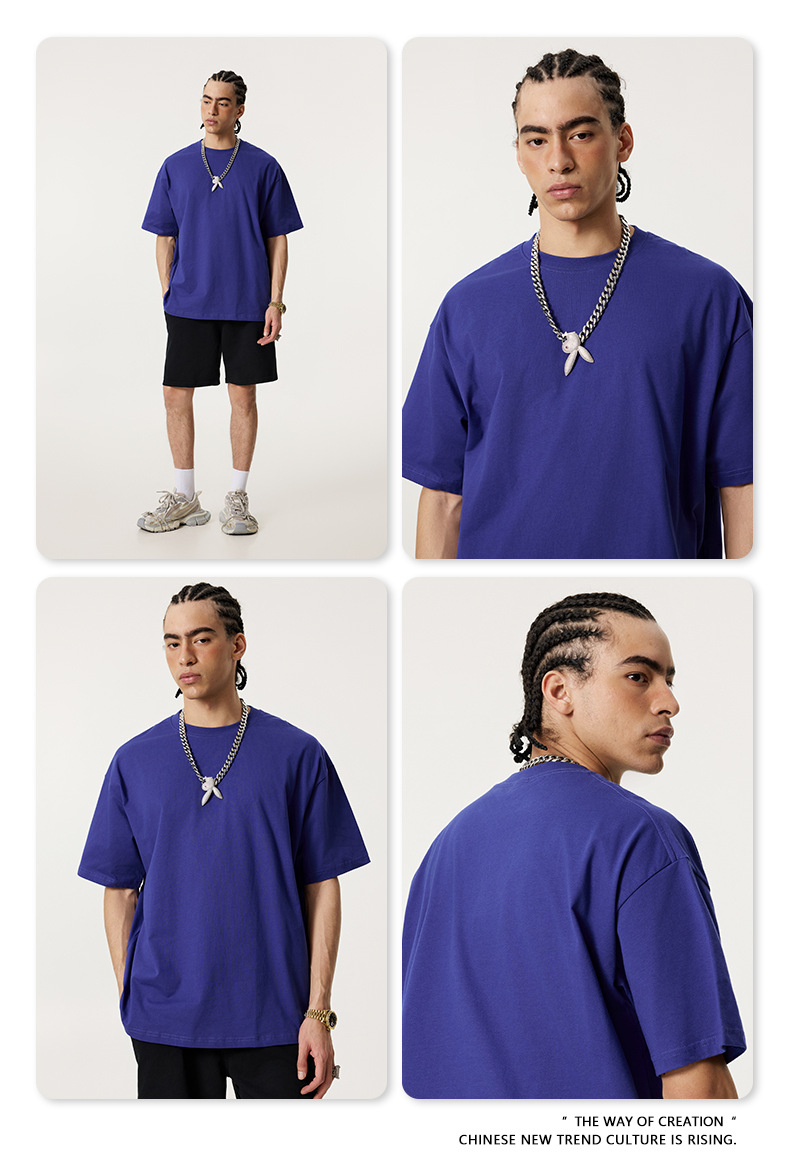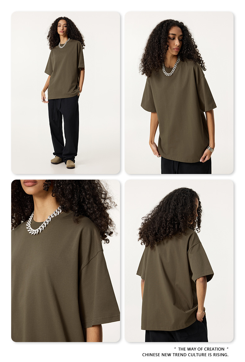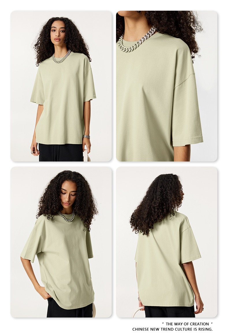 2025 봄 여름 심플 트렌디 브랜드 더블 원사 순면 반팔 남성 티셔츠 대형 루즈 도파민 티셔츠 스포츠 탑스토어 가기