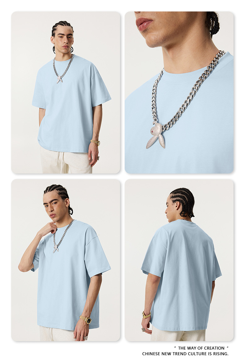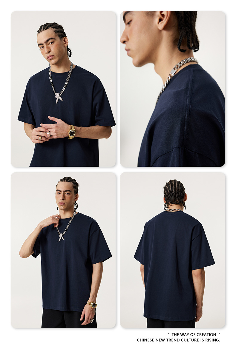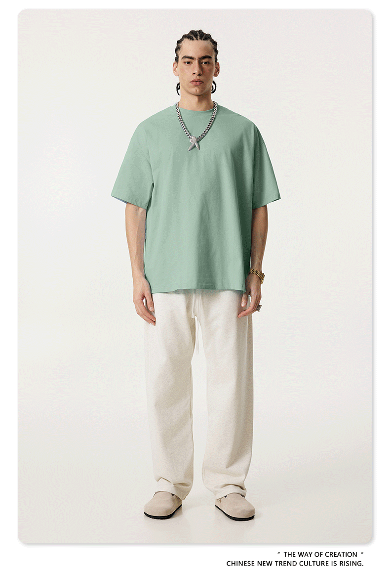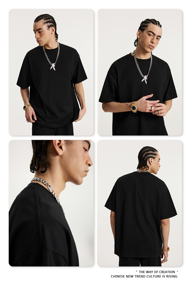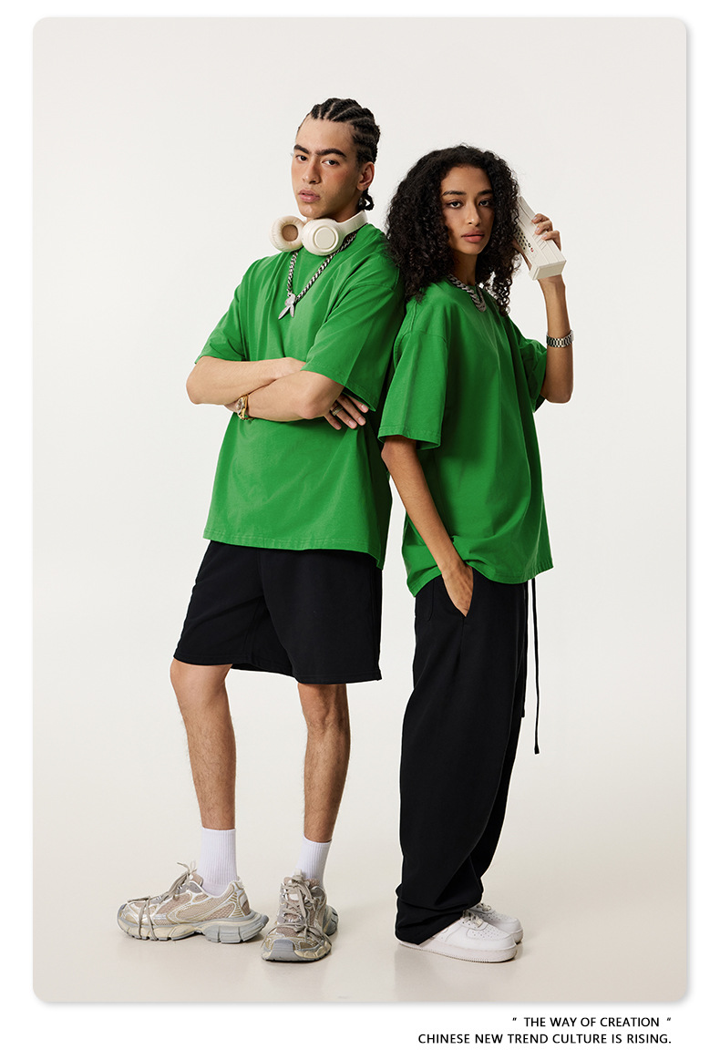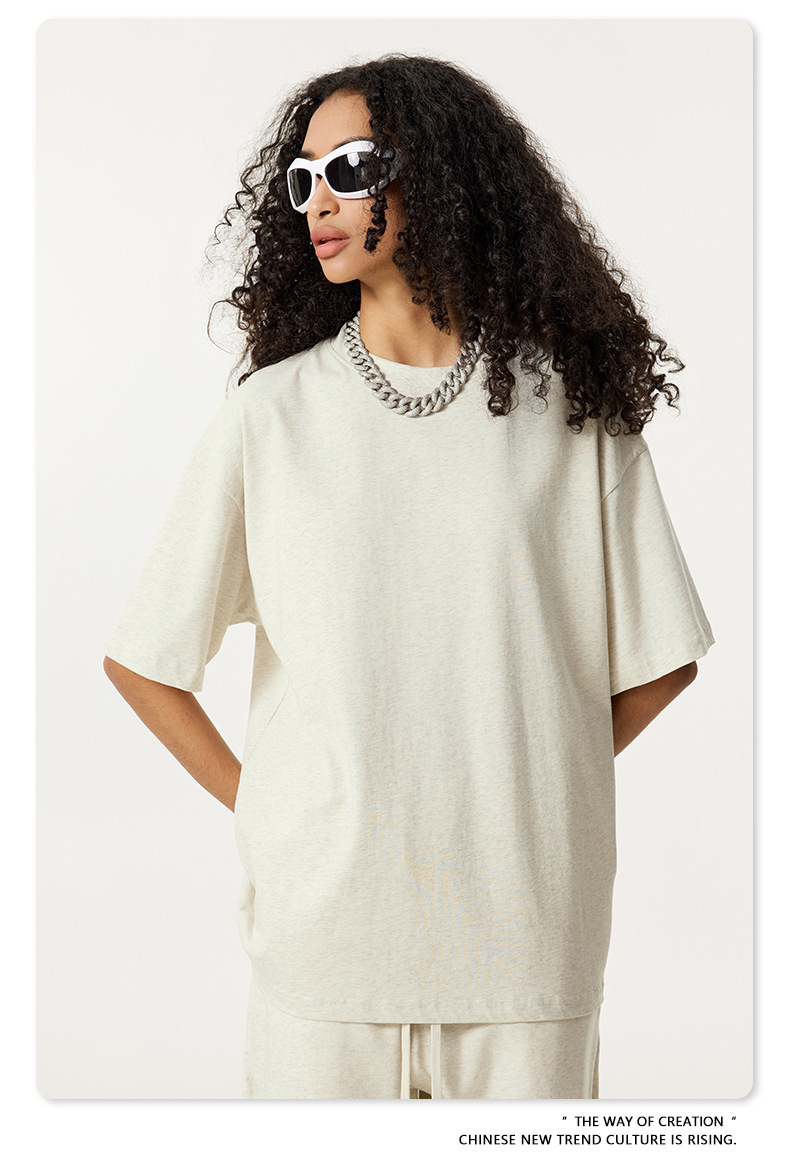 2025 봄 여름 심플 트렌디 브랜드 더블 원사 순면 반팔 남성 티셔츠 대형 루즈 도파민 티셔츠 스포츠 탑스토어 가기