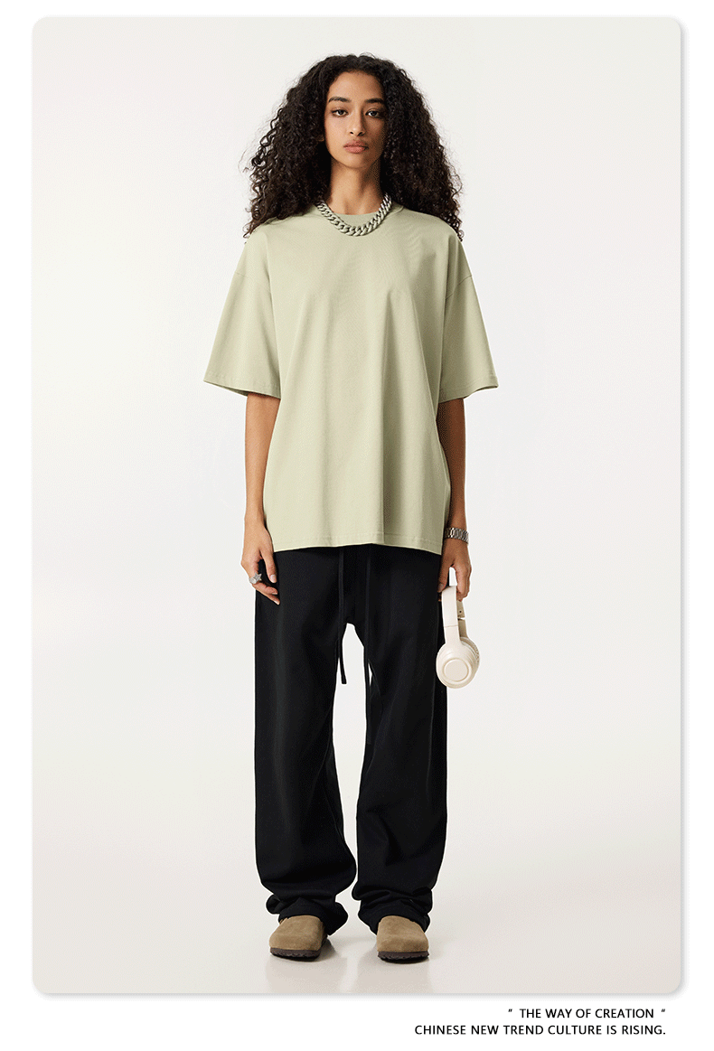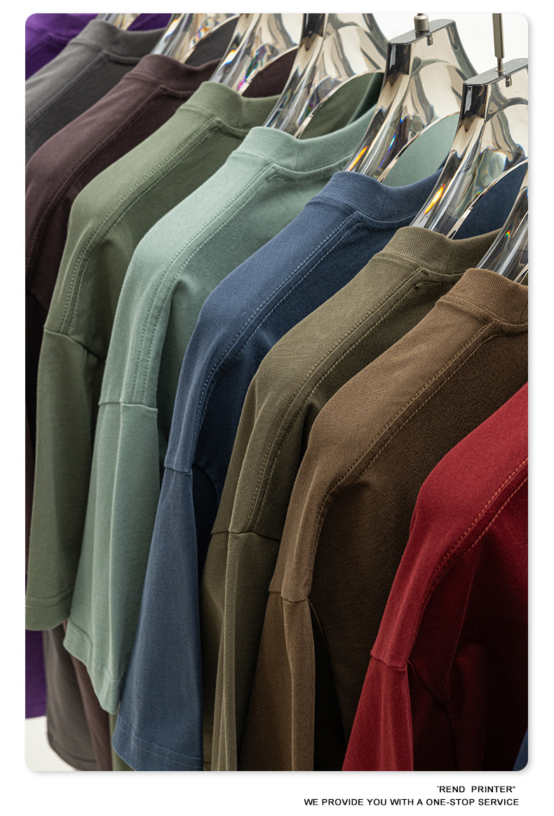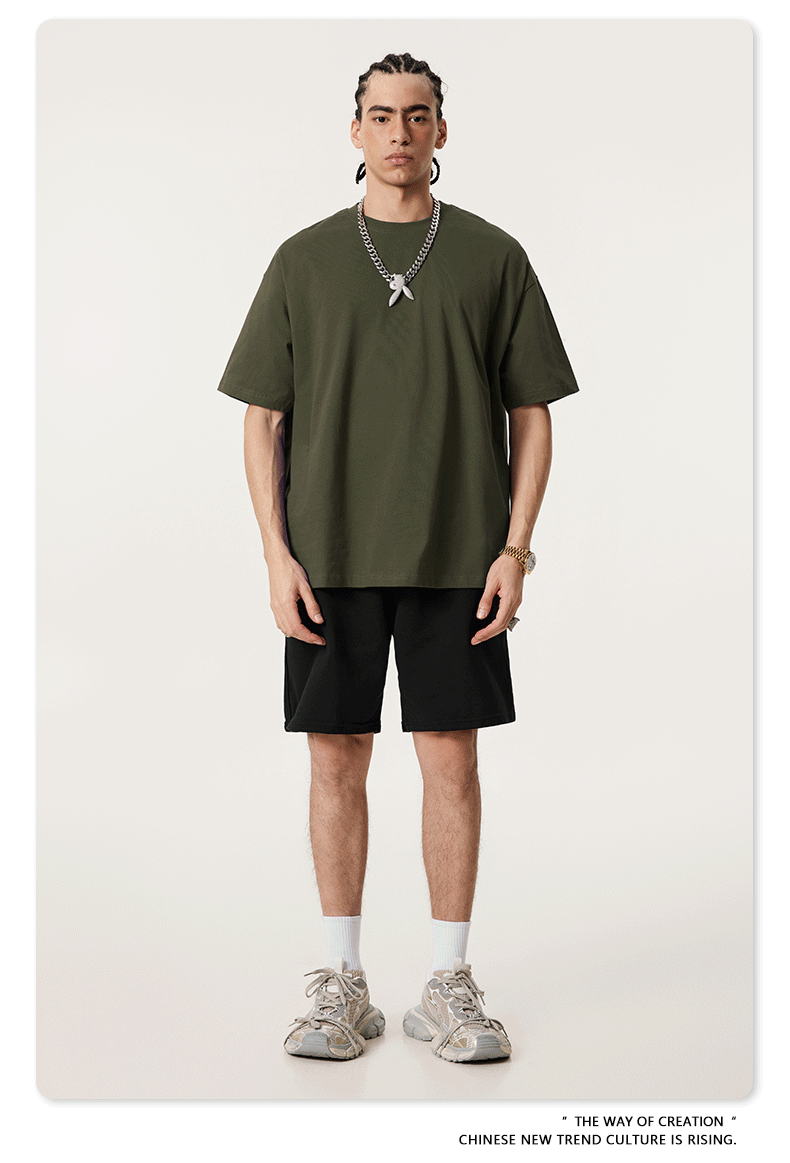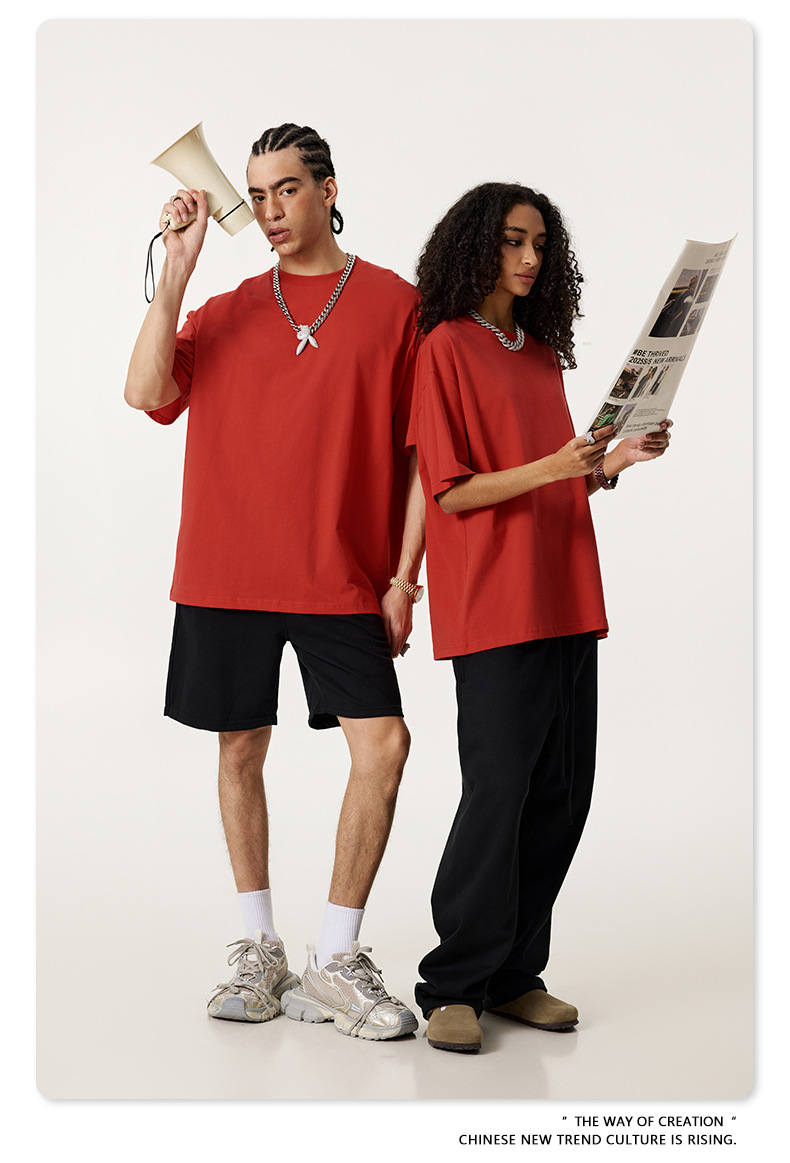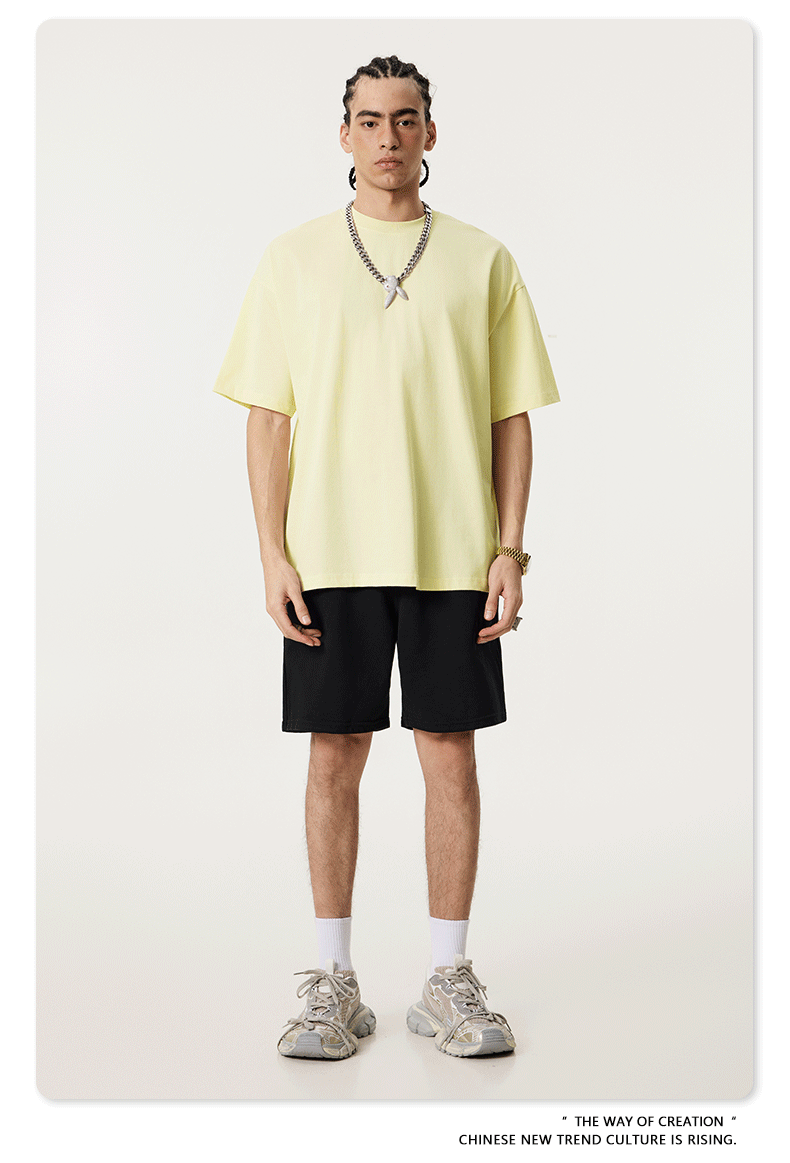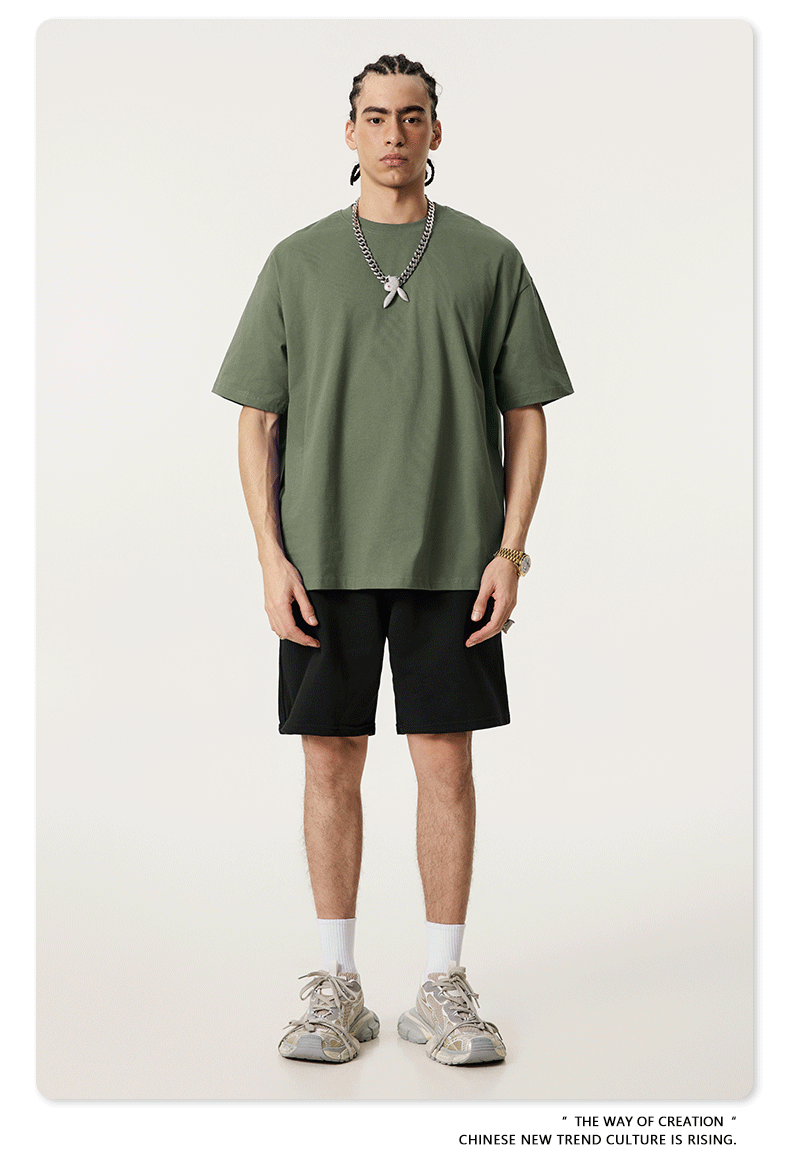2025 봄 여름 심플 트렌디 브랜드 더블 원사 순면 반팔 남성 티셔츠 대형 루즈 도파민 티셔츠 스포츠 탑스토어 가기