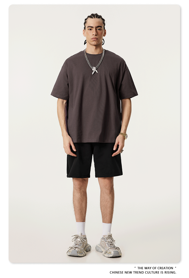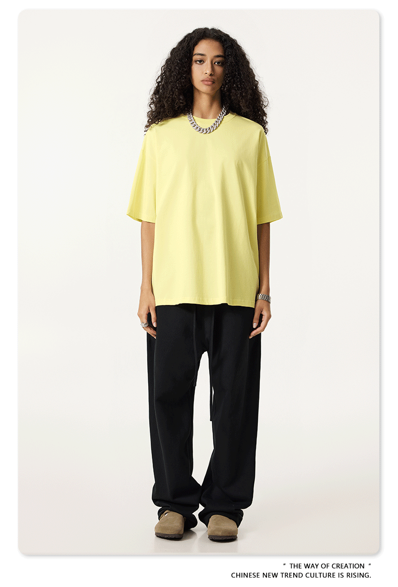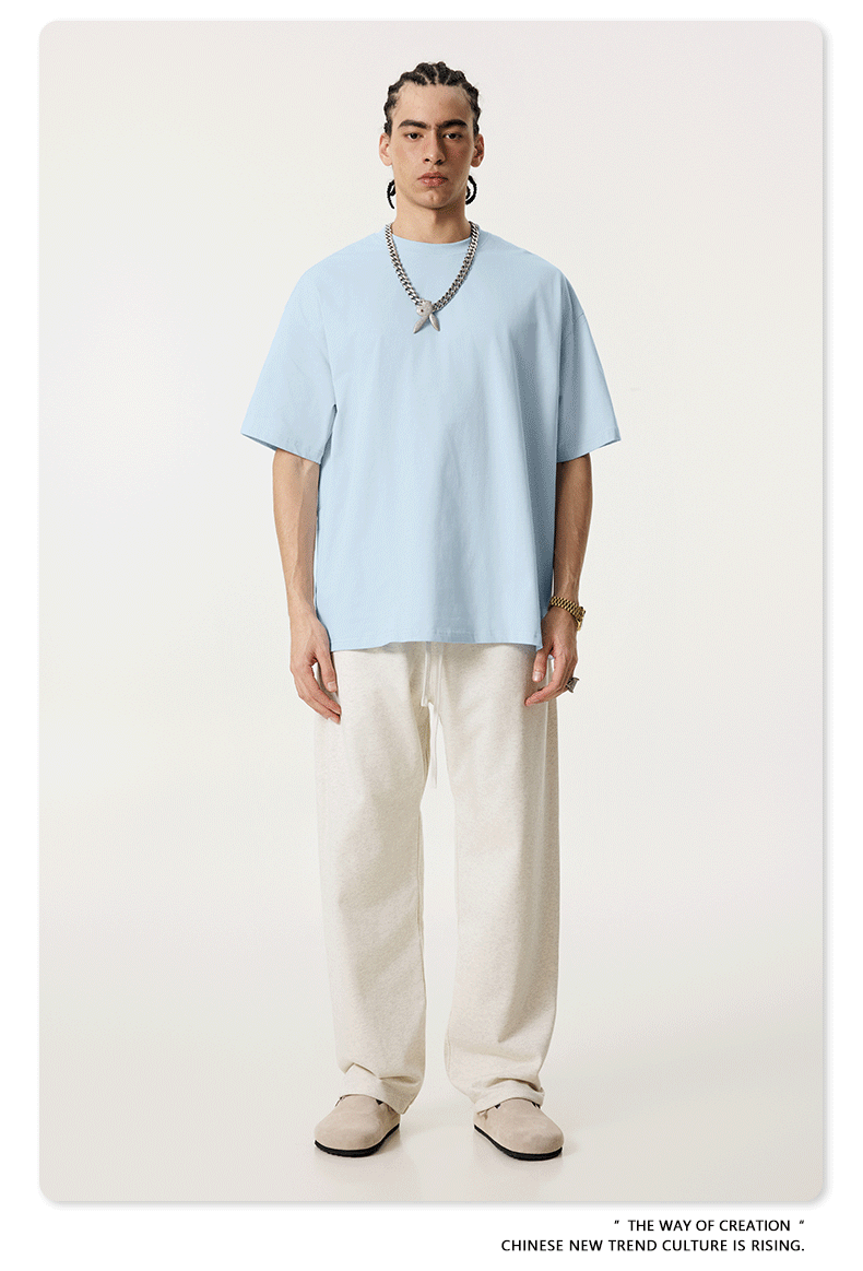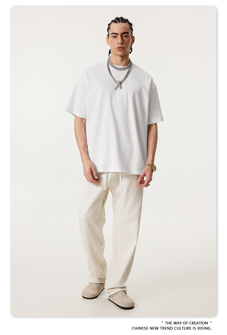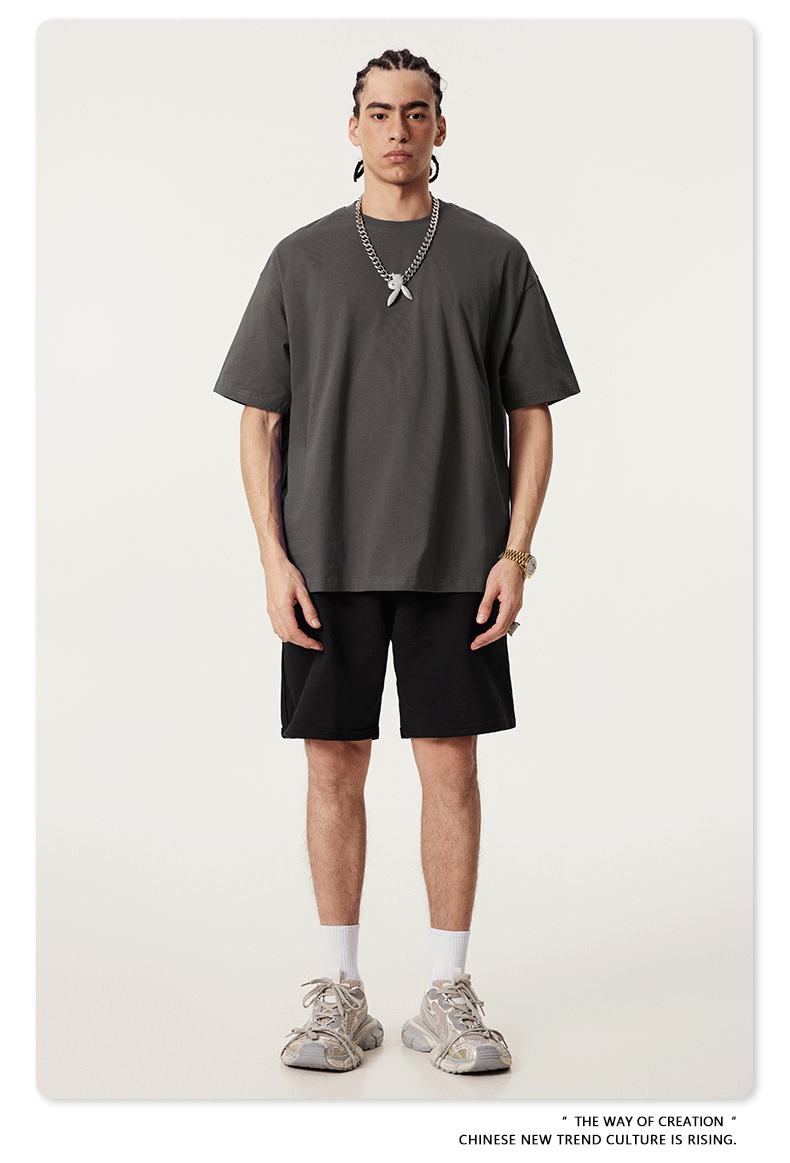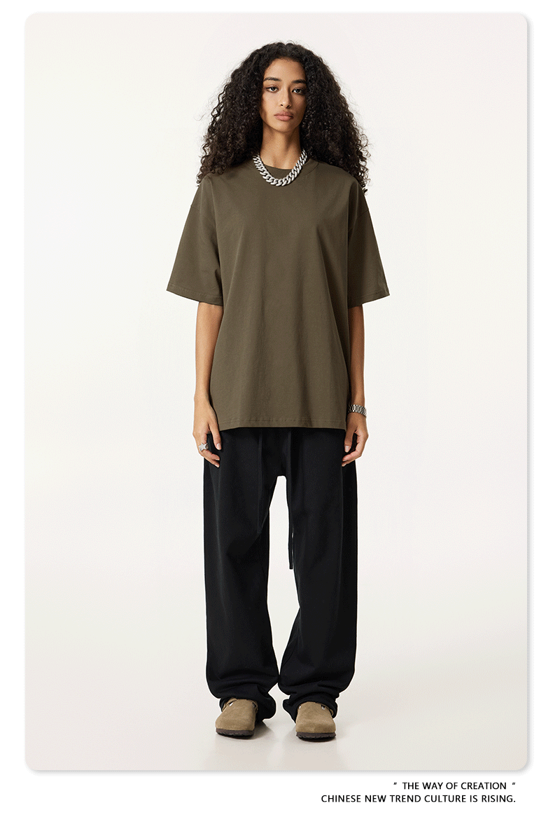 2025 봄 여름 심플 트렌디 브랜드 더블 원사 순면 반팔 남성 티셔츠 대형 루즈 도파민 티셔츠 스포츠 탑스토어 가기
