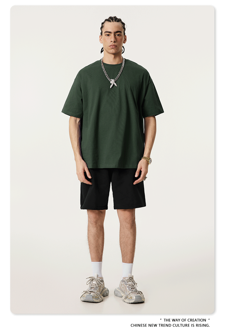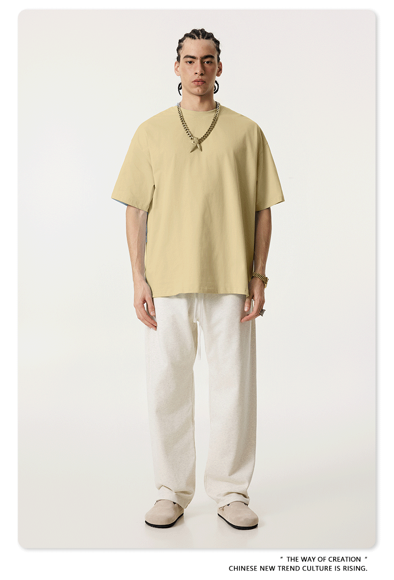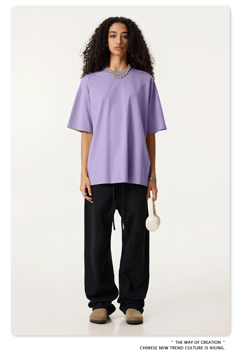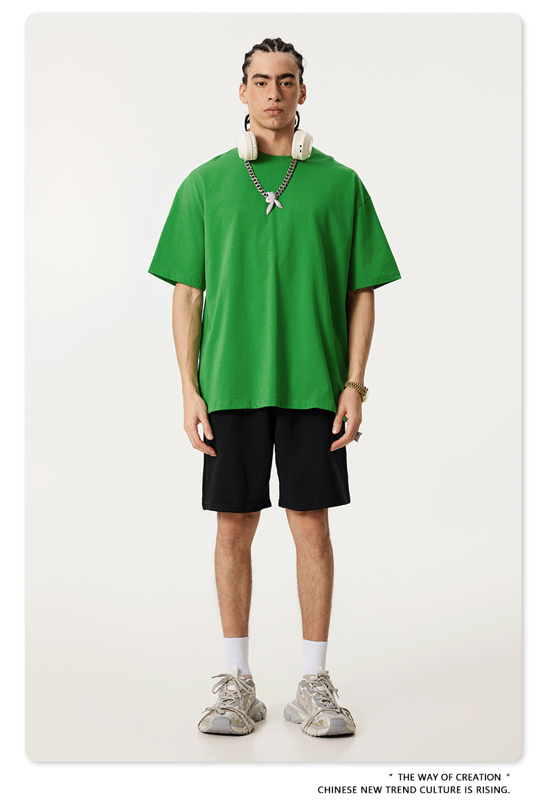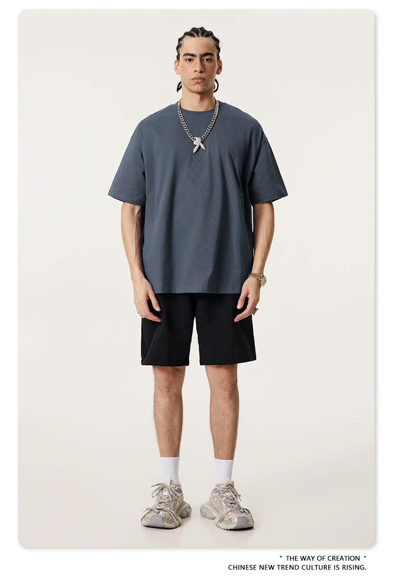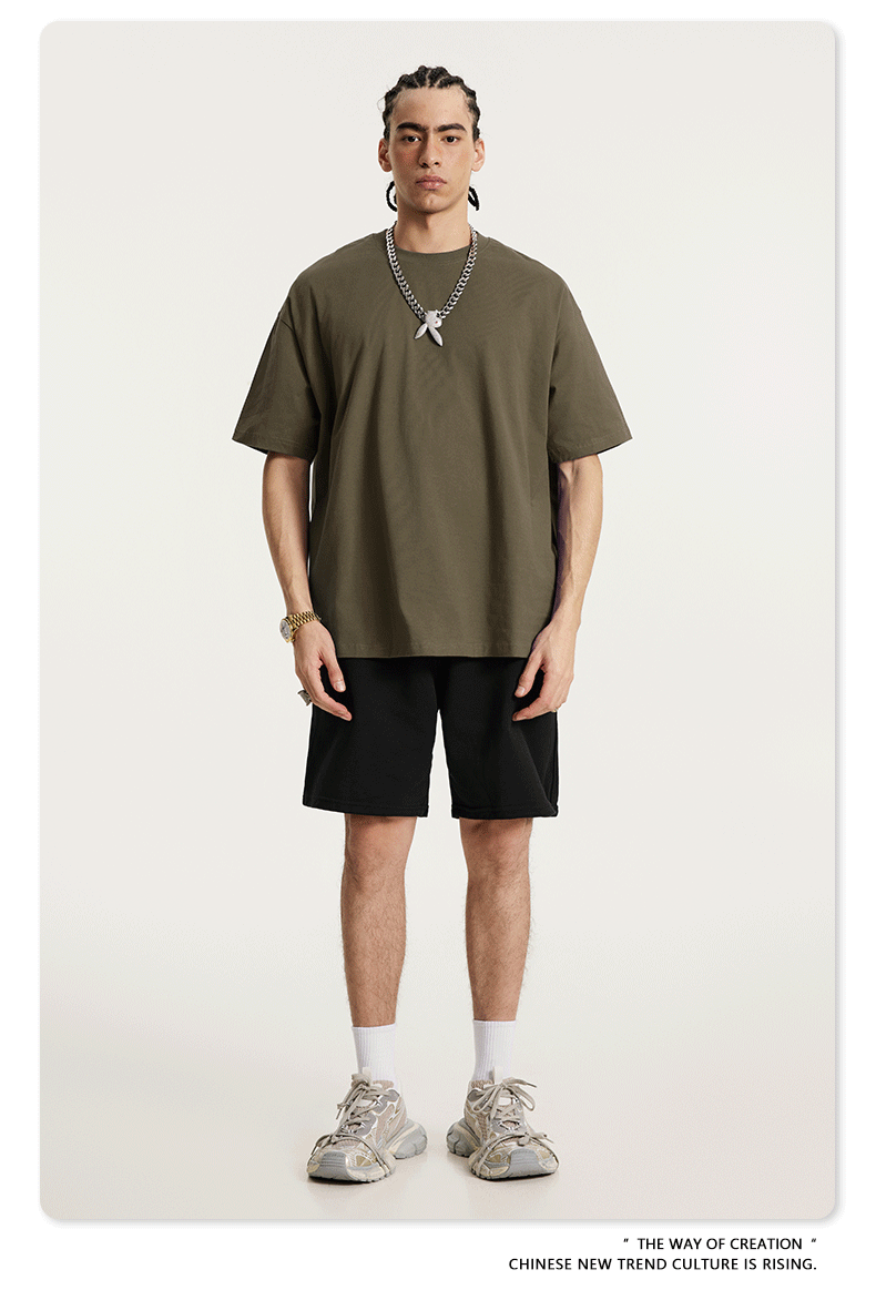2025 봄 여름 심플 트렌디 브랜드 더블 원사 순면 반팔 남성 티셔츠 대형 루즈 도파민 티셔츠 스포츠 탑스토어 가기