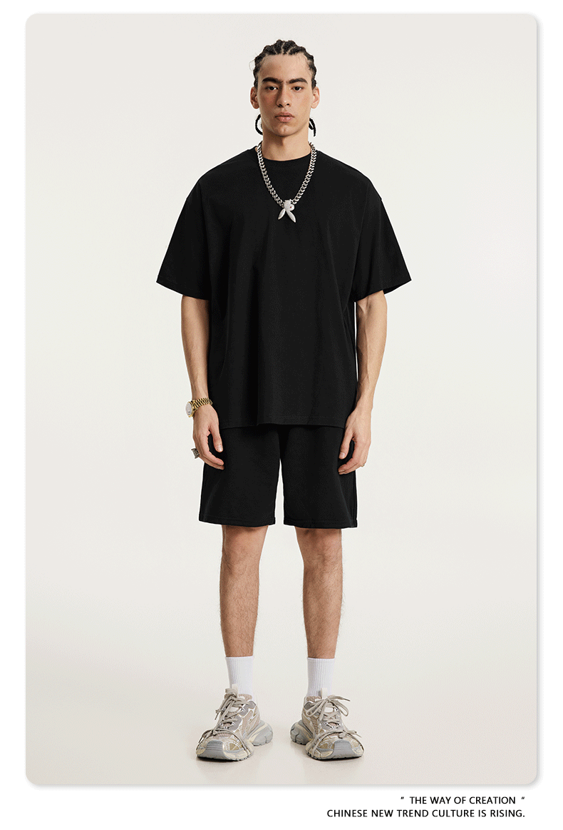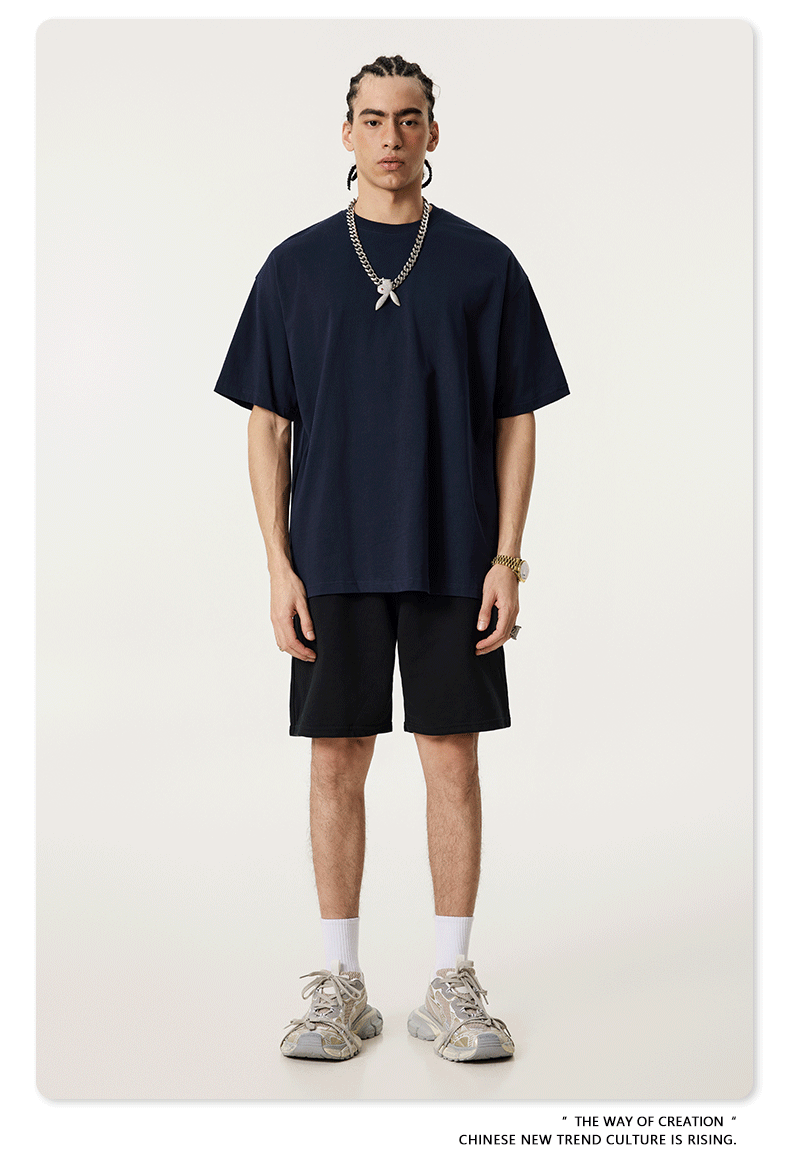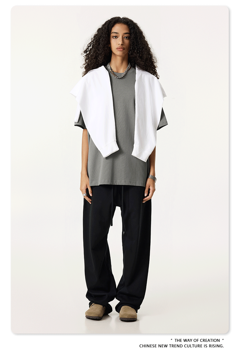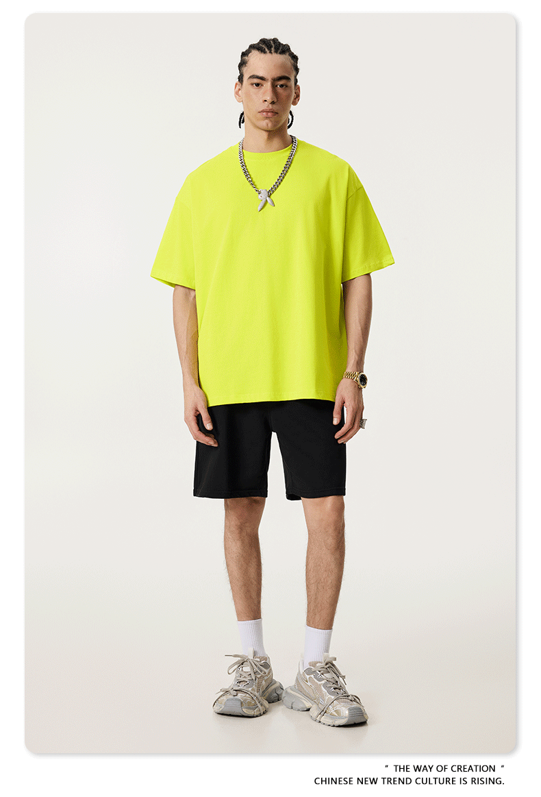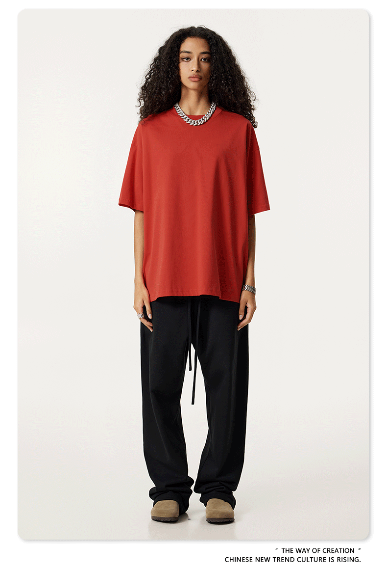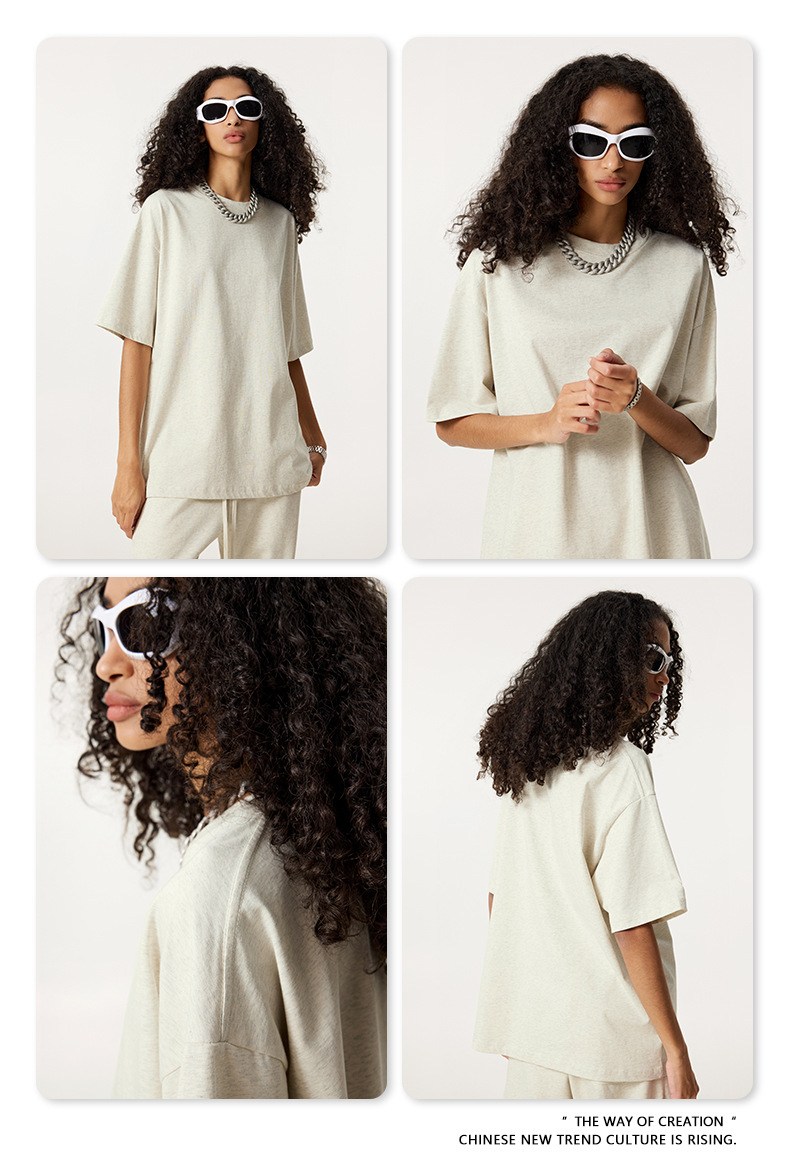 2025 봄 여름 심플 트렌디 브랜드 더블 원사 순면 반팔 남성 티셔츠 대형 루즈 도파민 티셔츠 스포츠 탑스토어 가기