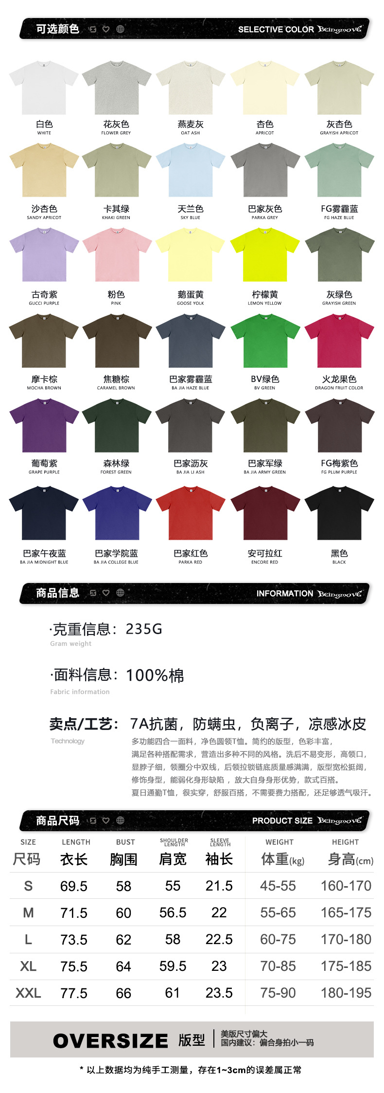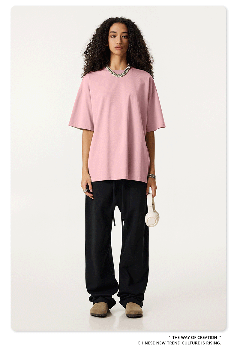 2025 봄 여름 심플 트렌디 브랜드 더블 원사 순면 반팔 남성 티셔츠 대형 루즈 도파민 티셔츠 스포츠 탑