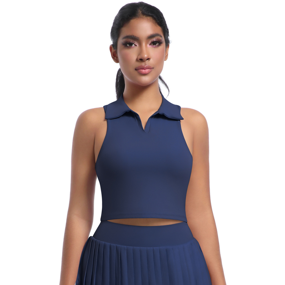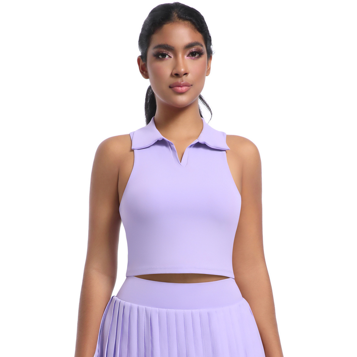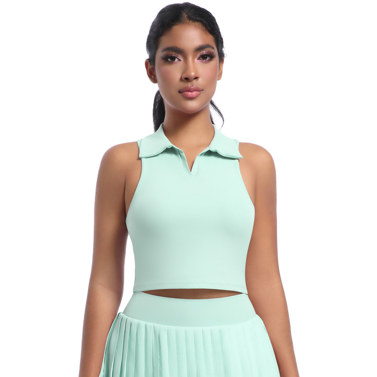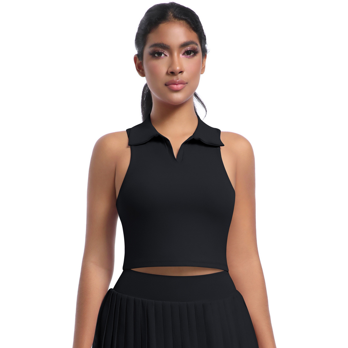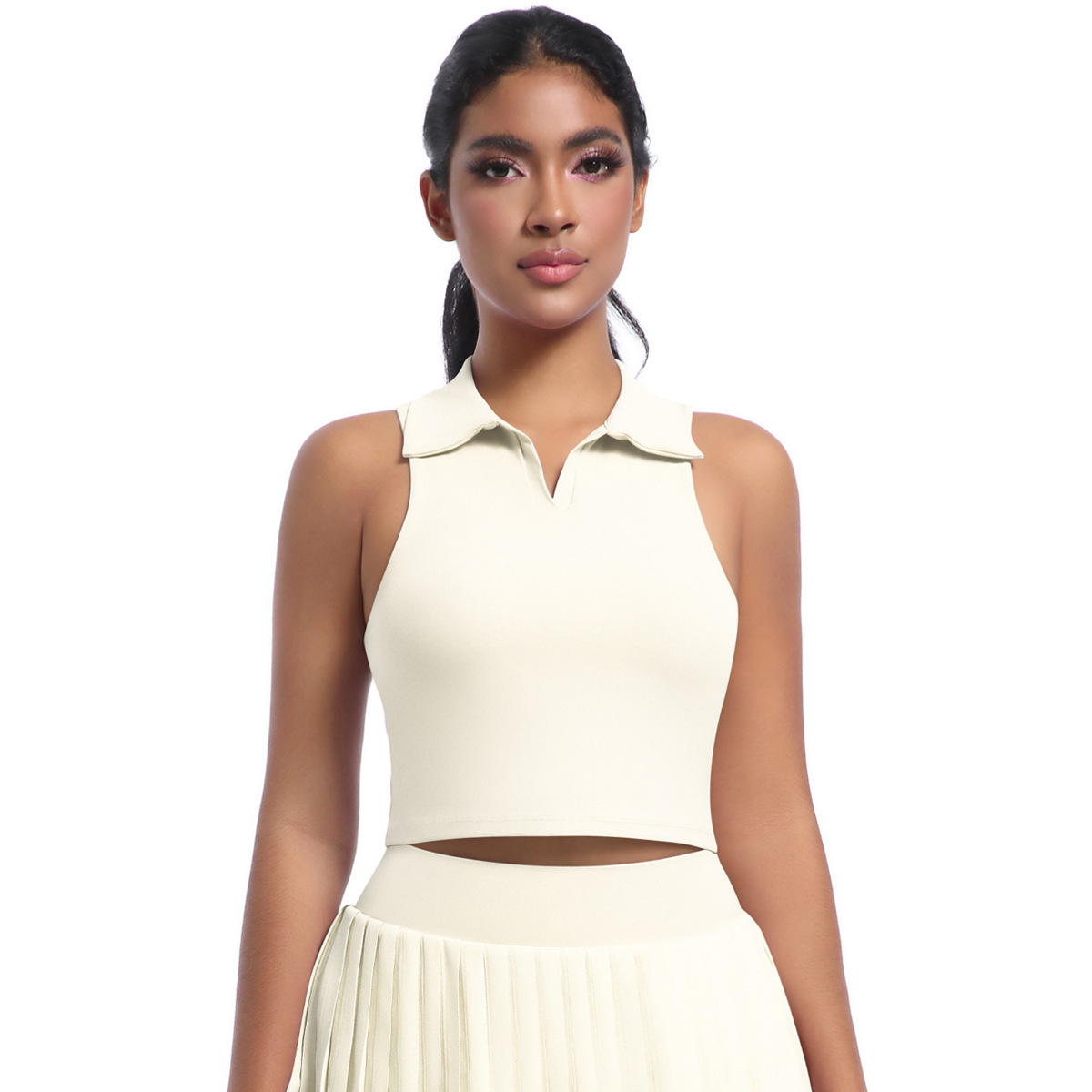 벌거 벗은 꽉 스포츠 조끼 분리 가능한 가슴 패드 러닝 테니스 피트니스 세트 탑 폴로 엘 스웨트 셔츠 여성