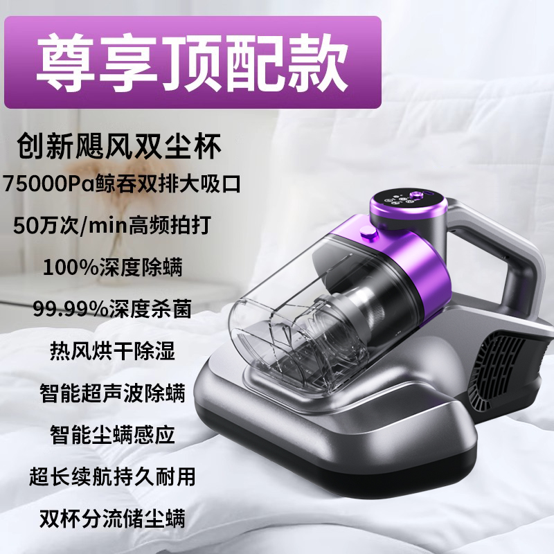 • [상위모델 | 노블퍼플] 진드기제거 및 살균 99.99%☀️허리케인 더블 더스트 컵☀710000큰 흡입력☀의료용 UV-C 자외선