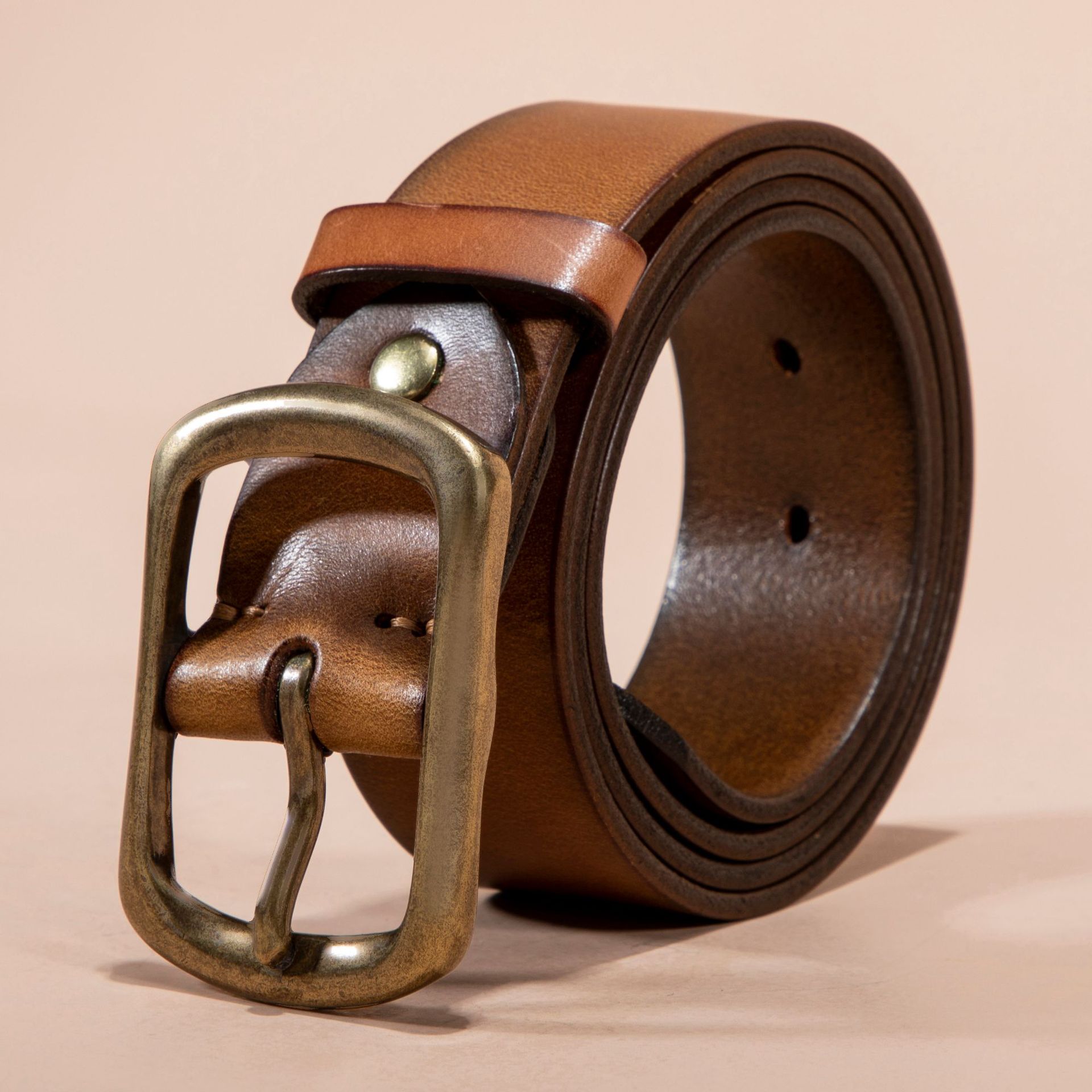 재고 남성 벨트 가죽 탑 레이어 순수 Cowhide 빈티지 구리 버클 캐주얼 올 매치 청바지 벨트 공장 아울렛